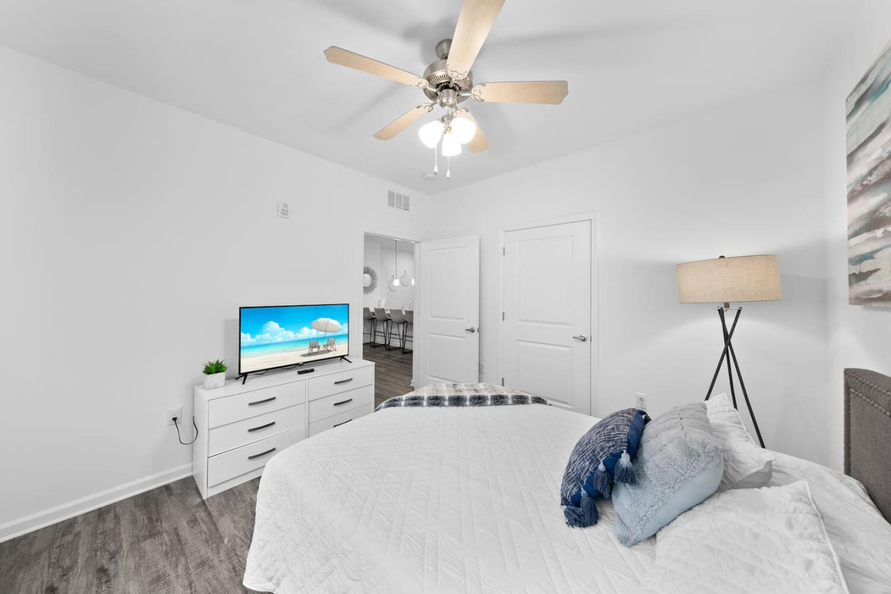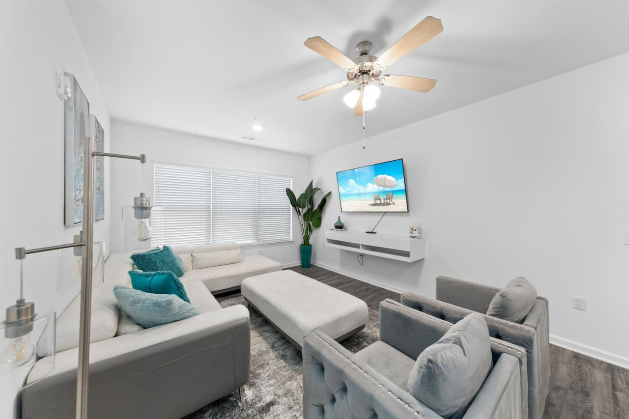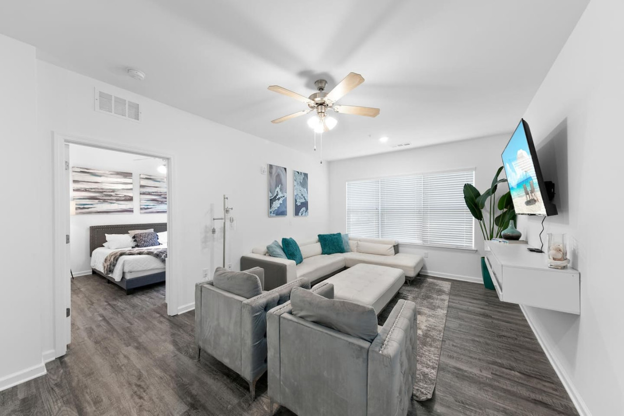 / nightGet ready for an exceptional escape at this delightful, expertly crafted 2-bedroom oasis! Whether you're yearning for a vacation or a staycation, this destination is perfect for you. Revel in the sun at the spacious pool or get moving in the full gym! Relax knowing that this unit is meticulously furnished with all the conveniences of home, promising a truly effortless stay. KEY FEATURES: ➝ New condo w/spacious open floor plan ➝ 2 comfortable bedrooms; 2 Queen Beds ➝ 2 bathrooms; 1 walk-in shower and 1 shower/tub combo ➝ Full Kitchen w/stainless steel appliances ➝ High-speed wifi + tv in every bedroom ➝ Washer and dryer ➝ Free parking ☆☆BEDROOMS☆☆ Each bedroom is tastefully decorated with timeless furnishings, complete set of linens and pillows, walk-in closet, and 42" Smart TV. ➝Bedroom 1: 1 Queen Bed (Private Bathroom) ➝Bedroom 2: 1 Queen Bed (Private Bathroom) ☆☆BATHROOMS☆☆ The 2 bathrooms are perfect for freshening up after a day in the Florida sun. Each bathroom is equipped with shampoo, conditioner, and body wash so you don't have to worry about bringing your own. ☆☆KITCHEN & LIVING ROOM☆☆ The new construction kitchen is complete with newly stainless steel appliances and bar seating for 4, perfect for socializing with friends and family while making delicious meals. This friendly condo features a calming living are with modern, clean decor and natural light. You'll love the open floor plan, making it easy to entertain your group while making delicious appetizers. The 65" HDTV in the living room makes the perfect spot to gather with your group and enjoy some quality time together. You can also enjoy high-speed WiFi, making it easy to plan your next adventure or get some work done during your stay. ☆☆OUTSIDE SPACE☆☆ The complex offers a family-friendly pool, gym, and spacious building with dedicated workspaces, and lounge. HOME DISTANCE IN MILES FROM: This stunning home is ideally located close to parks, the Naval Air Station, shopping, groceries, and the beach, making it a great location for tourists and business travelers alike. ➝ Jacksonville Naval Air Station (NAS JAX): 3.3 miles ➝ Jacksonville Zoo and Gardens: 19.4 miles ➝ Museum of Science & History (MOSH): 13.3 miles ➝ Friendship Fountain and St. Johns River Park: 13.3 miles ➝ Jacksonville Arboretum & Gardens: 25.2 miles ➝ Jacksonville Beach: 27.6 miles ➝ The Jacksonville Landing (shopping and dining complex) ➝ Jacksonville Int'l Airport (JAX): 28.4 miles ➝ Mayo Clinic: 24 miles ➝ Ikea: 17.5 miles ➝ Top Golf & iFly: 20.5 miles ➝ EverBank Stadium: 14.6 miles ➝ 121 Financial Ballpark: 14.6 miles ➝ Jacksonville Beach Boardwalk & Pier: 14 miles Guests will have access to the entire 2-bedroom apartment unit on the first floor during their stay and all amenities listed above for use. Send a message if you need anything during your stay! With quick response time, we are here to make your stay seamless and enjoyable! Upon your arrival, we offer essential items like hand soap, dish soap, toilet paper, paper towels, and trash bags to start you off. For longer stays, kindly prepare to replenish these supplies according to your personal requirements. We ask that you take care of the home as if it were your own. We hope to provide a great space for all guests to unwind and relax during their time here!