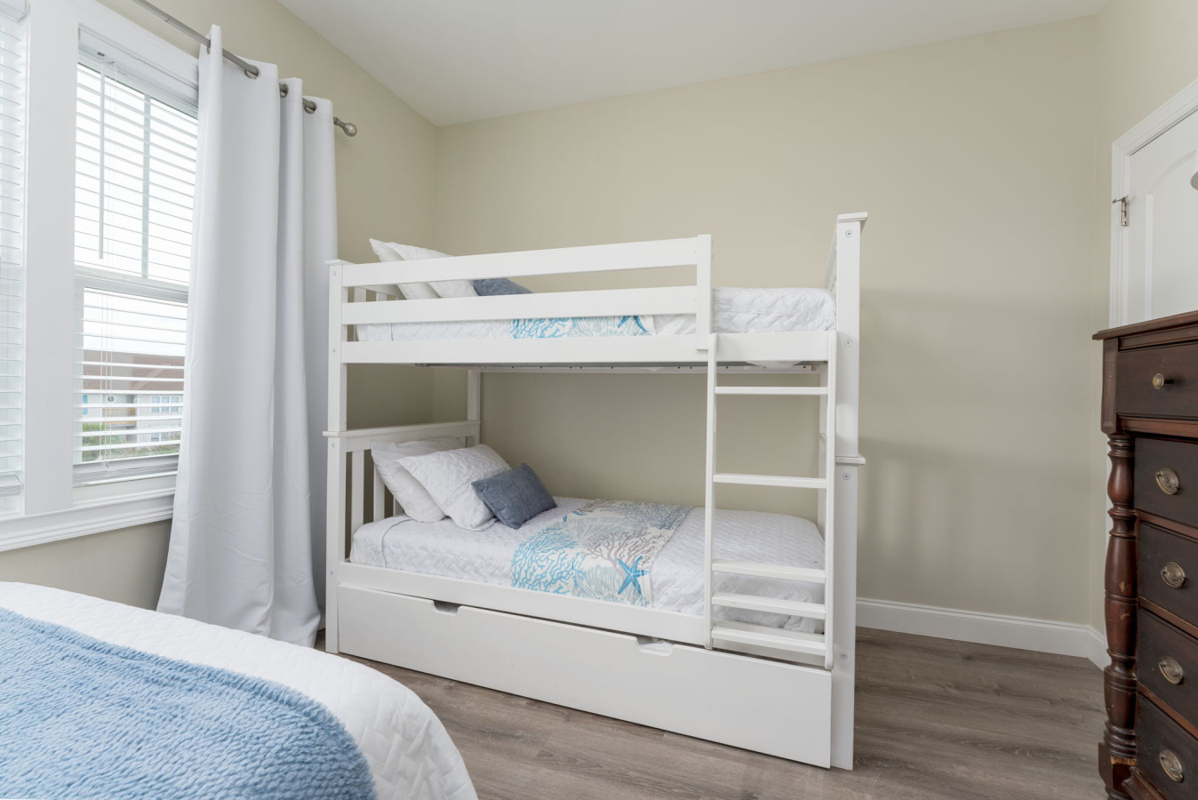 / nightJust one block from the beach, this updated and spacious 3-bedroom, 3-bathroom townhome sleeps 9 and offers the perfect coastal getaway. Enjoy ocean views from two balconies and unwind in comfort with a king bed, queen bed, full bed, and 3 single beds. Perfect for families or groups, this home is ideal for beach lovers seeking relaxation and adventure, with plenty of room to relax and create lasting memories. KEY FEATURES: ➝ Modern townhouse w/spacious open floor plan ➝ 3 comfortable bedrooms ➝ Full Kitchen w/stainless steel appliances ➝ High-speed wifi ➝ Washer and dryer ➝ Free parking ☆☆BEDROOMS☆☆ ➝ Bedroom 1: 1 King Beds ➝ Bedroom 2: 1 Queen Bed ➝ Bedroom 3 : 1 Full Bed, 1 Single Bunk Bed, 1 Single Trundle Bed ☆☆BATHROOMS☆☆ ➝ Bathroom 1: Off the Kitchen, Tub/Shower Combo ➝ Bathroom 2: Primary In-Suite, Tub/Shower Combo ➝ Bathroom 3: Bedroom 3 In-Suite, Tub/Shower Combo ☆☆KITCHEN & LIVING ROOM☆☆ The kitchen is perfect for vacation dining, with stainless steel appliances, a Keurig, drip coffee maker, and complimentary coffee and tea to start your day right. Whether you're whipping up a beach picnic, baking fresh cookies, or enjoying a home-cooked meal with family, you'll find everything you need—baking supplies, cookware, and more. After a day at the beach, come home and create delicious meals in this fully-equipped kitchen! Take your snacks into the living room after a day in the sun to unwind on the comfy sectional sofa. Catch your favorite shows on the 60" TV with Netflix, Hulu, and Disney+ or step out onto the balcony to watch and hear the ocean waves. ☆☆OUTSIDE SPACE☆☆ Enjoy the outdoors with plenty of space to relax and unwind! The ground-level carport features a BBQ grill and an outdoor picnic table, perfect for al fresco dining. On the second and third levels, two balconies offer ocean views—one off the living room and one off the primary bedroom. Just across the street, a public beach access lets you easily walk onto the sand for fun in the sun! HOME DISTANCE IN MILES FROM: Make sure to balance the chill time with a bit of thrill! Here are some activities, attractions & things to do in the area. ➝ ILM Airport: 20 miles ➝ Carolina Beach Boardwalk: 2 miles ➝ Carolina Beach State Park: 3 miles ➝ The North End- Freeman Park: .2 miles ➝ Fort Fisher State Historic Park: 6 miles ➝ Malama Cafe: 2 miles ➝ Island Bagels: 2 miles ➝ Downtown Wilmington: 17 miles Guests will have access to the entire left side townhome unit during their stay and all amenities listed for use. Entry is via keypad using the unique door code provided in your check-in message sent 2 days prior to check-in. Send a message if you need anything during your stay! With quick response time, we are here to make your stay seamless and enjoyable! This home is located near to The North End- Freeman Park, Carolina Beach's well-known "drive-on" beach. This location makes all sense of beach vacation come to life by providing the sounds of crashing waves from the balcony, and colorful houses nearby. Just a short drive down the road are restaurants, shopping, and the popular Boardwalk and Amusement Park. The beach sand is just a short walk across the street, but we recommend a vehicle for the best transportation to adventure to nearby shopping and restaurants. Upon your arrival, we offer essential items like hand soap, dish soap, toilet paper, paper towels, and trash bags to start you off. For longer stays, kindly prepare to replenish these supplies according to your personal requirements. We ask that you take care of the home as if it were your own. We hope to provide a great space for all guests to unwind and relax during their time here!