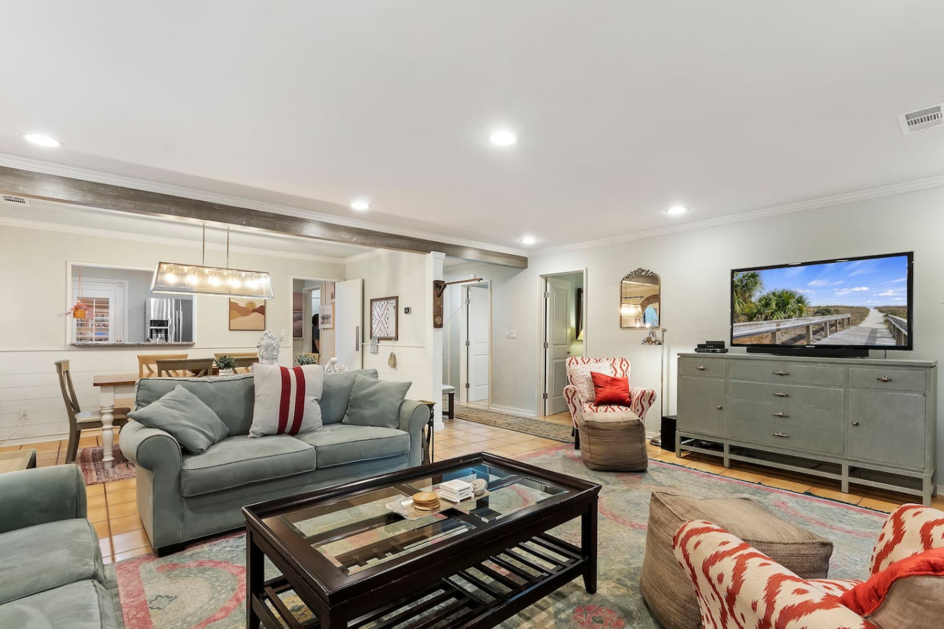 September 2025 5.00Travis and Emily’s place was great! The location was perfect - minutes away from beach, food and shopping. The beach was made easy with the wagon and cooler, chairs and umbrella. Everyone had plenty of room. TVs in every room. Made many meals in the kitchen. Travis and Emily answer immediately with every little question! Everyone was happy!