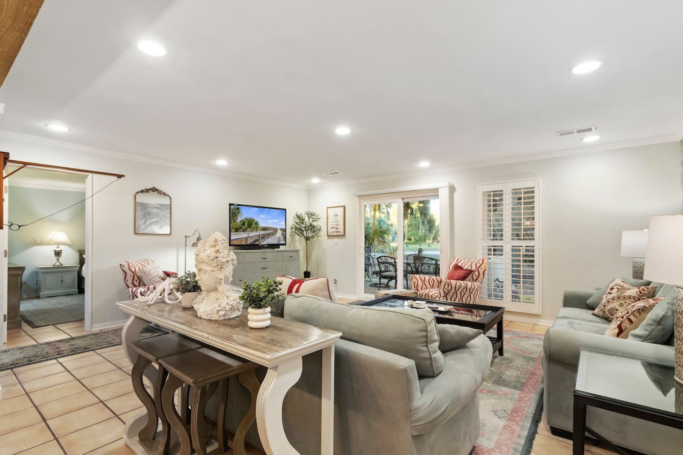/ nightThe Sunnyside of Life Retreat is the ideal location to feel inspired & relaxed while creating timeless memories. Our 3 BR/3 BA villa is located in the heart of HHI in the premier oceanfront resort community of Palmetto Dunes. We back up to 1 of 3 signature golf courses, a top 50 tennis center in the world, 24 pickleball courts, 30 steps to the pool (open April 1- Nov. 1) and a 10 minute walk to 3 miles of pristine beach! Relax on our back deck, shaded by beautiful oak trees with hanging moss. We’ve got 2 King Beds and 4 Bunks, as well as a Pack N Play. We’ve got Wall Connect Four and Scrabble and lots of family games, plus Roku and Cable. Fully appointed kitchen for cooking, bbq and gas grill! Walk right onto the golf course or pool deck! 1 mile walk/bike/free shuttle to the BEACH!! Full access to the Villa, except one locked owner’s closet. Please message us through the app and we’ll get right back to you! The streets of Palmetto Dunes Resort are ideal for biking, and the resort and surrounding area offer more than 50 miles of paved bike paths that lead all over the island. Shelter Cove is located across the street via a dedicated path. The centerpiece of Hilton Head Island, Shelter Cove is a mixed-use community with residential units, shops, a marina, plaza, parks, and a spectacular outdoor shopping and entertainment center. Located across from Palmetto Dunes on 285 acres of salt water coastline, the Shelter Cove Community includes Shelter Cove Harbour, Shelter Cove Plaza, and the new Shelter Cove Towne Centre. There is a grocery store right there as well. Palmetto Dunes has a great General Store with lots of food/drink/candy choices as well as Soft Serve Ice Cream! Right across from the General Store is a Bike/Kayak rental place. Our locked bikes are not for guest use as our insurance will not cover guests on bikes. Sorry! Pickleball is huge in Palmetto Dunes! You can play throughout the day. Stop into the Tennis/Pickleball shop to find out times/rates. Two parking passes are included with your stay. We are only allowed two parking spots, so please don’t plan to bring more than two cars.