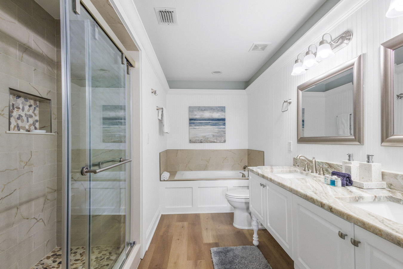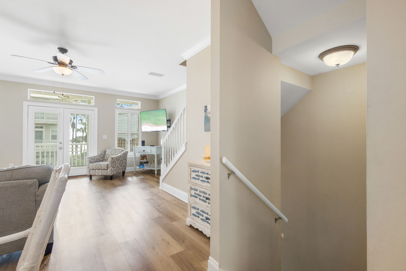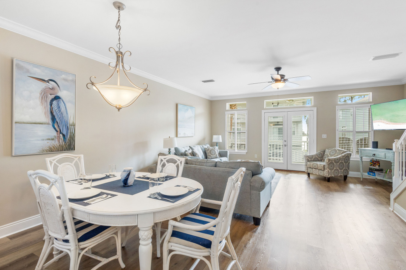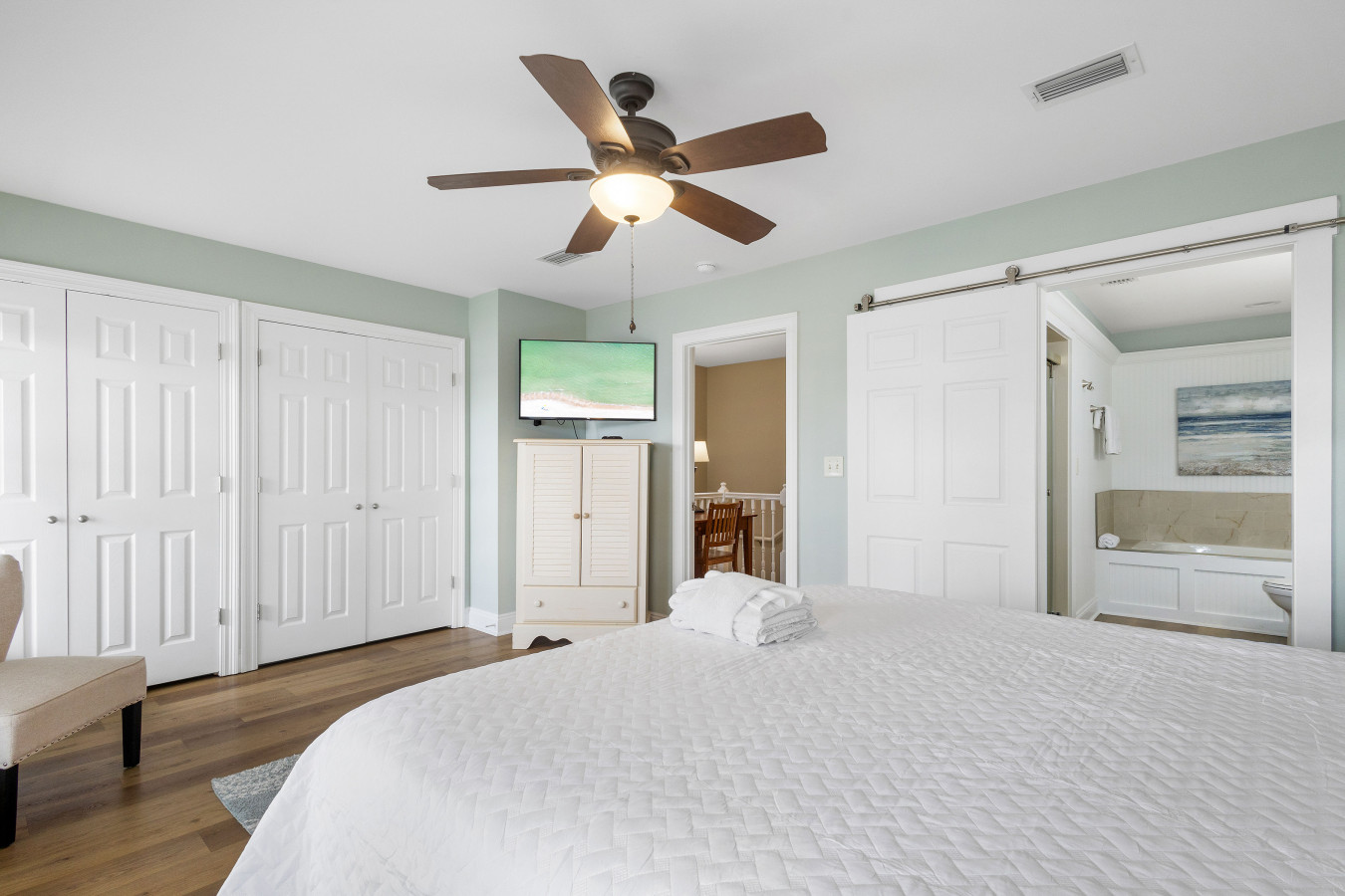 November 2025 5.00My husband and I spent at week at almost heaven! And it was heavenly. We loved how close it was to the beach, great neighborhood and loved the golf cart, and close to restaurants and shopping. The home is in a private safe neighborhood with 4 full baths (3 attached to bedrooms). The downstairs where you enter has one bedroom with 2 queen/full beds and laundry, and bath with walk in shower, & laundry.. If you have someone that cant do stairs the room on main level is huge with TV and they could stay on that level. There is also a garage with barbecue, golf cart, and beach gear. The second floor has 2 couch beds, full bath, kitchen, dinning and large patio/deck. The third floor has two large master suites with king size beds and ensuite baths. And a large deck off south facing room. It is so relaxing, felt right at home. Andrea was friendly and helpful, she really went the extra mile to make our anniversary special. Just as described- highly recommend.