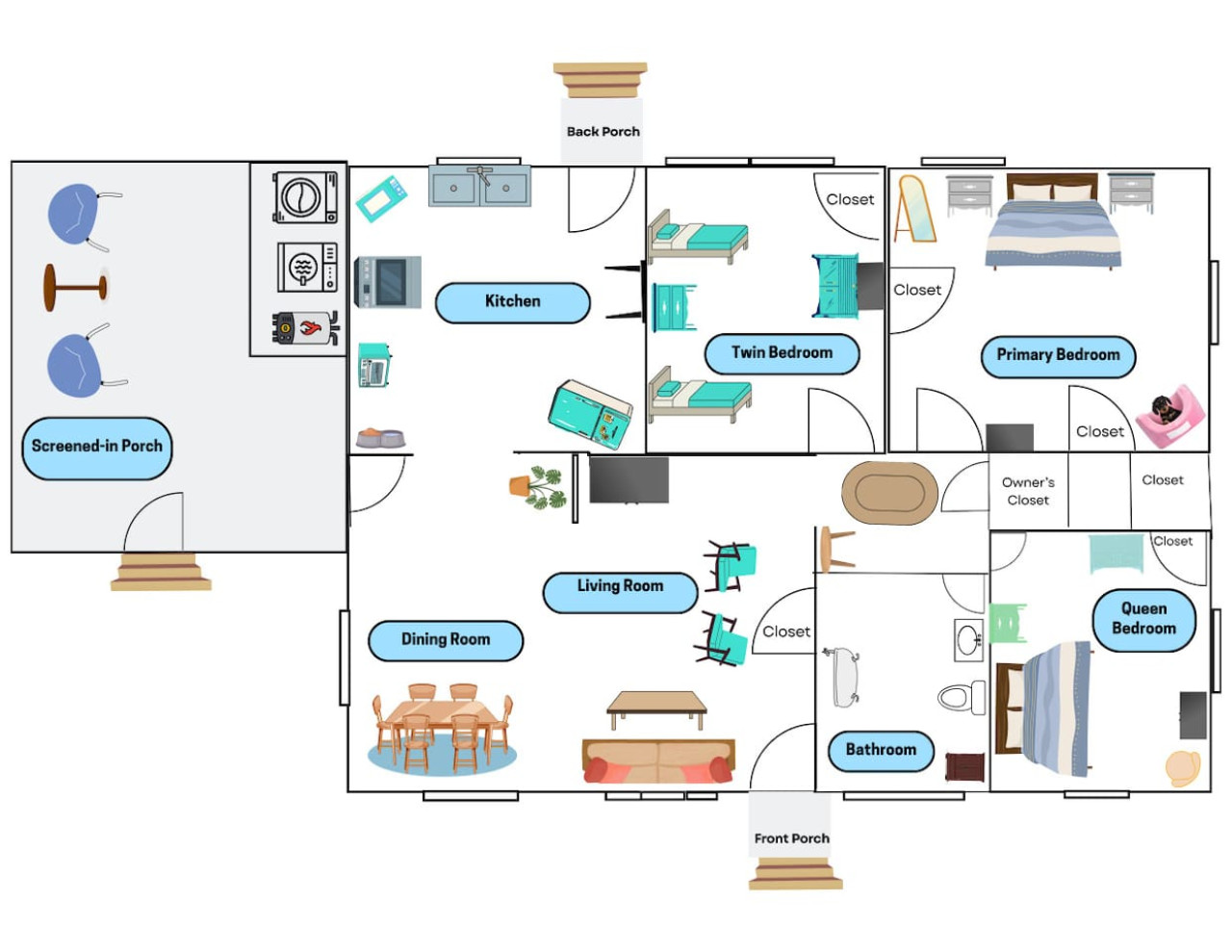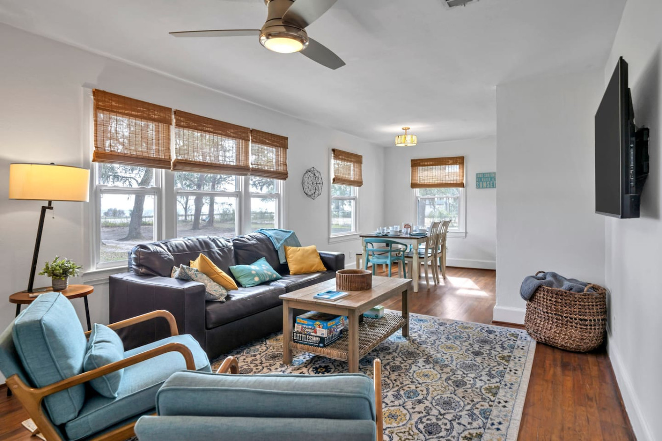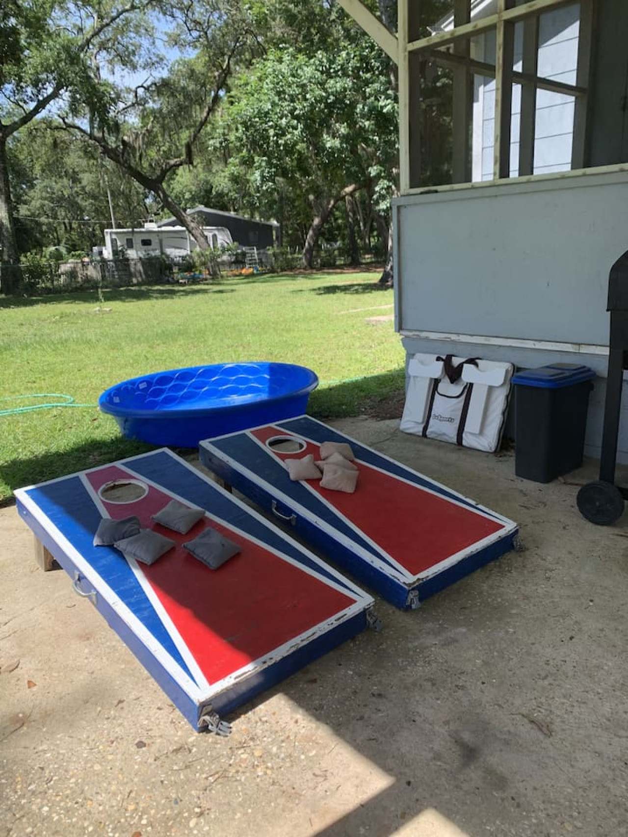 / nightWelcome to your cozy bayview retreat. This charming 3-bedroom, 1-bath cottage offers modern comforts, family-friendly amenities, and a pet-friendly stay. Relax by the fire pit, enjoy stunning sunsets and sunrises, and reach the beach in just 15 minutes. Bring your boat; there is plenty of room to park it, and there is a boat launch less than a mile to your east. ⭑CONTACT US FOR SEASONAL DISCOUNTS⭑ ⭑Master Bedroom⭑ ✔ King bed with premium cotton linens ✔ Room-darkening curtains for restful sleep ✔ Extra pillows, blankets, Two closets for ample clothing storage, hangers, and luggage rack ✔ Smart 55-inch HDTV with Roku for entertainment ✔ Ceiling fan ⭑Second Bedroom⭑ ✔ Queen bed with premium bedding and extra pillows ✔ Room-darkening curtains and full closet for storage ✔ Extra pillows, blankets, dresser and closet for ample clothing storage, hangers ✔ Smart HDTV with Roku for entertainment ✔ Ceiling fan ⭑Third Bedroom⭑ ✔ Two single beds with premium linens ✔ Room-darkening curtains for restful sleep ✔ Extra pillows, blankets, and ample clothing storage in dresser or closet with hangers ✔ Smart TV with Nintendo Switch for entertainment ✔ Books, toys, and sound machine for added comfort ✔ Ceiling fan ✔ Themed décor for a unique touch ⭑Living Room⭑ ✔ Bright, open-concept space with cozy seating ✔ Queen sofa bed (pull-out) ✔ 55-inch HDTV with Roku ✔ Board games and stylish décor ⭑Kitchen and Dining Area⭑ ✔ Fully equipped kitchen with electric stove/oven, microwave, and dishwasher ✔ Keurig coffee maker, blender, toaster oven, and hot water kettle, waffle maker ✔ Cooking haven: pots, pans, colander, mixing bowls, baking pans, oil, spices, salt, and pepper ✔ Dining table with seating for 6 ⭑Bathroom⭑ ✔ Bathtub and shower combination ✔ Complimentary toiletries: shampoo, conditioner, body soap, and shower gel ✔ Hair dryer and fresh towels provided ⭑Outdoor Space⭑ ✔ Fire pit area with Edison lights ✔ BBQ grill with utensils and outdoor picnic table ✔ Beach essentials including towels, beach wagon and beach umbrella ✔ Outdoor games including cornhole, big ✔Connect4, Tic Tac Toe, sprinkler for kids and splash pad ⭑Additional Amenities⭑ ✔ Free washer and dryer in unit ✔ High-speed Wi-Fi ✔ Pack ’n Play, Baby Booster Feeding Seat, and children’s dinnerware ✔ Dog bed, bowls, and crate ⭑Safety and Security⭑ ✔ Smoke alarms throughout ✔ Exterior security cameras at front, back, and side doors ✔ Fire extinguisher and first aid kit ⭑Entertainment and Connectivity⭑ ✔ Ping pong table attachment for dining table ✔ Toys, books, and board games ⭑Heating and Cooling⭑ ✔ Central air conditioning and heating ✔ Ceiling fans for added comfort ⭑Parking and Facilities⭑ ✔ Free parking on premises ✔ Single-level home with a few stairs ⭑Services⭑ ✔ Self check-in with keypad ✔ Long-term stays allowed ✔ Cleaning services available during long-term stays Your stay at this cozy Bayview cottage promises comfort, family-friendly convenience, and unforgettable sunsets. Book now and start your getaway with ease! ⭑Points of Interest⭑ 🏖️ Destin Beaches (including Henderson Beach) – ~15 min / 15 mi ✈️ Eglin AFB / Destin–Fort Walton Beach Airport – ~35 min / 15 mi 🏞️ Choctawhatchee Bay (waterfront access) – ~2 min / 1 mi 🌳 Choctaw Beach Park (playground & boat launch) – ~5 min / 2 mi 🦀 Crab Island – ~25 min / 15 mi 🍦 Honeybee Ice Cream & Arcade – ~12 min / 7 mi 🐾 Niceville Dog Park – ~12 min / 6 mi 🌳 Eden Gardens State Park – ~12 min / 7 mi 💦 Big Kahuna’s Water Park – ~20 min / 15 mi 🌲 Point Washington State Forest (birding & hiking) – ~15 min / 8 mi 🏖️ Grayton Beach State Park – ~10 min / 9 mi 🍽️ The Bay (waterfront dining) – ~15 min / 8.5 mi 🍕 Down Island Gulf Seafood Restaurant – ~16 min / 9 mi 🔥 Farm & Fire (steak & wood-fired pizza) – ~15 min / 8.4 mi 🦀 Nick’s Seafood Restaurant – ~10 min / 8 mi 🌳 Fred Gannon Rocky Bayou State Park – ~15 min / 7 mi 🌊 Turkey Creek Nature Preserve (swimming & floating) – ~15 min / 8 mi 🎢 Baytown Adventure Zone – ~18 min / 10 mi 🛍️ Silver Sands Premium Outlets – ~20 min / 12 mi 🛍️ Shops at Bluewater Bay – ~10 min / 5 mi Guests can access anything around this home and anything outside except the tiny home on wheels and their fire personal pit area. I will be available by phone or text if you have any questions at all. Just a small country, old Florida neighborhood nestled in live oaks along the Choctawhatchee Bay. Freeport is a very simple, quiet, no-frills sea-side town with lots of boating, fishing, and simple living. Down the road is Niceville which has a little more happening in terms of restaurants. Just over the bay bridge is Destin, with mini golf, arcades, a lot of different dining categories as well as beautiful white sand beaches and in the opposite direction, MIramar, filled with quiet beaches and additional lodging. In your local neighborhood, you can easily find boat rentals, fishing excursions, jet ski rentals and all sorts of marine fun. There is plenty of parking at the property. You can bike along the highway if you want. You can also call a shuttle or get an uber or lyft. While you technically can walk East to Choctaw beach on the Bay, I don't recommend walking down State Road 20 W at all, or walk at your own risk. There is no sidewalk and the cars can sometimes speed down the road. Having a car is very helpful (or you can choose to uber everywhere, but that may end up costing more than a rental car). I recommend Turo if you will need a rental car for more than 2 days. it's cheaper than the closest car rental place, Enterprise. - This is a true vintage home—floors creak, and the kitchen has that Old Florida soul - The property sits on Route 20, the main road between Freeport and Niceville, so traffi