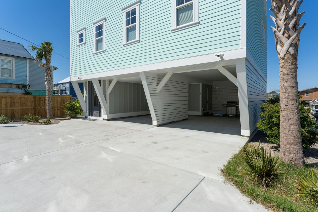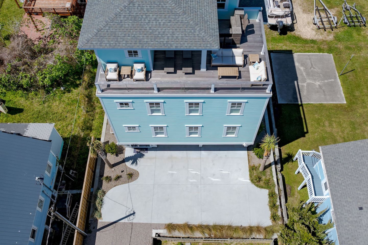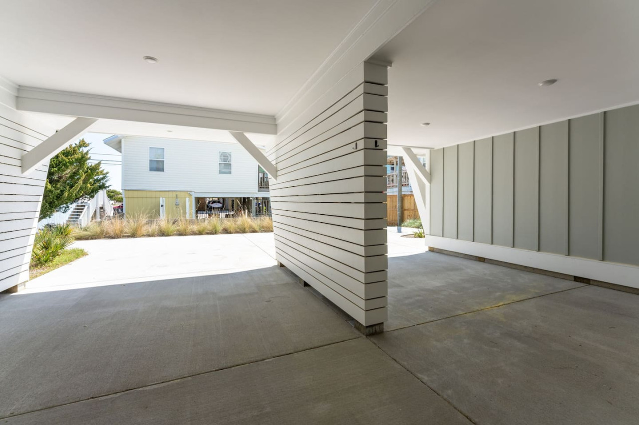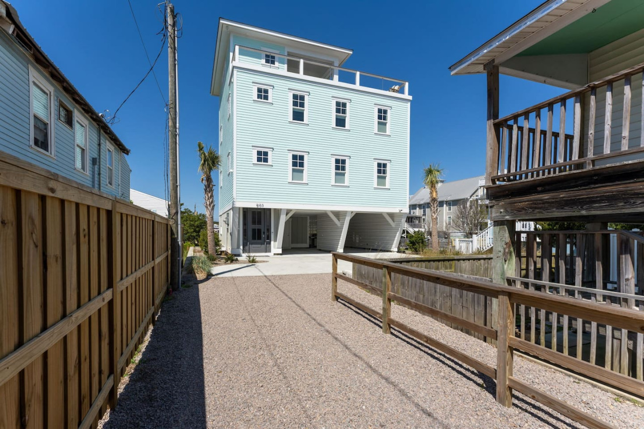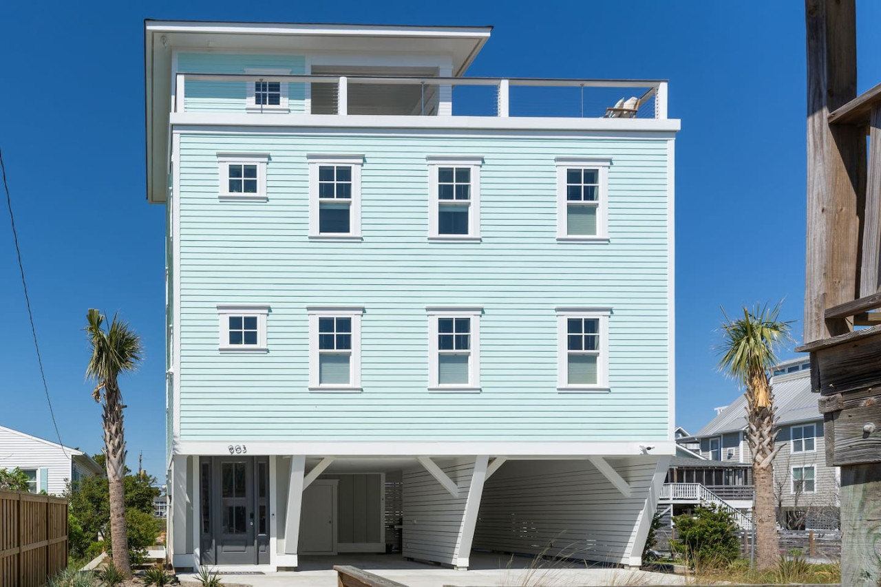 / nightExperience coastal living at its finest in our brand-new, architecturally designed home located just a short walk from the pristine beaches of Carolina Beach. With 4 spacious bedrooms, 4.5 luxurious bathrooms, and a light-filled, modern interior, our home offers the perfect blend of comfort, style, and convenience for your next beach getaway. KEY FEATURES: ➝ New Construction Home ➝ Elevator for access to ALL levels of the home ➝ 2 Master Suites w/ Private Attached Bathroom ➝ 4 Total Comfortable Bedrooms; 2 King Beds, 1 Queen Bed, 4 Twin (2 bunk beds), 1 Queen Sleeper Sofa ➝ 4 Full Bathrooms, 1 Half Bathroom; Walk-in & Tub/Shower Combo Options ➝ Full Kitchen w/Stainless Steel Appliances ➝ High-Speed Wifi + TV in every bedroom ➝ Washer and Dryer ➝ Free parking + EV Charger ☆☆BEDROOMS☆☆ Our home comfortably sleeps up to 12 guests, making it ideal for families, groups of friends, or couples looking for a beach retreat. Each room comes with a complete set of linens and pillows, closet space, and Smart TV. Second Floor Bedrooms: ➝ Bedroom 1: 1 King Bed (Private Bathroom) ➝ Bedroom 2: 1 Queen Bed, 1 Bunk Bed (Private Bathroom) Third Floor Bedrooms: ➝ Bedroom 3: 1 King Bed (Private Bathroom) Fourth Floor Bedrooms: ➝ Bedroom 4: 1 Bunk Bed, 1 Queen Sleeper Sofa in Common Space (Shared Hallway Bathroom) ☆☆BATHROOMS☆☆ Spend time freshening up after a day in the sun in the spa-like bathrooms. Each bathroom comes equipped with shampoo, conditioner, and body wash so you don't have to worry about bringing your own. ➝ Second Floor Bathrooms: 2 Full Bathrooms Attached to Bedrooms ➝ Third Floor Bathrooms: 1 Full Bathroom Attached to Bedroom, 1 Half Bath in Hallway ➝ Fourth Floor Bathrooms: 1 Full Bathroom in Hallway ☆☆MAIN KITCHEN & LIVING ROOM☆☆ Step into the heart of our stunning beach home and discover a kitchen that seamlessly blends elegance with functionality. Designed with the traveler in mind, our open-concept kitchen boasts a contemporary aesthetic, featuring sleek stainless steel appliances, pristine countertops, and custom cabinetry that exudes luxury and sophistication. A dining area perfect for gathering is equipped with countertop seating for 4, and a large dining table with seating for 8. The simplistic lounge features a comfy sofa with two additional chairs, and large Smart TV, making it the go-to room to gather with your group and enjoy some quality time together. ➝ Dishwasher with detergent provided ➝ Coffee, tea, and basic pantry staples ➝ High-quality cutlery and dinnerware ➝ Wine glasses and bar accessories ➝ Cleaning supplies and trash bags ☆☆SECONDARY KITCHEN & LIVING ROOM☆☆ The top floor of this home is the perfect space to utilize for great views out the balcony doors, gathering with your group, or using the kitchenette to pour your next glass of wine during sunset. This space allows for additional room to spread out your group in the home! Not to mention what comes when you step outside the doors to the balcony… ☆☆OUTSIDE SPACE☆☆ Prepare to take in ultimate bliss when you step onto the fourth floor balcony! This space has seating for your entire group, to sit watching the sunrise with your coffee, or utilize the wet bar for pouring a cocktail during sunset. The breeze and salty smells, matched with the ocean views are a moment to soak in. On the ground level of the home, guests are equipped with parking for up to 3 cars comfortably (4 is a tight squeeze!), an outdoor shower, and a gas grill for cooking. This tranquil coastal home provides convenient beach access in a prime location. The community offers a welcoming ambiance with various recreational opportunities such as fishing and kayaking. Surrounding amenities and attractions enhance the relaxed coastal living experience, making it a perfect choice for a relaxing beach getaway. There is enough space for 3 cars to park at the home. Parking is directly underneath the home and a few extra spaces out front. There are many bike rentals and many restaurants, shops, and local bars are in close driving or biking distance!