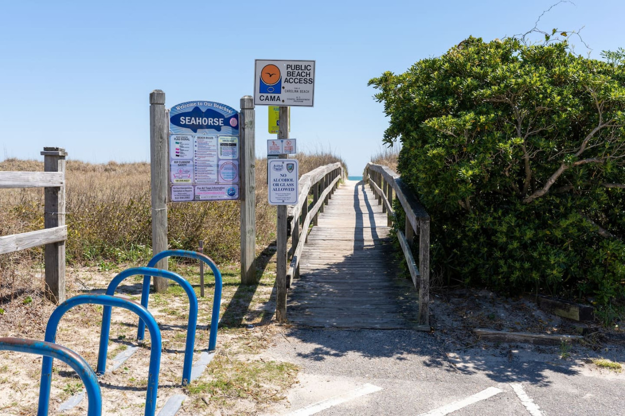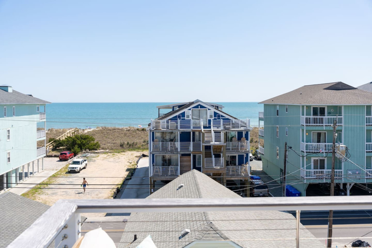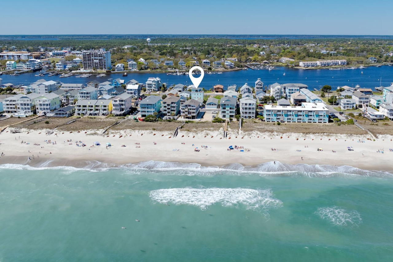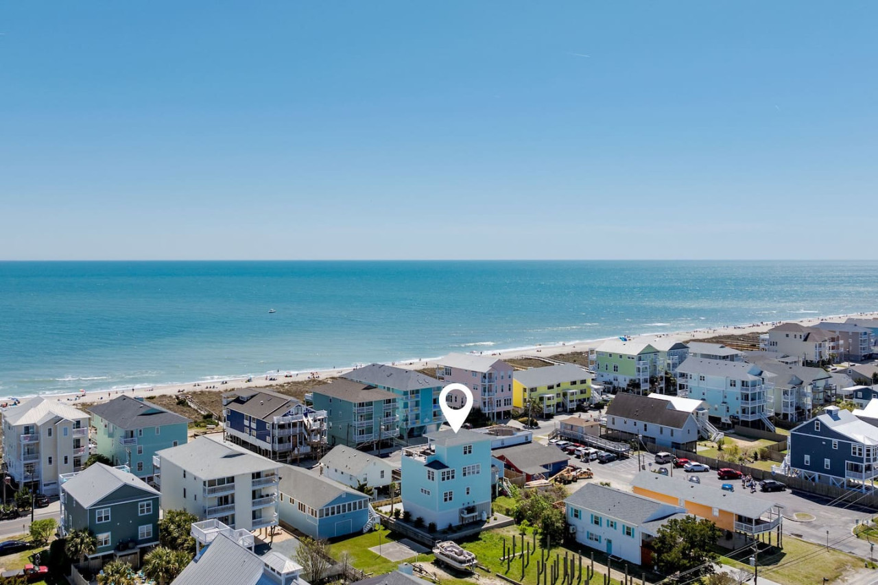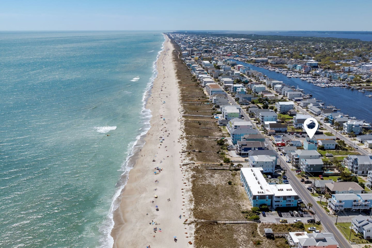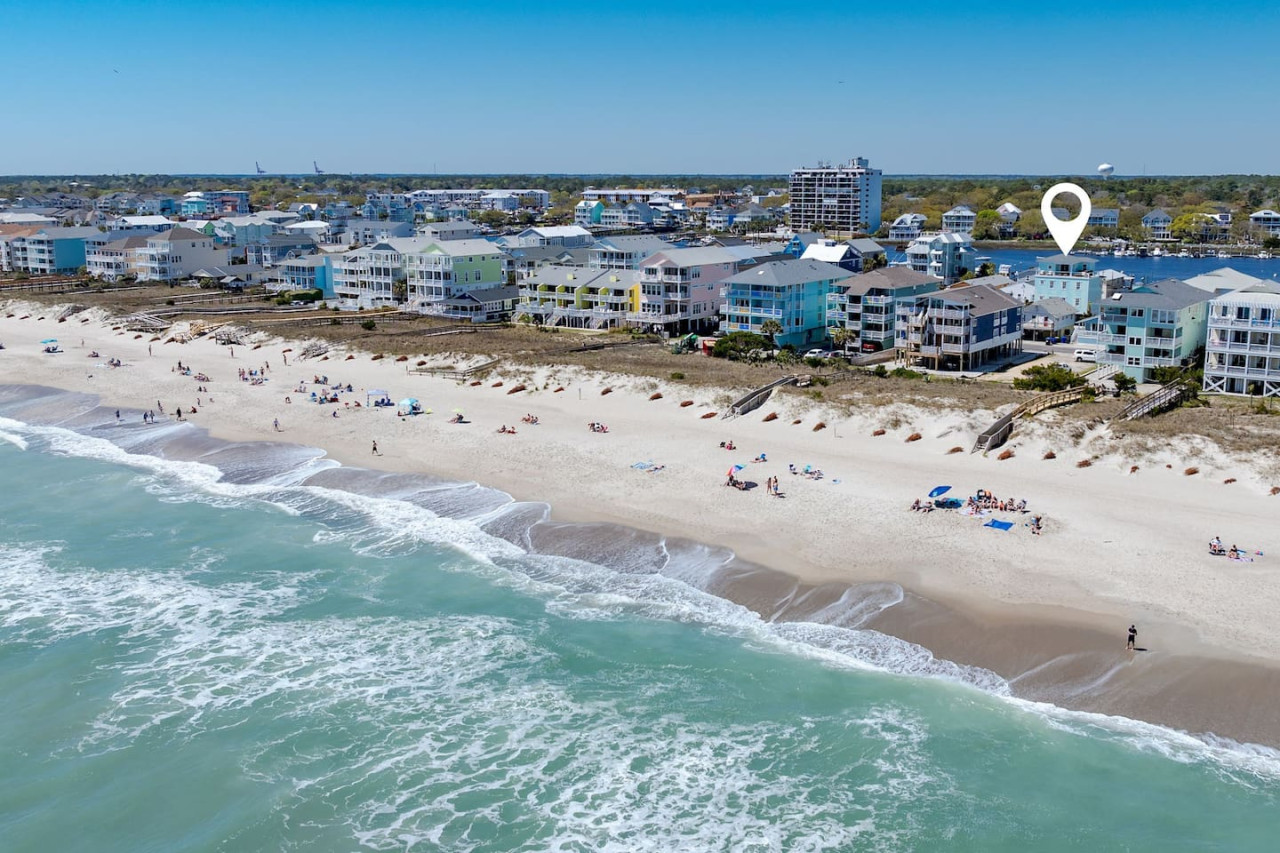 / nightExperience coastal living at its finest in our brand-new, architecturally designed home located just a short walk from the pristine beaches of Carolina Beach. With 4 spacious bedrooms, 4.5 luxurious bathrooms, and a light-filled, modern interior, our home offers the perfect blend of comfort, style, and convenience for your next beach getaway. KEY FEATURES: ➝ New Construction Home ➝ Elevator for access to ALL levels of the home ➝ 2 Master Suites w/ Private Attached Bathroom ➝ 4 Total Comfortable Bedrooms; 2 King Beds, 1 Queen Bed, 4 Twin (2 bunk beds), 1 Queen Sleeper Sofa ➝ 4 Full Bathrooms, 1 Half Bathroom; Walk-in & Tub/Shower Combo Options ➝ Full Kitchen w/Stainless Steel Appliances ➝ High-Speed Wifi + TV in every bedroom ➝ Washer and Dryer ➝ Free parking + EV Charger ☆☆BEDROOMS☆☆ Our home comfortably sleeps up to 12 guests, making it ideal for families, groups of friends, or couples looking for a beach retreat. Each room comes with a complete set of linens and pillows, closet space, and Smart TV. Second Floor Bedrooms: ➝ Bedroom 1: 1 King Bed (Private Bathroom) ➝ Bedroom 2: 1 Queen Bed, 1 Bunk Bed (Private Bathroom) Third Floor Bedrooms: ➝ Bedroom 3: 1 King Bed (Private Bathroom) Fourth Floor Bedrooms: ➝ Bedroom 4: 1 Bunk Bed, 1 Queen Sleeper Sofa in Common Space (Shared Hallway Bathroom) ☆☆BATHROOMS☆☆ Spend time freshening up after a day in the sun in the spa-like bathrooms. Each bathroom comes equipped with shampoo, conditioner, and body wash so you don't have to worry about bringing your own. ➝ Second Floor Bathrooms: 2 Full Bathrooms Attached to Bedrooms ➝ Third Floor Bathrooms: 1 Full Bathroom Attached to Bedroom, 1 Half Bath in Hallway ➝ Fourth Floor Bathrooms: 1 Full Bathroom in Hallway ☆☆MAIN KITCHEN & LIVING ROOM☆☆ Step into the heart of our stunning beach home and discover a kitchen that seamlessly blends elegance with functionality. Designed with the traveler in mind, our open-concept kitchen boasts a contemporary aesthetic, featuring sleek stainless steel appliances, pristine countertops, and custom cabinetry that exudes luxury and sophistication. A dining area perfect for gathering is equipped with countertop seating for 4, and a large dining table with seating for 8. The simplistic lounge features a comfy sofa with two additional chairs, and large Smart TV, making it the go-to room to gather with your group and enjoy some quality time together. ➝ Dishwasher with detergent provided ➝ Coffee, tea, and basic pantry staples ➝ High-quality cutlery and dinnerware ➝ Wine glasses and bar accessories ➝ Cleaning supplies and trash bags ☆☆SECONDARY KITCHEN & LIVING ROOM☆☆ The top floor of this home is the perfect space to utilize for great views out the balcony doors, gathering with your group, or using the kitchenette to pour your next glass of wine during sunset. This space allows for additional room to spread out your group in the home! Not to mention what comes when you step outside the doors to the balcony… ☆☆OUTSIDE SPACE☆☆ Prepare to take in ultimate bliss when you step onto the fourth floor balcony! This space has seating for your entire group, to sit watching the sunrise with your coffee, or utilize the wet bar for pouring a cocktail during sunset. The breeze and salty smells, matched with the ocean views are a moment to soak in. On the ground level of the home, guests are equipped with parking for up to 3 cars comfortably (4 is a tight squeeze!), an outdoor shower, and a gas grill for cooking. This tranquil coastal home provides convenient beach access in a prime location. The community offers a welcoming ambiance with various recreational opportunities such as fishing and kayaking. Surrounding amenities and attractions enhance the relaxed coastal living experience, making it a perfect choice for a relaxing beach getaway. There is enough space for 3 cars to park at the home. Parking is directly underneath the home and a few extra spaces out front. There are many bike rentals and many restaurants, shops, and local bars are in close driving or biking distance!