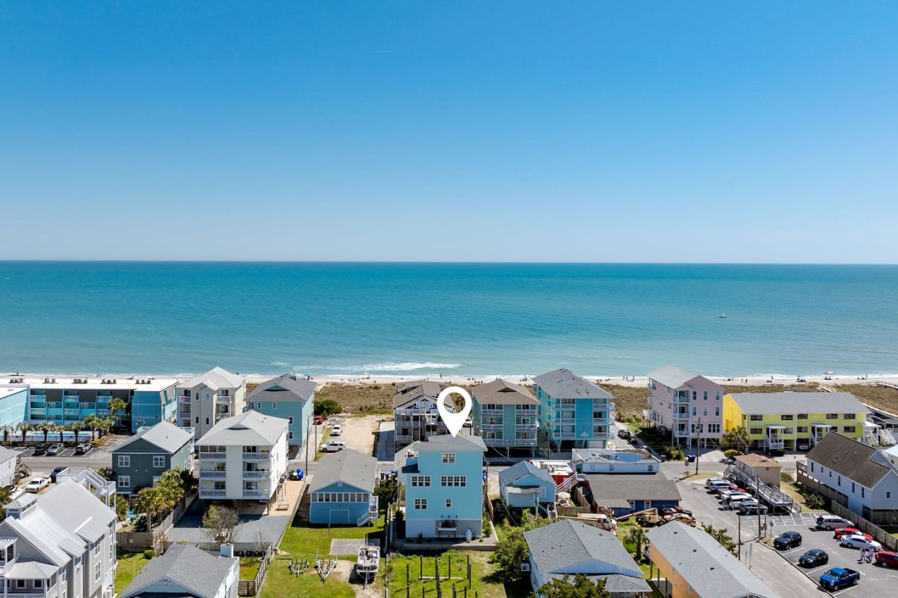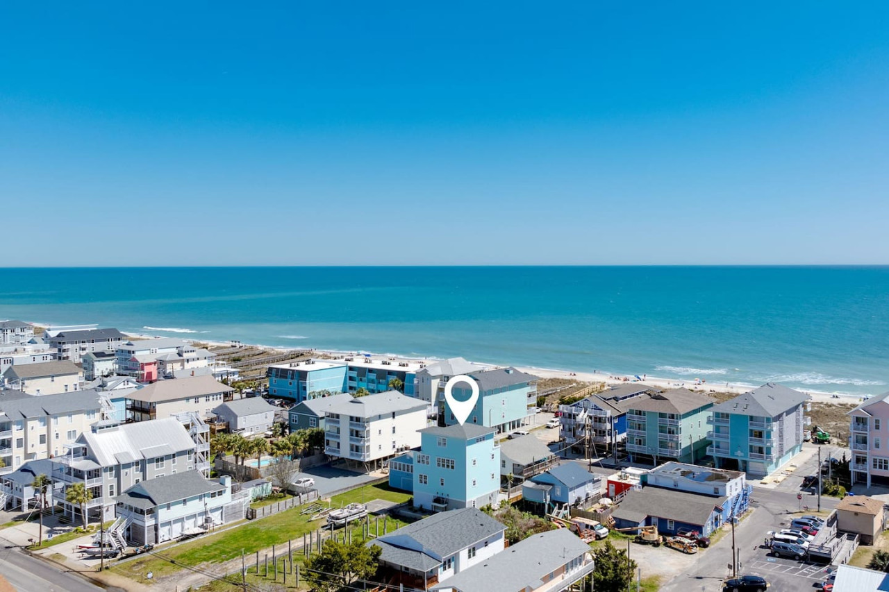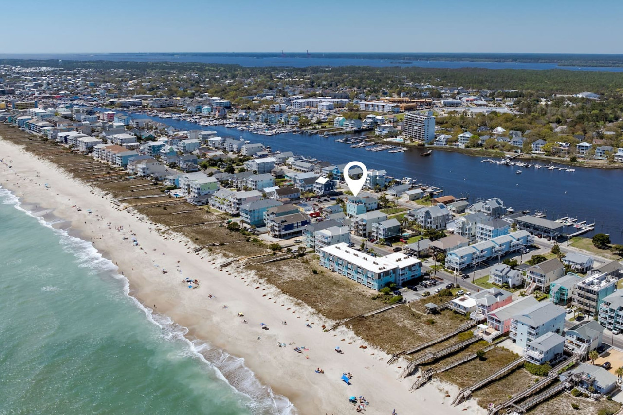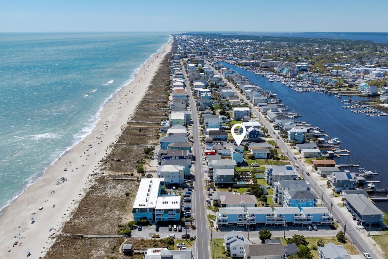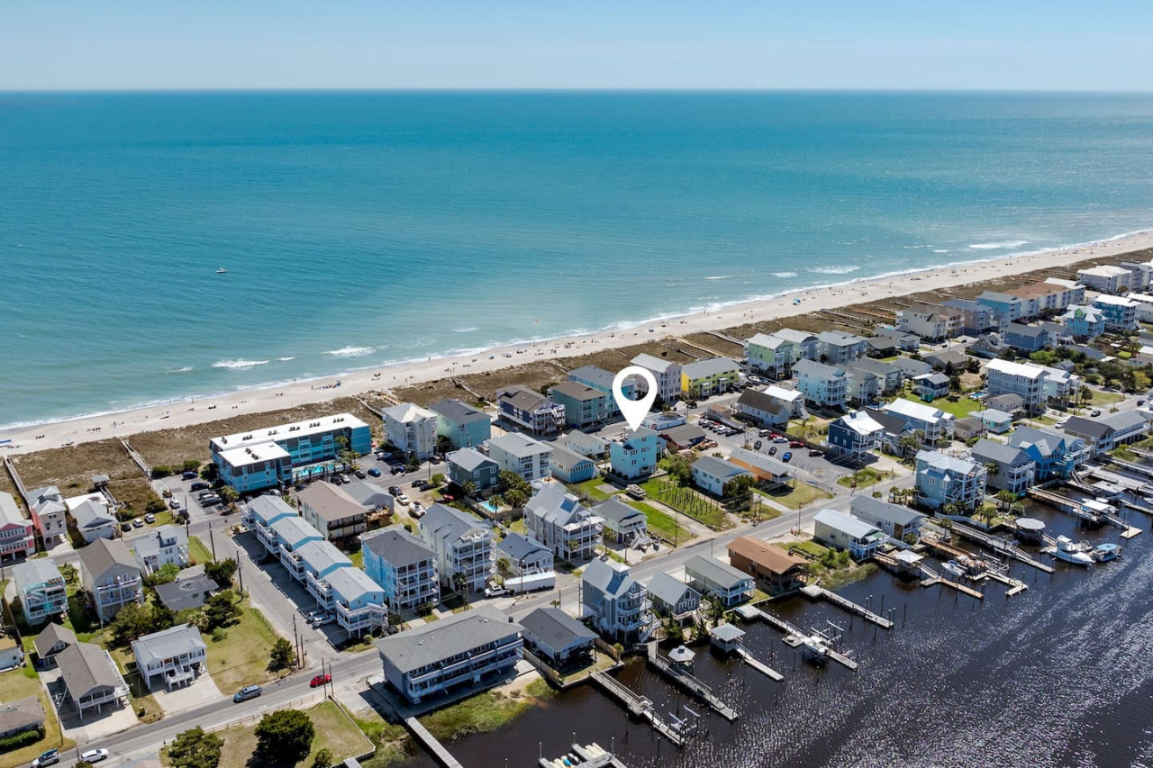 / nightExperience coastal living at its finest in our brand-new, architecturally designed home located just a short walk from the pristine beaches of Carolina Beach. With 4 spacious bedrooms, 4.5 luxurious bathrooms, and a light-filled, modern interior, our home offers the perfect blend of comfort, style, and convenience for your next beach getaway. KEY FEATURES: ➝ New Construction Home ➝ Elevator for access to ALL levels of the home ➝ 2 Master Suites w/ Private Attached Bathroom ➝ 4 Total Comfortable Bedrooms; 2 King Beds, 1 Queen Bed, 4 Twin (2 bunk beds), 1 Queen Sleeper Sofa ➝ 4 Full Bathrooms, 1 Half Bathroom; Walk-in & Tub/Shower Combo Options ➝ Full Kitchen w/Stainless Steel Appliances ➝ High-Speed Wifi + TV in every bedroom ➝ Washer and Dryer ➝ Free parking + EV Charger ☆☆BEDROOMS☆☆ Our home comfortably sleeps up to 12 guests, making it ideal for families, groups of friends, or couples looking for a beach retreat. Each room comes with a complete set of linens and pillows, closet space, and Smart TV. Second Floor Bedrooms: ➝ Bedroom 1: 1 King Bed (Private Bathroom) ➝ Bedroom 2: 1 Queen Bed, 1 Bunk Bed (Private Bathroom) Third Floor Bedrooms: ➝ Bedroom 3: 1 King Bed (Private Bathroom) Fourth Floor Bedrooms: ➝ Bedroom 4: 1 Bunk Bed, 1 Queen Sleeper Sofa in Common Space (Shared Hallway Bathroom) ☆☆BATHROOMS☆☆ Spend time freshening up after a day in the sun in the spa-like bathrooms. Each bathroom comes equipped with shampoo, conditioner, and body wash so you don't have to worry about bringing your own. ➝ Second Floor Bathrooms: 2 Full Bathrooms Attached to Bedrooms ➝ Third Floor Bathrooms: 1 Full Bathroom Attached to Bedroom, 1 Half Bath in Hallway ➝ Fourth Floor Bathrooms: 1 Full Bathroom in Hallway ☆☆MAIN KITCHEN & LIVING ROOM☆☆ Step into the heart of our stunning beach home and discover a kitchen that seamlessly blends elegance with functionality. Designed with the traveler in mind, our open-concept kitchen boasts a contemporary aesthetic, featuring sleek stainless steel appliances, pristine countertops, and custom cabinetry that exudes luxury and sophistication. A dining area perfect for gathering is equipped with countertop seating for 4, and a large dining table with seating for 8. The simplistic lounge features a comfy sofa with two additional chairs, and large Smart TV, making it the go-to room to gather with your group and enjoy some quality time together. ➝ Dishwasher with detergent provided ➝ Coffee, tea, and basic pantry staples ➝ High-quality cutlery and dinnerware ➝ Wine glasses and bar accessories ➝ Cleaning supplies and trash bags ☆☆SECONDARY KITCHEN & LIVING ROOM☆☆ The top floor of this home is the perfect space to utilize for great views out the balcony doors, gathering with your group, or using the kitchenette to pour your next glass of wine during sunset. This space allows for additional room to spread out your group in the home! Not to mention what comes when you step outside the doors to the balcony… ☆☆OUTSIDE SPACE☆☆ Prepare to take in ultimate bliss when you step onto the fourth floor balcony! This space has seating for your entire group, to sit watching the sunrise with your coffee, or utilize the wet bar for pouring a cocktail during sunset. The breeze and salty smells, matched with the ocean views are a moment to soak in. On the ground level of the home, guests are equipped with parking for up to 3 cars comfortably (4 is a tight squeeze!), an outdoor shower, and a gas grill for cooking. This tranquil coastal home provides convenient beach access in a prime location. The community offers a welcoming ambiance with various recreational opportunities such as fishing and kayaking. Surrounding amenities and attractions enhance the relaxed coastal living experience, making it a perfect choice for a relaxing beach getaway. There is enough space for 3 cars to park at the home. Parking is directly underneath the home and a few extra spaces out front. There are many bike rentals and many restaurants, shops, and local bars are in close driving or biking distance!