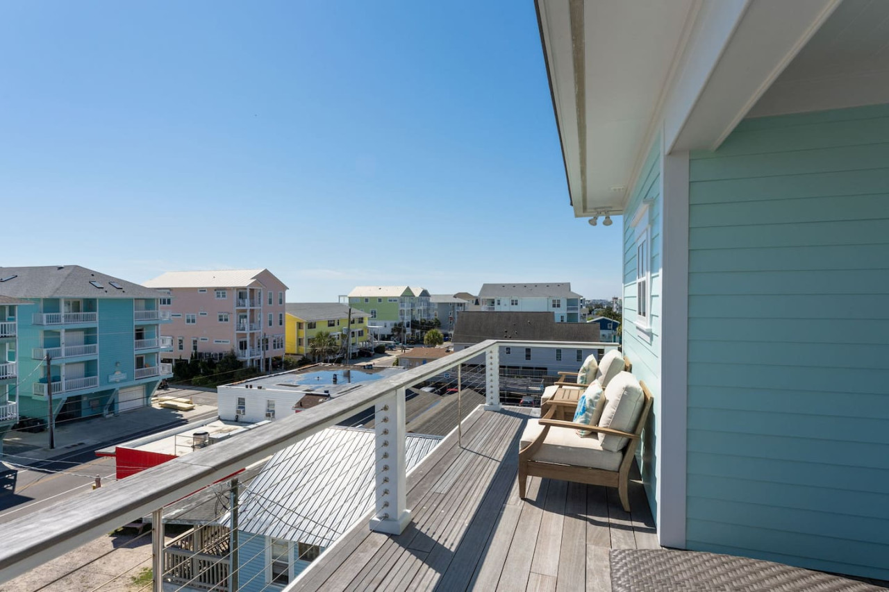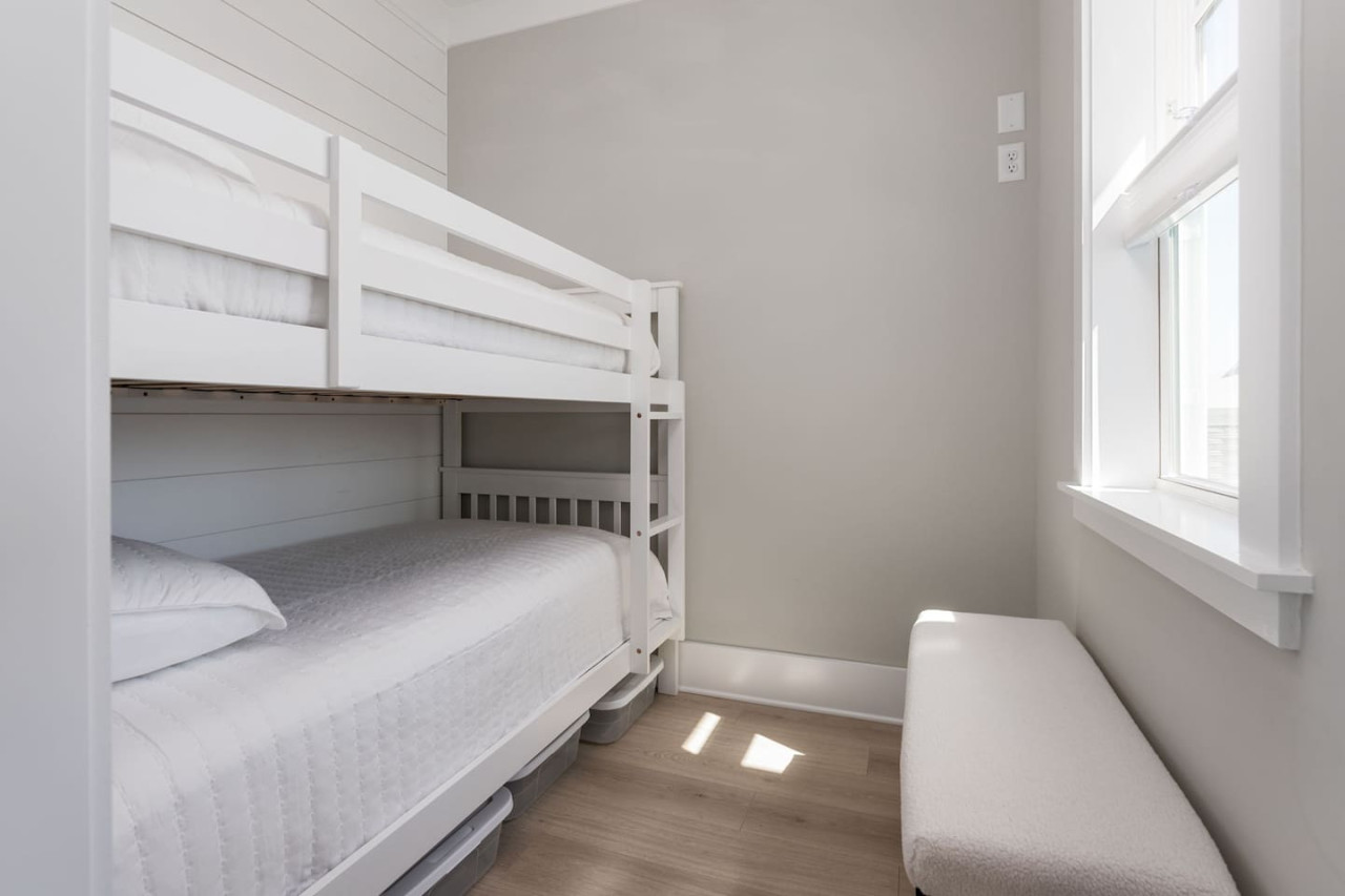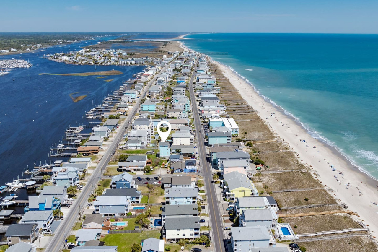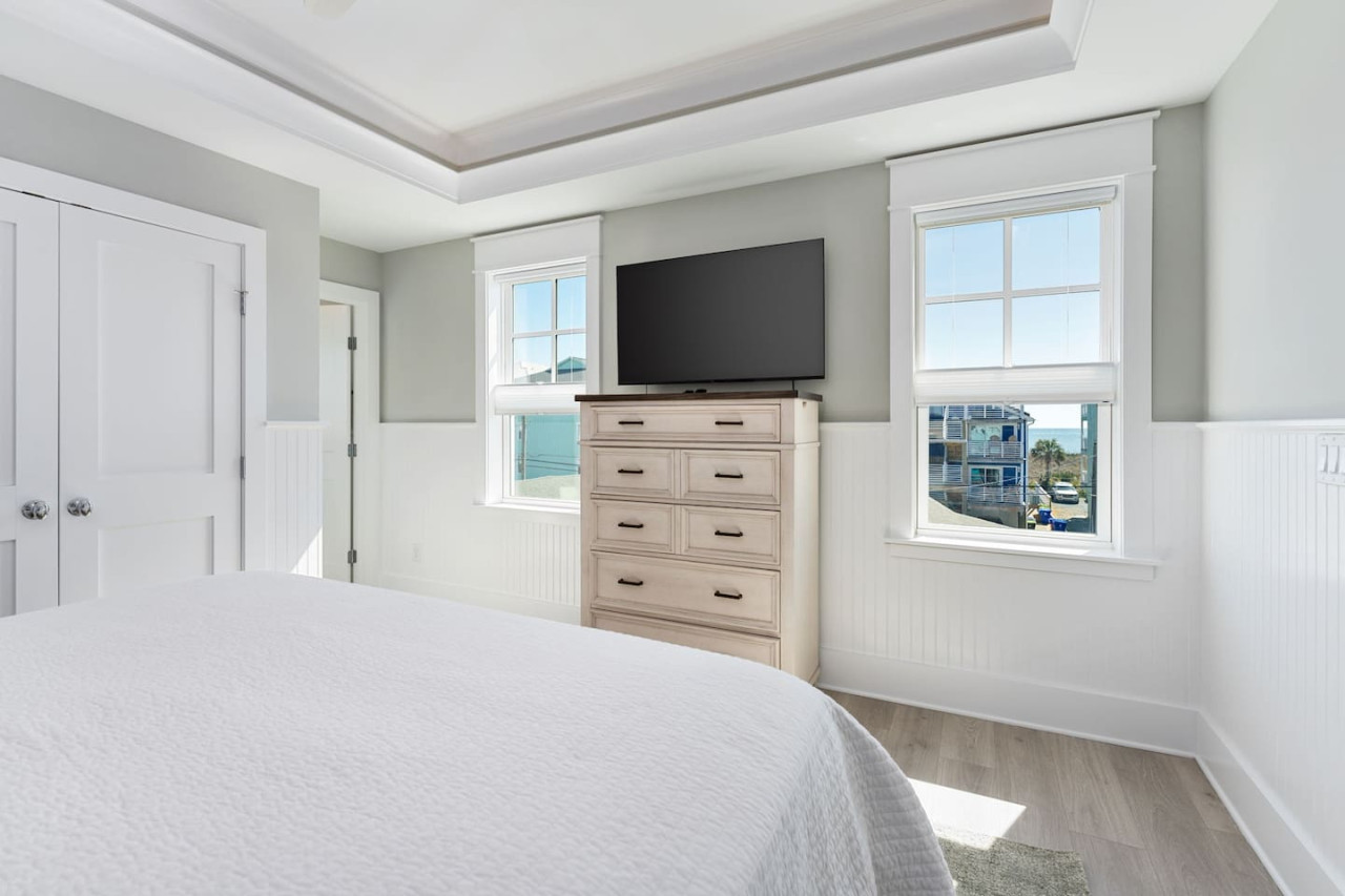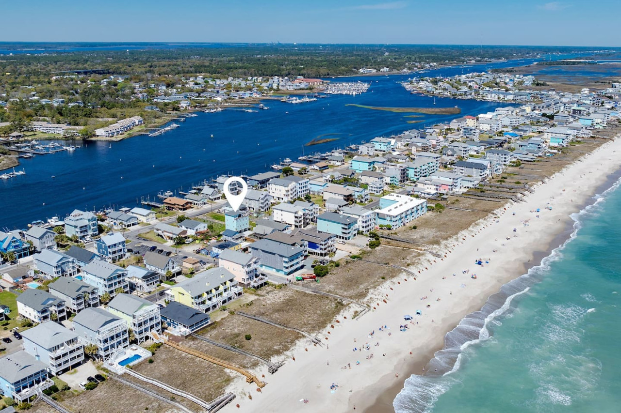 / nightExperience coastal living at its finest in our brand-new, architecturally designed home located just a short walk from the pristine beaches of Carolina Beach. With 4 spacious bedrooms, 4.5 luxurious bathrooms, and a light-filled, modern interior, our home offers the perfect blend of comfort, style, and convenience for your next beach getaway. KEY FEATURES: ➝ New Construction Home ➝ Elevator for access to ALL levels of the home ➝ 2 Master Suites w/ Private Attached Bathroom ➝ 4 Total Comfortable Bedrooms; 2 King Beds, 1 Queen Bed, 4 Twin (2 bunk beds), 1 Queen Sleeper Sofa ➝ 4 Full Bathrooms, 1 Half Bathroom; Walk-in & Tub/Shower Combo Options ➝ Full Kitchen w/Stainless Steel Appliances ➝ High-Speed Wifi + TV in every bedroom ➝ Washer and Dryer ➝ Free parking + EV Charger ☆☆BEDROOMS☆☆ Our home comfortably sleeps up to 12 guests, making it ideal for families, groups of friends, or couples looking for a beach retreat. Each room comes with a complete set of linens and pillows, closet space, and Smart TV. Second Floor Bedrooms: ➝ Bedroom 1: 1 King Bed (Private Bathroom) ➝ Bedroom 2: 1 Queen Bed, 1 Bunk Bed (Private Bathroom) Third Floor Bedrooms: ➝ Bedroom 3: 1 King Bed (Private Bathroom) Fourth Floor Bedrooms: ➝ Bedroom 4: 1 Bunk Bed, 1 Queen Sleeper Sofa in Common Space (Shared Hallway Bathroom) ☆☆BATHROOMS☆☆ Spend time freshening up after a day in the sun in the spa-like bathrooms. Each bathroom comes equipped with shampoo, conditioner, and body wash so you don't have to worry about bringing your own. ➝ Second Floor Bathrooms: 2 Full Bathrooms Attached to Bedrooms ➝ Third Floor Bathrooms: 1 Full Bathroom Attached to Bedroom, 1 Half Bath in Hallway ➝ Fourth Floor Bathrooms: 1 Full Bathroom in Hallway ☆☆MAIN KITCHEN & LIVING ROOM☆☆ Step into the heart of our stunning beach home and discover a kitchen that seamlessly blends elegance with functionality. Designed with the traveler in mind, our open-concept kitchen boasts a contemporary aesthetic, featuring sleek stainless steel appliances, pristine countertops, and custom cabinetry that exudes luxury and sophistication. A dining area perfect for gathering is equipped with countertop seating for 4, and a large dining table with seating for 8. The simplistic lounge features a comfy sofa with two additional chairs, and large Smart TV, making it the go-to room to gather with your group and enjoy some quality time together. ➝ Dishwasher with detergent provided ➝ Coffee, tea, and basic pantry staples ➝ High-quality cutlery and dinnerware ➝ Wine glasses and bar accessories ➝ Cleaning supplies and trash bags ☆☆SECONDARY KITCHEN & LIVING ROOM☆☆ The top floor of this home is the perfect space to utilize for great views out the balcony doors, gathering with your group, or using the kitchenette to pour your next glass of wine during sunset. This space allows for additional room to spread out your group in the home! Not to mention what comes when you step outside the doors to the balcony… ☆☆OUTSIDE SPACE☆☆ Prepare to take in ultimate bliss when you step onto the fourth floor balcony! This space has seating for your entire group, to sit watching the sunrise with your coffee, or utilize the wet bar for pouring a cocktail during sunset. The breeze and salty smells, matched with the ocean views are a moment to soak in. On the ground level of the home, guests are equipped with parking for up to 3 cars comfortably (4 is a tight squeeze!), an outdoor shower, and a gas grill for cooking. This tranquil coastal home provides convenient beach access in a prime location. The community offers a welcoming ambiance with various recreational opportunities such as fishing and kayaking. Surrounding amenities and attractions enhance the relaxed coastal living experience, making it a perfect choice for a relaxing beach getaway. There is enough space for 3 cars to park at the home. Parking is directly underneath the home and a few extra spaces out front. There are many bike rentals and many restaurants, shops, and local bars are in close driving or biking distance!