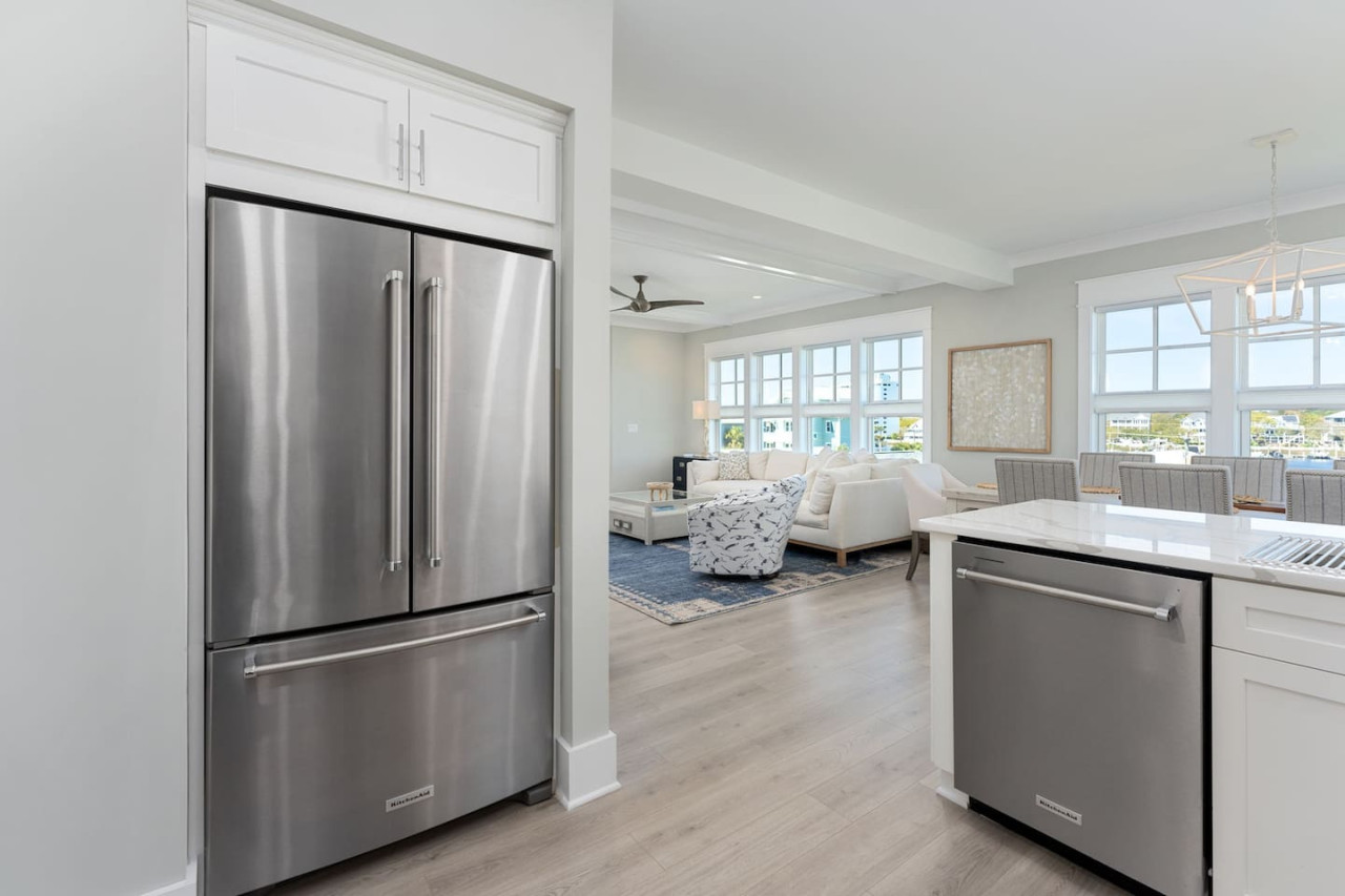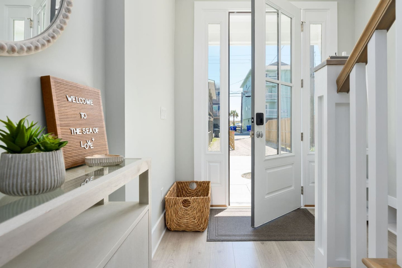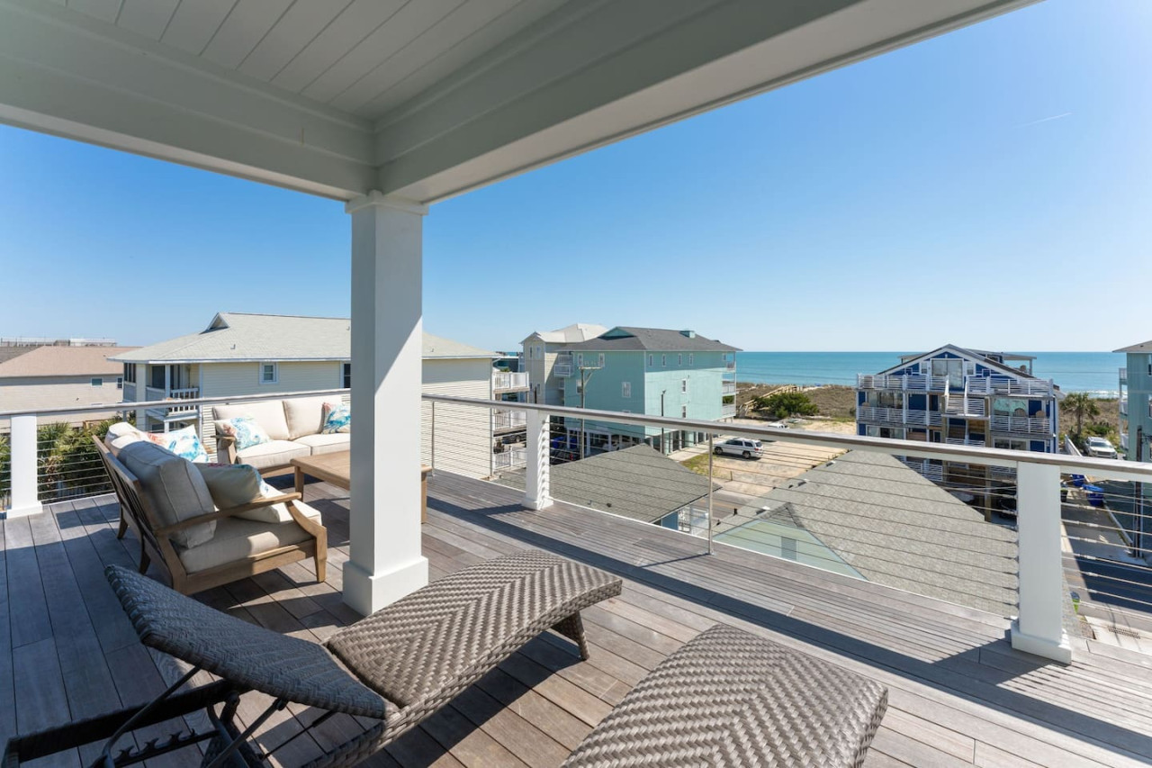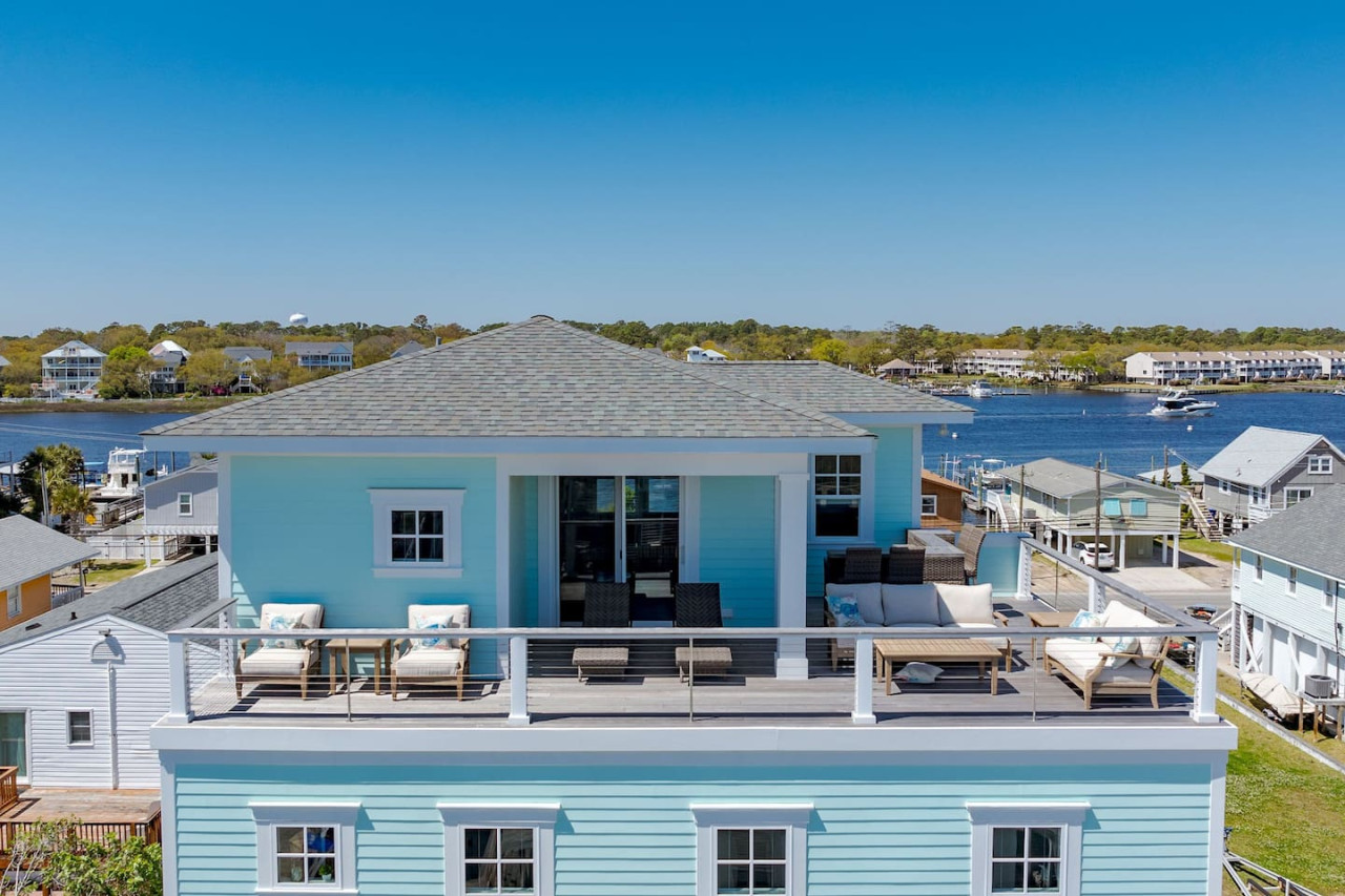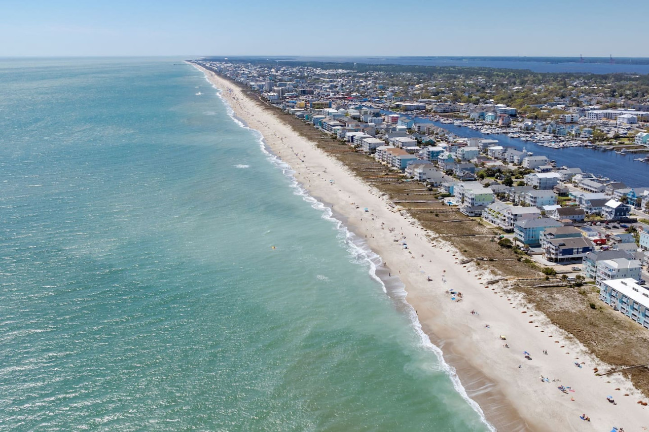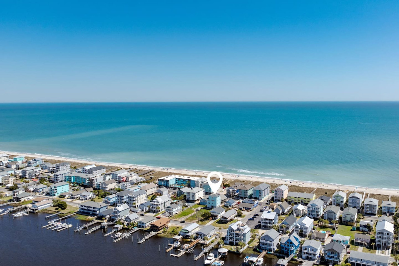 / nightExperience coastal living at its finest in our brand-new, architecturally designed home located just a short walk from the pristine beaches of Carolina Beach. With 4 spacious bedrooms, 4.5 luxurious bathrooms, and a light-filled, modern interior, our home offers the perfect blend of comfort, style, and convenience for your next beach getaway. KEY FEATURES: ➝ New Construction Home ➝ Elevator for access to ALL levels of the home ➝ 2 Master Suites w/ Private Attached Bathroom ➝ 4 Total Comfortable Bedrooms; 2 King Beds, 1 Queen Bed, 4 Twin (2 bunk beds), 1 Queen Sleeper Sofa ➝ 4 Full Bathrooms, 1 Half Bathroom; Walk-in & Tub/Shower Combo Options ➝ Full Kitchen w/Stainless Steel Appliances ➝ High-Speed Wifi + TV in every bedroom ➝ Washer and Dryer ➝ Free parking + EV Charger ☆☆BEDROOMS☆☆ Our home comfortably sleeps up to 12 guests, making it ideal for families, groups of friends, or couples looking for a beach retreat. Each room comes with a complete set of linens and pillows, closet space, and Smart TV. Second Floor Bedrooms: ➝ Bedroom 1: 1 King Bed (Private Bathroom) ➝ Bedroom 2: 1 Queen Bed, 1 Bunk Bed (Private Bathroom) Third Floor Bedrooms: ➝ Bedroom 3: 1 King Bed (Private Bathroom) Fourth Floor Bedrooms: ➝ Bedroom 4: 1 Bunk Bed, 1 Queen Sleeper Sofa in Common Space (Shared Hallway Bathroom) ☆☆BATHROOMS☆☆ Spend time freshening up after a day in the sun in the spa-like bathrooms. Each bathroom comes equipped with shampoo, conditioner, and body wash so you don't have to worry about bringing your own. ➝ Second Floor Bathrooms: 2 Full Bathrooms Attached to Bedrooms ➝ Third Floor Bathrooms: 1 Full Bathroom Attached to Bedroom, 1 Half Bath in Hallway ➝ Fourth Floor Bathrooms: 1 Full Bathroom in Hallway ☆☆MAIN KITCHEN & LIVING ROOM☆☆ Step into the heart of our stunning beach home and discover a kitchen that seamlessly blends elegance with functionality. Designed with the traveler in mind, our open-concept kitchen boasts a contemporary aesthetic, featuring sleek stainless steel appliances, pristine countertops, and custom cabinetry that exudes luxury and sophistication. A dining area perfect for gathering is equipped with countertop seating for 4, and a large dining table with seating for 8. The simplistic lounge features a comfy sofa with two additional chairs, and large Smart TV, making it the go-to room to gather with your group and enjoy some quality time together. ➝ Dishwasher with detergent provided ➝ Coffee, tea, and basic pantry staples ➝ High-quality cutlery and dinnerware ➝ Wine glasses and bar accessories ➝ Cleaning supplies and trash bags ☆☆SECONDARY KITCHEN & LIVING ROOM☆☆ The top floor of this home is the perfect space to utilize for great views out the balcony doors, gathering with your group, or using the kitchenette to pour your next glass of wine during sunset. This space allows for additional room to spread out your group in the home! Not to mention what comes when you step outside the doors to the balcony… ☆☆OUTSIDE SPACE☆☆ Prepare to take in ultimate bliss when you step onto the fourth floor balcony! This space has seating for your entire group, to sit watching the sunrise with your coffee, or utilize the wet bar for pouring a cocktail during sunset. The breeze and salty smells, matched with the ocean views are a moment to soak in. On the ground level of the home, guests are equipped with parking for up to 3 cars comfortably (4 is a tight squeeze!), an outdoor shower, and a gas grill for cooking. This tranquil coastal home provides convenient beach access in a prime location. The community offers a welcoming ambiance with various recreational opportunities such as fishing and kayaking. Surrounding amenities and attractions enhance the relaxed coastal living experience, making it a perfect choice for a relaxing beach getaway. There is enough space for 3 cars to park at the home. Parking is directly underneath the home and a few extra spaces out front. There are many bike rentals and many restaurants, shops, and local bars are in close driving or biking distance!