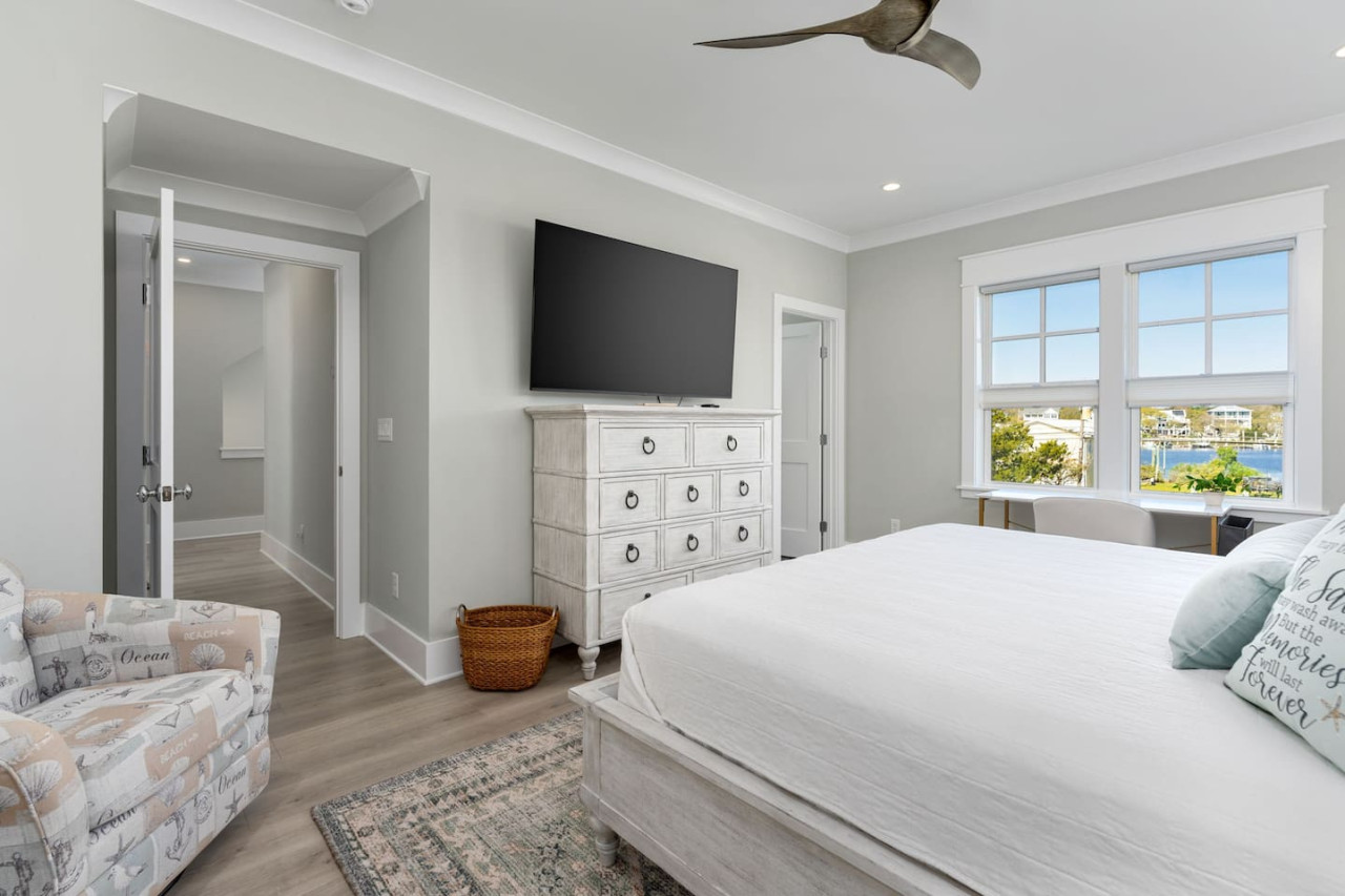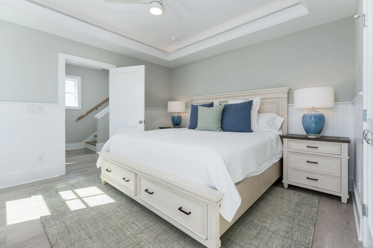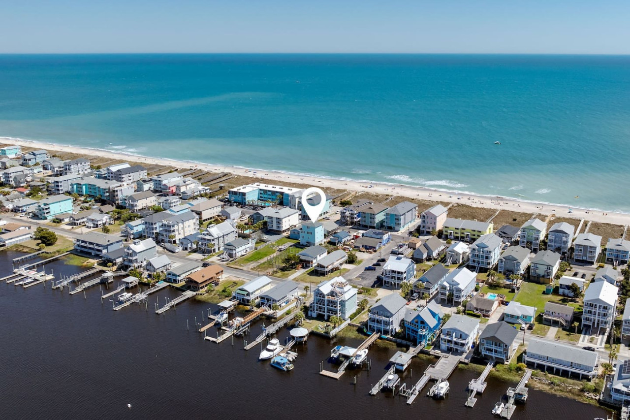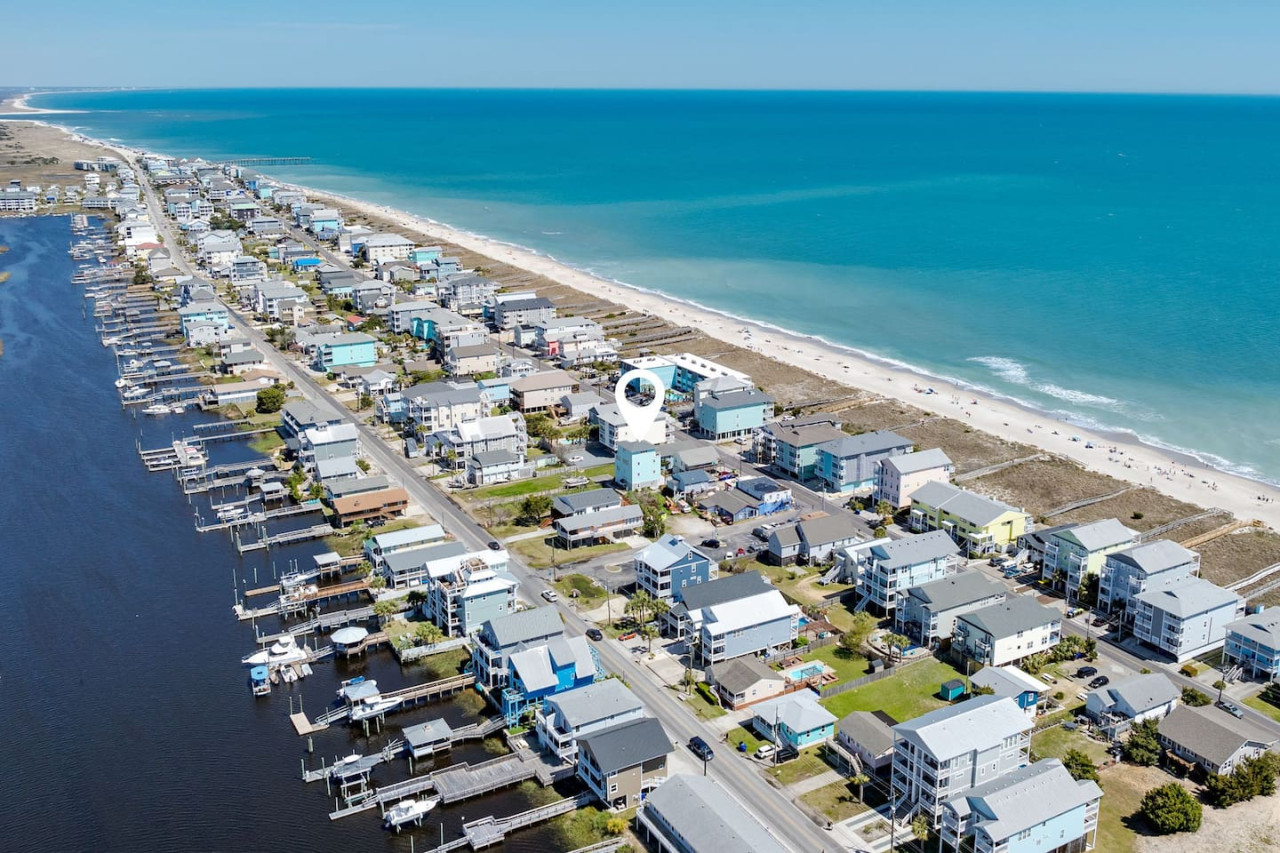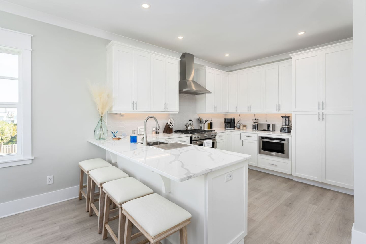 / nightExperience coastal living at its finest in our brand-new, architecturally designed home located just a short walk from the pristine beaches of Carolina Beach. With 4 spacious bedrooms, 4.5 luxurious bathrooms, and a light-filled, modern interior, our home offers the perfect blend of comfort, style, and convenience for your next beach getaway. KEY FEATURES: ➝ New Construction Home ➝ Elevator for access to ALL levels of the home ➝ 2 Master Suites w/ Private Attached Bathroom ➝ 4 Total Comfortable Bedrooms; 2 King Beds, 1 Queen Bed, 4 Twin (2 bunk beds), 1 Queen Sleeper Sofa ➝ 4 Full Bathrooms, 1 Half Bathroom; Walk-in & Tub/Shower Combo Options ➝ Full Kitchen w/Stainless Steel Appliances ➝ High-Speed Wifi + TV in every bedroom ➝ Washer and Dryer ➝ Free parking + EV Charger ☆☆BEDROOMS☆☆ Our home comfortably sleeps up to 12 guests, making it ideal for families, groups of friends, or couples looking for a beach retreat. Each room comes with a complete set of linens and pillows, closet space, and Smart TV. Second Floor Bedrooms: ➝ Bedroom 1: 1 King Bed (Private Bathroom) ➝ Bedroom 2: 1 Queen Bed, 1 Bunk Bed (Private Bathroom) Third Floor Bedrooms: ➝ Bedroom 3: 1 King Bed (Private Bathroom) Fourth Floor Bedrooms: ➝ Bedroom 4: 1 Bunk Bed, 1 Queen Sleeper Sofa in Common Space (Shared Hallway Bathroom) ☆☆BATHROOMS☆☆ Spend time freshening up after a day in the sun in the spa-like bathrooms. Each bathroom comes equipped with shampoo, conditioner, and body wash so you don't have to worry about bringing your own. ➝ Second Floor Bathrooms: 2 Full Bathrooms Attached to Bedrooms ➝ Third Floor Bathrooms: 1 Full Bathroom Attached to Bedroom, 1 Half Bath in Hallway ➝ Fourth Floor Bathrooms: 1 Full Bathroom in Hallway ☆☆MAIN KITCHEN & LIVING ROOM☆☆ Step into the heart of our stunning beach home and discover a kitchen that seamlessly blends elegance with functionality. Designed with the traveler in mind, our open-concept kitchen boasts a contemporary aesthetic, featuring sleek stainless steel appliances, pristine countertops, and custom cabinetry that exudes luxury and sophistication. A dining area perfect for gathering is equipped with countertop seating for 4, and a large dining table with seating for 8. The simplistic lounge features a comfy sofa with two additional chairs, and large Smart TV, making it the go-to room to gather with your group and enjoy some quality time together. ➝ Dishwasher with detergent provided ➝ Coffee, tea, and basic pantry staples ➝ High-quality cutlery and dinnerware ➝ Wine glasses and bar accessories ➝ Cleaning supplies and trash bags ☆☆SECONDARY KITCHEN & LIVING ROOM☆☆ The top floor of this home is the perfect space to utilize for great views out the balcony doors, gathering with your group, or using the kitchenette to pour your next glass of wine during sunset. This space allows for additional room to spread out your group in the home! Not to mention what comes when you step outside the doors to the balcony… ☆☆OUTSIDE SPACE☆☆ Prepare to take in ultimate bliss when you step onto the fourth floor balcony! This space has seating for your entire group, to sit watching the sunrise with your coffee, or utilize the wet bar for pouring a cocktail during sunset. The breeze and salty smells, matched with the ocean views are a moment to soak in. On the ground level of the home, guests are equipped with parking for up to 3 cars comfortably (4 is a tight squeeze!), an outdoor shower, and a gas grill for cooking. This tranquil coastal home provides convenient beach access in a prime location. The community offers a welcoming ambiance with various recreational opportunities such as fishing and kayaking. Surrounding amenities and attractions enhance the relaxed coastal living experience, making it a perfect choice for a relaxing beach getaway. There is enough space for 3 cars to park at the home. Parking is directly underneath the home and a few extra spaces out front. There are many bike rentals and many restaurants, shops, and local bars are in close driving or biking distance!