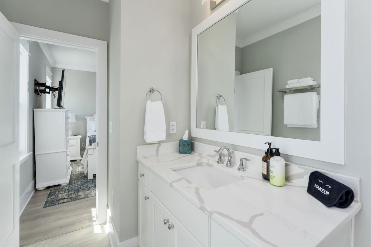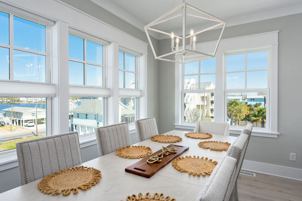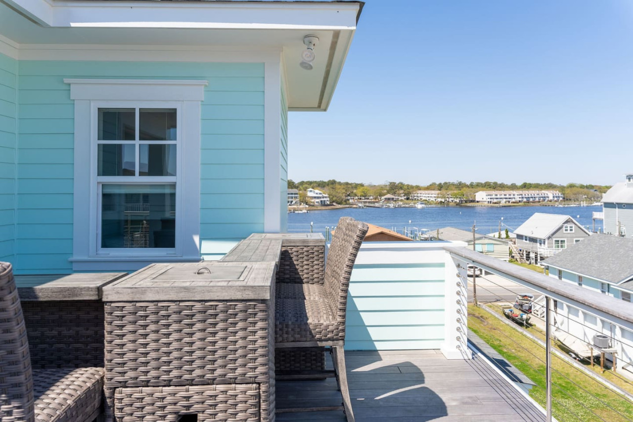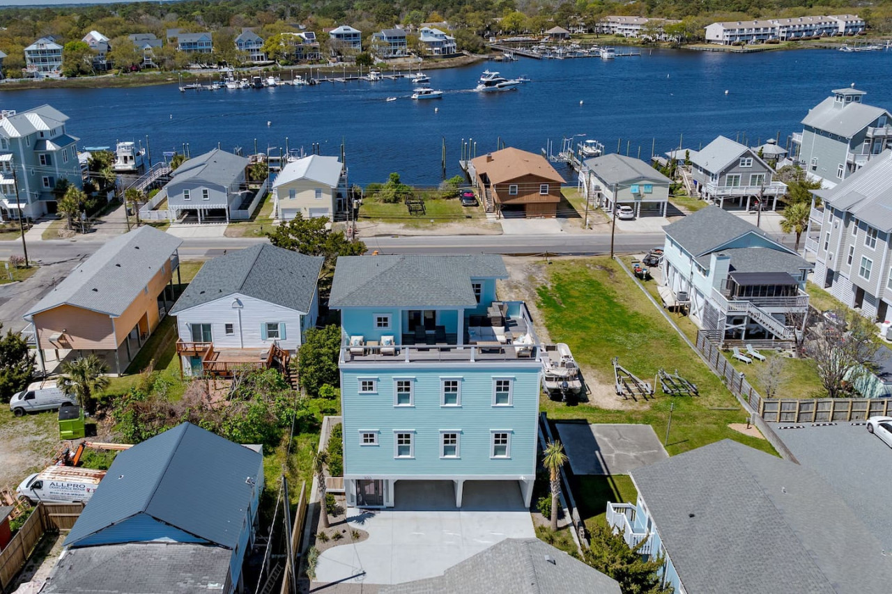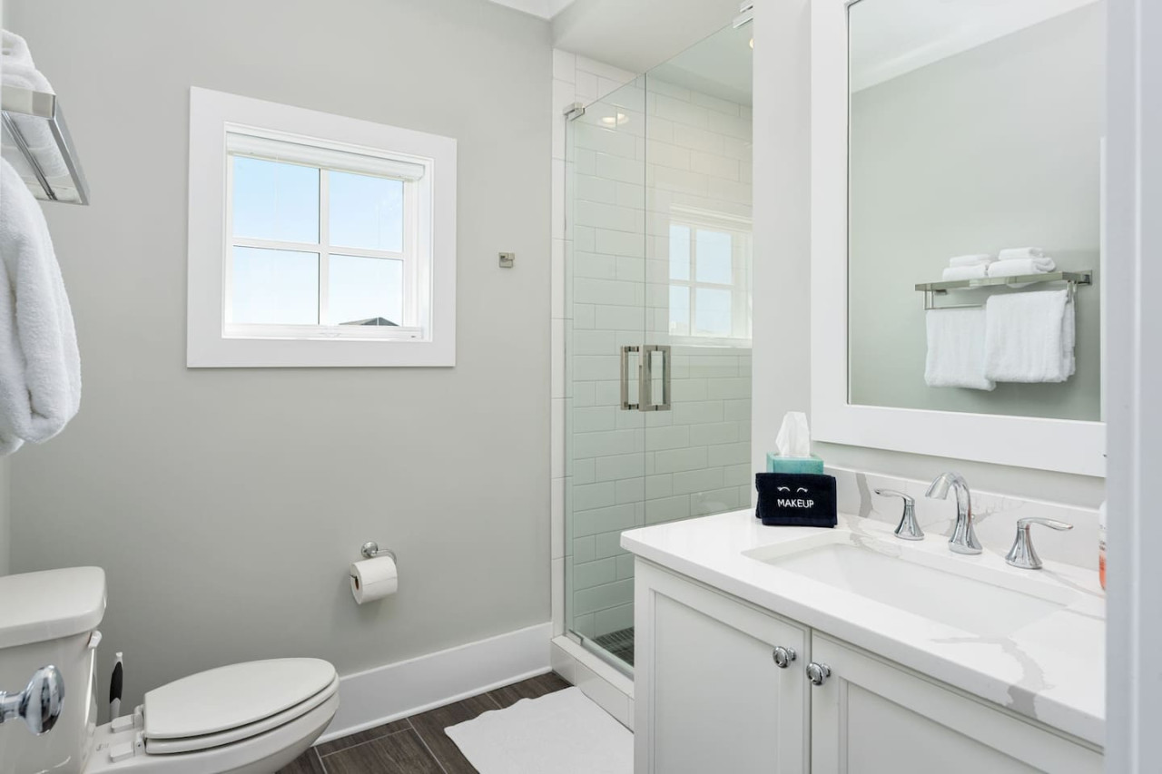 / nightExperience coastal living at its finest in our brand-new, architecturally designed home located just a short walk from the pristine beaches of Carolina Beach. With 4 spacious bedrooms, 4.5 luxurious bathrooms, and a light-filled, modern interior, our home offers the perfect blend of comfort, style, and convenience for your next beach getaway. KEY FEATURES: ➝ New Construction Home ➝ Elevator for access to ALL levels of the home ➝ 2 Master Suites w/ Private Attached Bathroom ➝ 4 Total Comfortable Bedrooms; 2 King Beds, 1 Queen Bed, 4 Twin (2 bunk beds), 1 Queen Sleeper Sofa ➝ 4 Full Bathrooms, 1 Half Bathroom; Walk-in & Tub/Shower Combo Options ➝ Full Kitchen w/Stainless Steel Appliances ➝ High-Speed Wifi + TV in every bedroom ➝ Washer and Dryer ➝ Free parking + EV Charger ☆☆BEDROOMS☆☆ Our home comfortably sleeps up to 12 guests, making it ideal for families, groups of friends, or couples looking for a beach retreat. Each room comes with a complete set of linens and pillows, closet space, and Smart TV. Second Floor Bedrooms: ➝ Bedroom 1: 1 King Bed (Private Bathroom) ➝ Bedroom 2: 1 Queen Bed, 1 Bunk Bed (Private Bathroom) Third Floor Bedrooms: ➝ Bedroom 3: 1 King Bed (Private Bathroom) Fourth Floor Bedrooms: ➝ Bedroom 4: 1 Bunk Bed, 1 Queen Sleeper Sofa in Common Space (Shared Hallway Bathroom) ☆☆BATHROOMS☆☆ Spend time freshening up after a day in the sun in the spa-like bathrooms. Each bathroom comes equipped with shampoo, conditioner, and body wash so you don't have to worry about bringing your own. ➝ Second Floor Bathrooms: 2 Full Bathrooms Attached to Bedrooms ➝ Third Floor Bathrooms: 1 Full Bathroom Attached to Bedroom, 1 Half Bath in Hallway ➝ Fourth Floor Bathrooms: 1 Full Bathroom in Hallway ☆☆MAIN KITCHEN & LIVING ROOM☆☆ Step into the heart of our stunning beach home and discover a kitchen that seamlessly blends elegance with functionality. Designed with the traveler in mind, our open-concept kitchen boasts a contemporary aesthetic, featuring sleek stainless steel appliances, pristine countertops, and custom cabinetry that exudes luxury and sophistication. A dining area perfect for gathering is equipped with countertop seating for 4, and a large dining table with seating for 8. The simplistic lounge features a comfy sofa with two additional chairs, and large Smart TV, making it the go-to room to gather with your group and enjoy some quality time together. ➝ Dishwasher with detergent provided ➝ Coffee, tea, and basic pantry staples ➝ High-quality cutlery and dinnerware ➝ Wine glasses and bar accessories ➝ Cleaning supplies and trash bags ☆☆SECONDARY KITCHEN & LIVING ROOM☆☆ The top floor of this home is the perfect space to utilize for great views out the balcony doors, gathering with your group, or using the kitchenette to pour your next glass of wine during sunset. This space allows for additional room to spread out your group in the home! Not to mention what comes when you step outside the doors to the balcony… ☆☆OUTSIDE SPACE☆☆ Prepare to take in ultimate bliss when you step onto the fourth floor balcony! This space has seating for your entire group, to sit watching the sunrise with your coffee, or utilize the wet bar for pouring a cocktail during sunset. The breeze and salty smells, matched with the ocean views are a moment to soak in. On the ground level of the home, guests are equipped with parking for up to 3 cars comfortably (4 is a tight squeeze!), an outdoor shower, and a gas grill for cooking. This tranquil coastal home provides convenient beach access in a prime location. The community offers a welcoming ambiance with various recreational opportunities such as fishing and kayaking. Surrounding amenities and attractions enhance the relaxed coastal living experience, making it a perfect choice for a relaxing beach getaway. There is enough space for 3 cars to park at the home. Parking is directly underneath the home and a few extra spaces out front. There are many bike rentals and many restaurants, shops, and local bars are in close driving or biking distance!