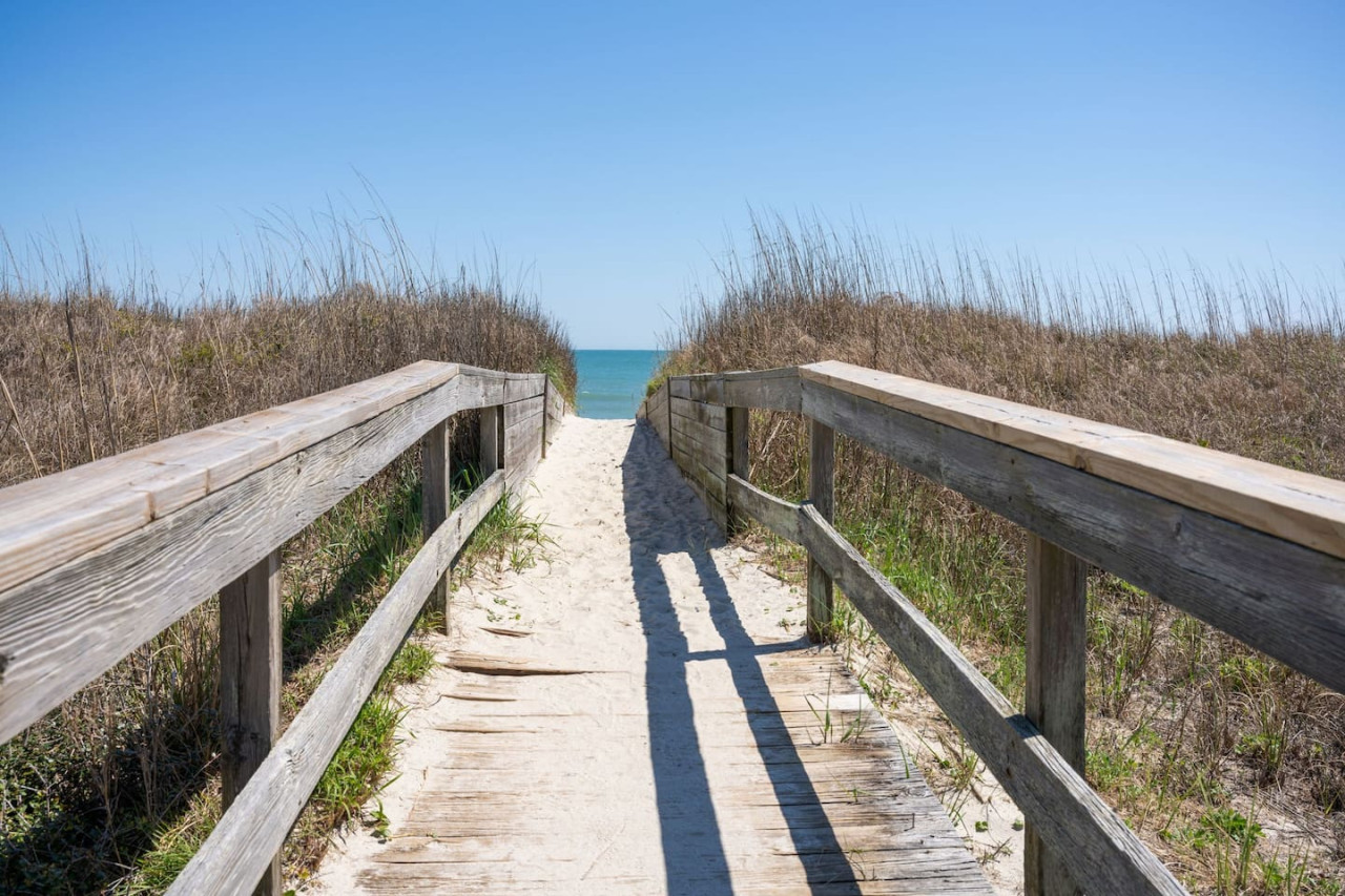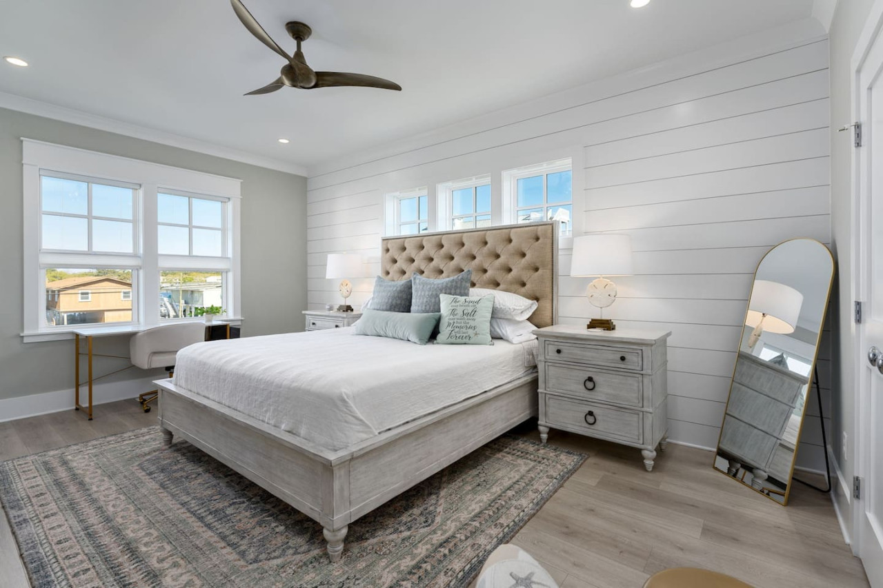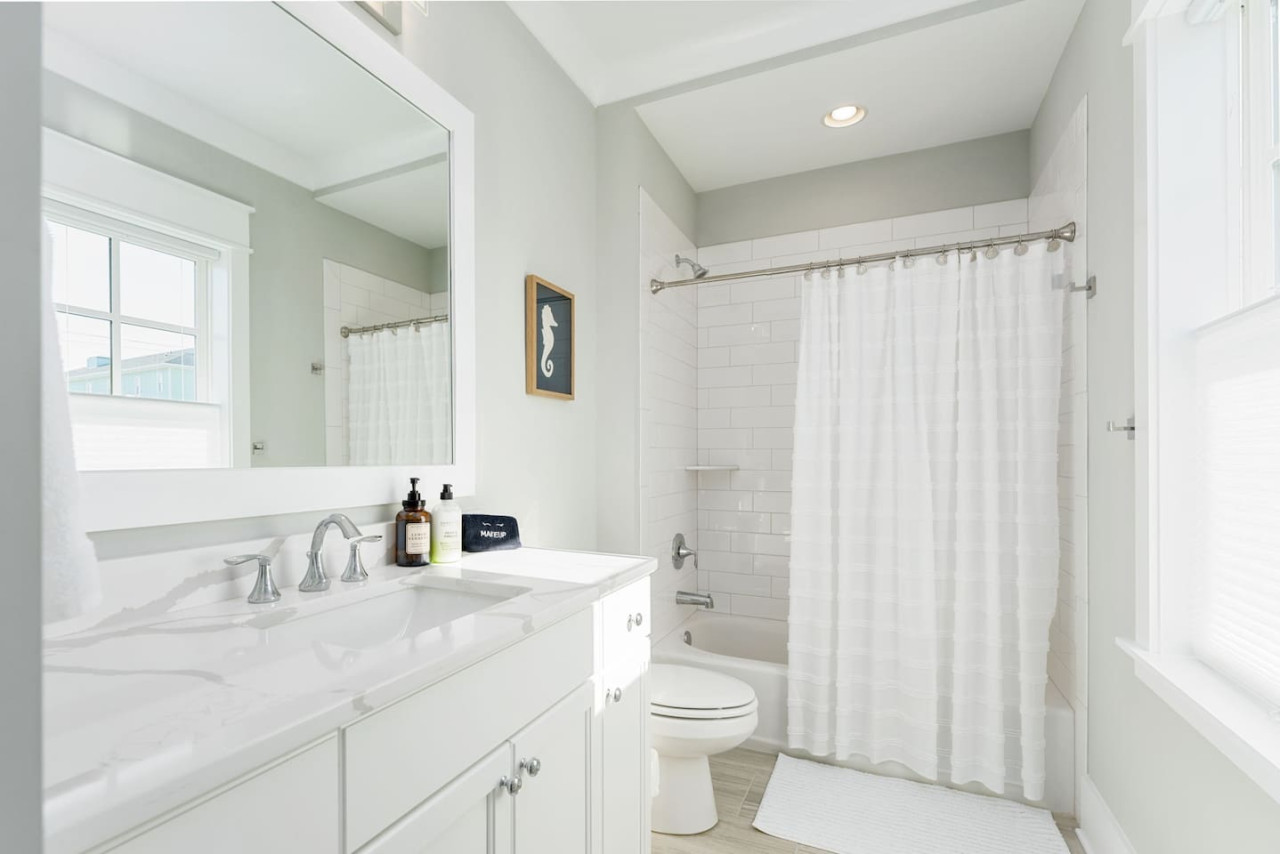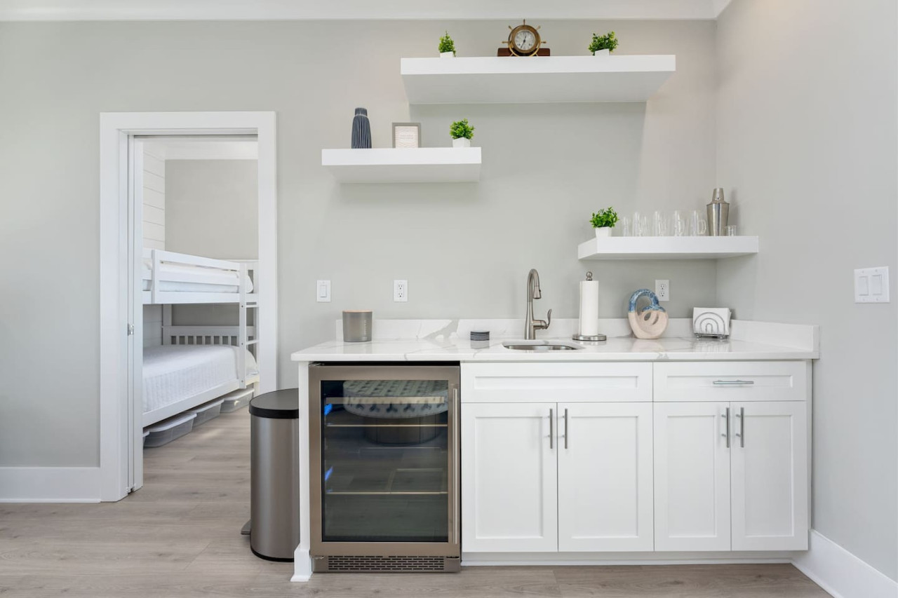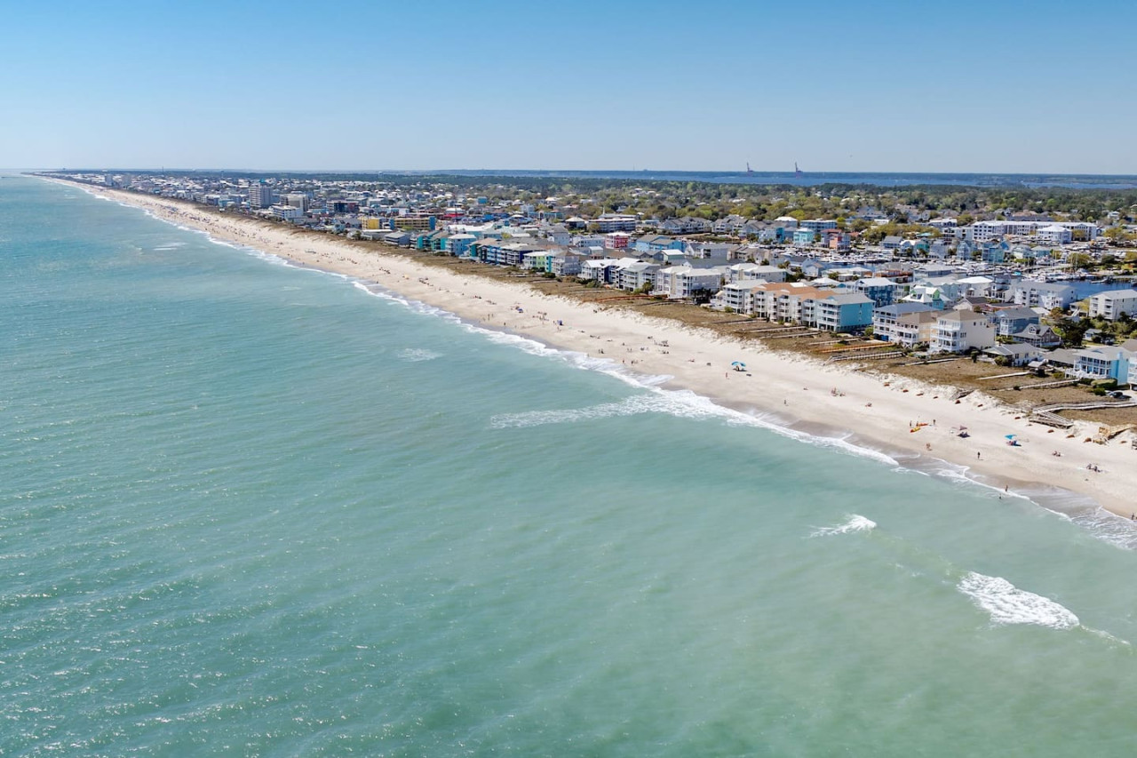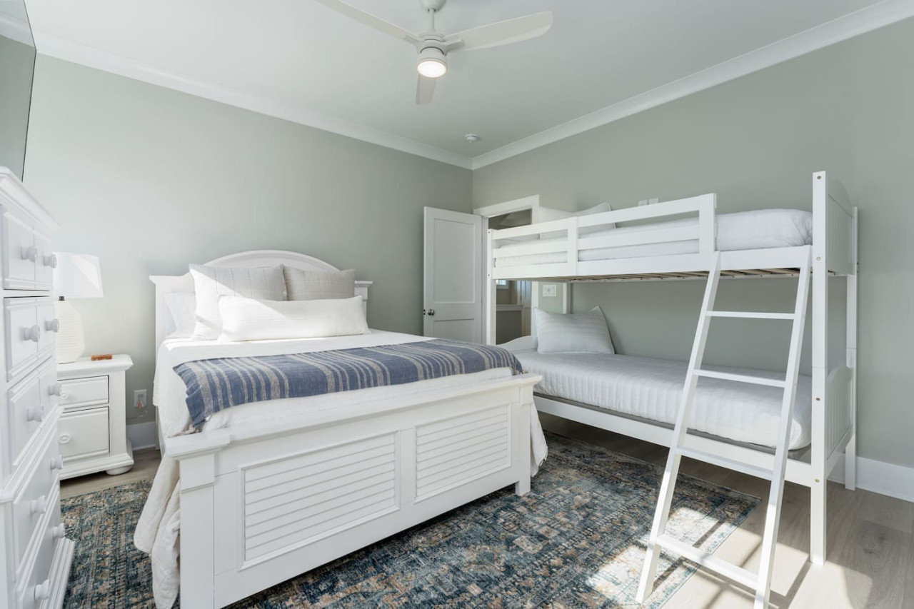 / nightExperience coastal living at its finest in our brand-new, architecturally designed home located just a short walk from the pristine beaches of Carolina Beach. With 4 spacious bedrooms, 4.5 luxurious bathrooms, and a light-filled, modern interior, our home offers the perfect blend of comfort, style, and convenience for your next beach getaway. KEY FEATURES: ➝ New Construction Home ➝ Elevator for access to ALL levels of the home ➝ 2 Master Suites w/ Private Attached Bathroom ➝ 4 Total Comfortable Bedrooms; 2 King Beds, 1 Queen Bed, 4 Twin (2 bunk beds), 1 Queen Sleeper Sofa ➝ 4 Full Bathrooms, 1 Half Bathroom; Walk-in & Tub/Shower Combo Options ➝ Full Kitchen w/Stainless Steel Appliances ➝ High-Speed Wifi + TV in every bedroom ➝ Washer and Dryer ➝ Free parking + EV Charger ☆☆BEDROOMS☆☆ Our home comfortably sleeps up to 12 guests, making it ideal for families, groups of friends, or couples looking for a beach retreat. Each room comes with a complete set of linens and pillows, closet space, and Smart TV. Second Floor Bedrooms: ➝ Bedroom 1: 1 King Bed (Private Bathroom) ➝ Bedroom 2: 1 Queen Bed, 1 Bunk Bed (Private Bathroom) Third Floor Bedrooms: ➝ Bedroom 3: 1 King Bed (Private Bathroom) Fourth Floor Bedrooms: ➝ Bedroom 4: 1 Bunk Bed, 1 Queen Sleeper Sofa in Common Space (Shared Hallway Bathroom) ☆☆BATHROOMS☆☆ Spend time freshening up after a day in the sun in the spa-like bathrooms. Each bathroom comes equipped with shampoo, conditioner, and body wash so you don't have to worry about bringing your own. ➝ Second Floor Bathrooms: 2 Full Bathrooms Attached to Bedrooms ➝ Third Floor Bathrooms: 1 Full Bathroom Attached to Bedroom, 1 Half Bath in Hallway ➝ Fourth Floor Bathrooms: 1 Full Bathroom in Hallway ☆☆MAIN KITCHEN & LIVING ROOM☆☆ Step into the heart of our stunning beach home and discover a kitchen that seamlessly blends elegance with functionality. Designed with the traveler in mind, our open-concept kitchen boasts a contemporary aesthetic, featuring sleek stainless steel appliances, pristine countertops, and custom cabinetry that exudes luxury and sophistication. A dining area perfect for gathering is equipped with countertop seating for 4, and a large dining table with seating for 8. The simplistic lounge features a comfy sofa with two additional chairs, and large Smart TV, making it the go-to room to gather with your group and enjoy some quality time together. ➝ Dishwasher with detergent provided ➝ Coffee, tea, and basic pantry staples ➝ High-quality cutlery and dinnerware ➝ Wine glasses and bar accessories ➝ Cleaning supplies and trash bags ☆☆SECONDARY KITCHEN & LIVING ROOM☆☆ The top floor of this home is the perfect space to utilize for great views out the balcony doors, gathering with your group, or using the kitchenette to pour your next glass of wine during sunset. This space allows for additional room to spread out your group in the home! Not to mention what comes when you step outside the doors to the balcony… ☆☆OUTSIDE SPACE☆☆ Prepare to take in ultimate bliss when you step onto the fourth floor balcony! This space has seating for your entire group, to sit watching the sunrise with your coffee, or utilize the wet bar for pouring a cocktail during sunset. The breeze and salty smells, matched with the ocean views are a moment to soak in. On the ground level of the home, guests are equipped with parking for up to 3 cars comfortably (4 is a tight squeeze!), an outdoor shower, and a gas grill for cooking. This tranquil coastal home provides convenient beach access in a prime location. The community offers a welcoming ambiance with various recreational opportunities such as fishing and kayaking. Surrounding amenities and attractions enhance the relaxed coastal living experience, making it a perfect choice for a relaxing beach getaway. There is enough space for 3 cars to park at the home. Parking is directly underneath the home and a few extra spaces out front. There are many bike rentals and many restaurants, shops, and local bars are in close driving or biking distance!