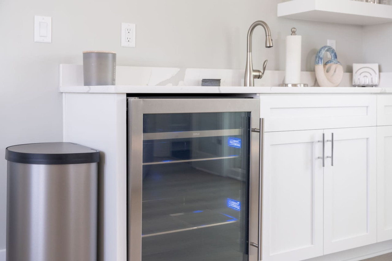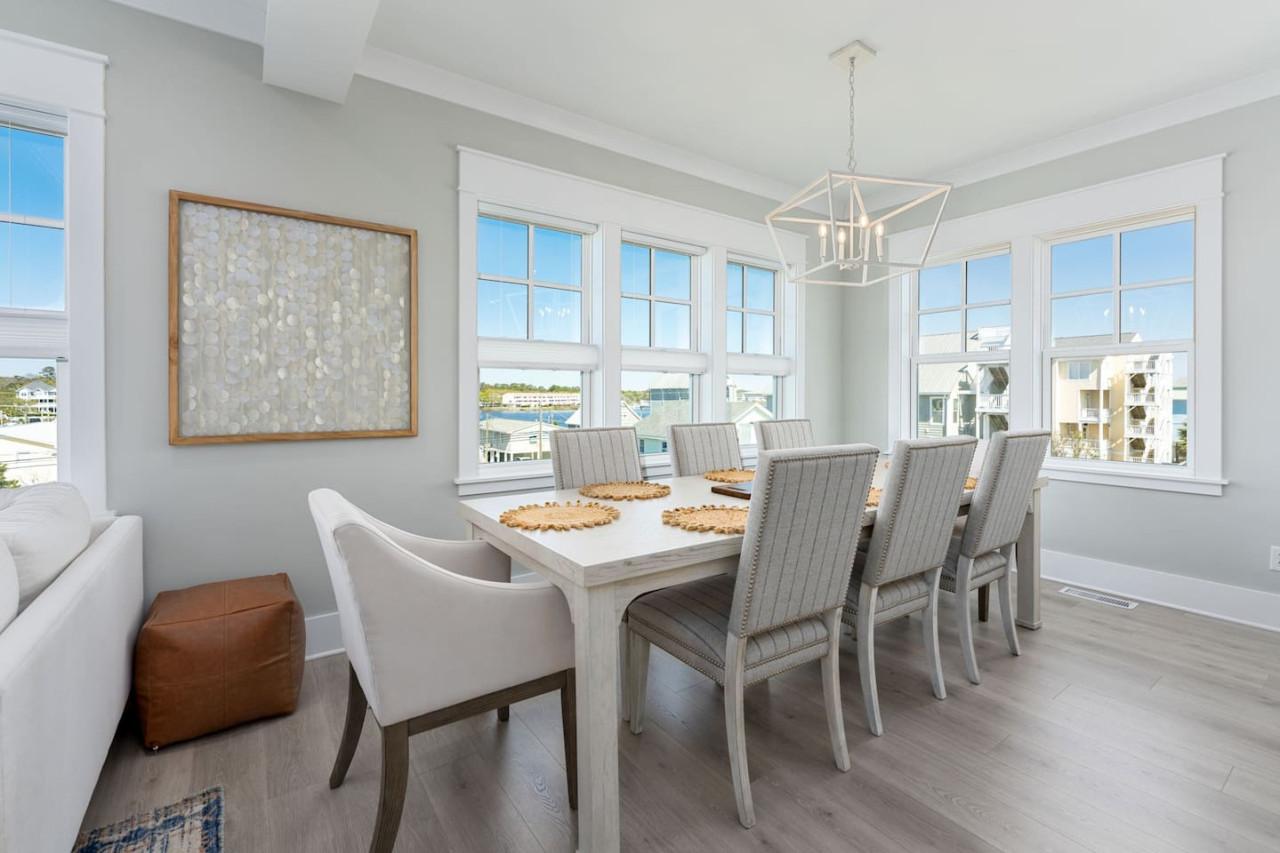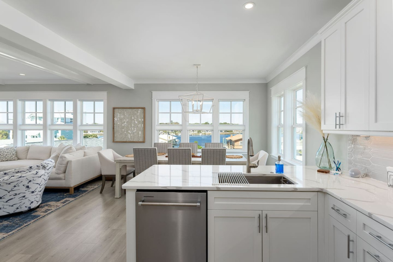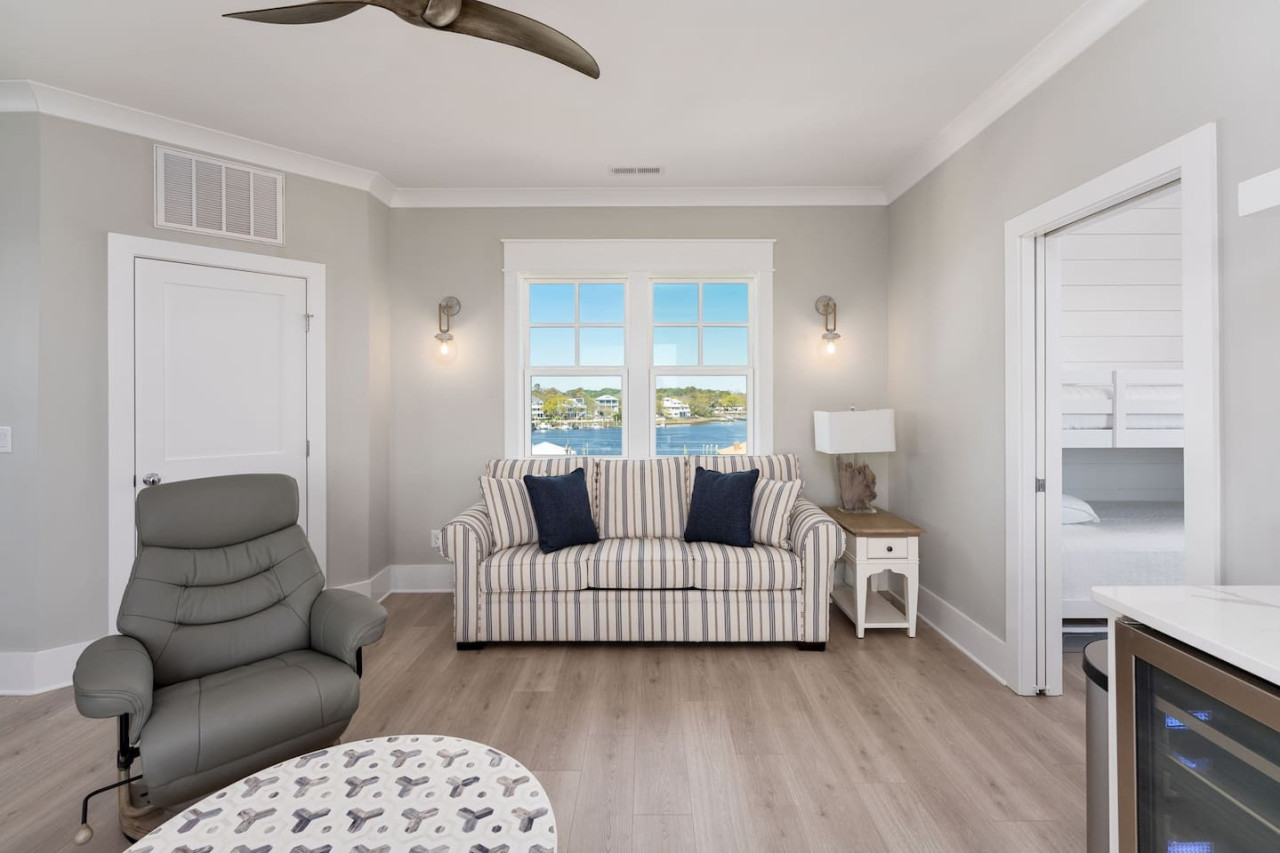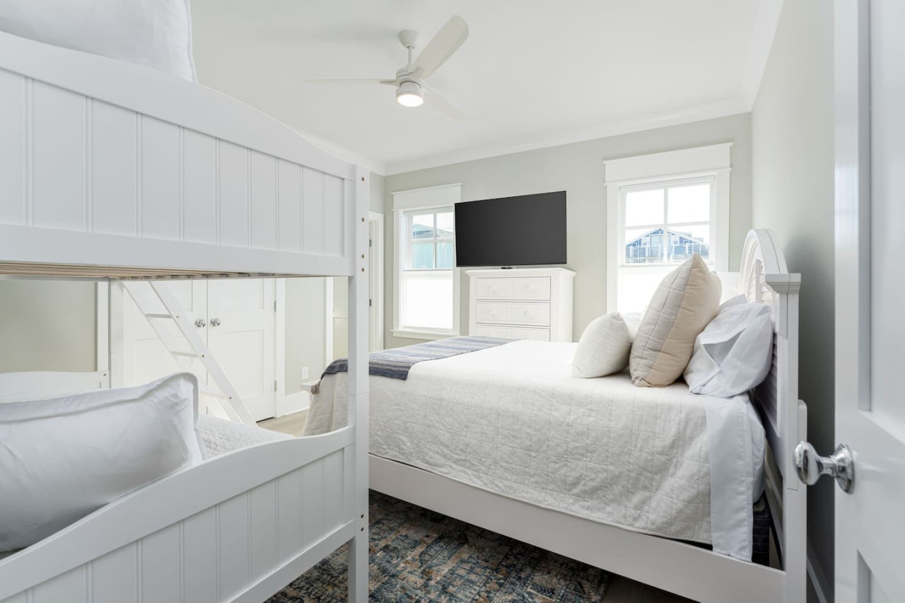 / nightExperience coastal living at its finest in our brand-new, architecturally designed home located just a short walk from the pristine beaches of Carolina Beach. With 4 spacious bedrooms, 4.5 luxurious bathrooms, and a light-filled, modern interior, our home offers the perfect blend of comfort, style, and convenience for your next beach getaway. KEY FEATURES: ➝ New Construction Home ➝ Elevator for access to ALL levels of the home ➝ 2 Master Suites w/ Private Attached Bathroom ➝ 4 Total Comfortable Bedrooms; 2 King Beds, 1 Queen Bed, 4 Twin (2 bunk beds), 1 Queen Sleeper Sofa ➝ 4 Full Bathrooms, 1 Half Bathroom; Walk-in & Tub/Shower Combo Options ➝ Full Kitchen w/Stainless Steel Appliances ➝ High-Speed Wifi + TV in every bedroom ➝ Washer and Dryer ➝ Free parking + EV Charger ☆☆BEDROOMS☆☆ Our home comfortably sleeps up to 12 guests, making it ideal for families, groups of friends, or couples looking for a beach retreat. Each room comes with a complete set of linens and pillows, closet space, and Smart TV. Second Floor Bedrooms: ➝ Bedroom 1: 1 King Bed (Private Bathroom) ➝ Bedroom 2: 1 Queen Bed, 1 Bunk Bed (Private Bathroom) Third Floor Bedrooms: ➝ Bedroom 3: 1 King Bed (Private Bathroom) Fourth Floor Bedrooms: ➝ Bedroom 4: 1 Bunk Bed, 1 Queen Sleeper Sofa in Common Space (Shared Hallway Bathroom) ☆☆BATHROOMS☆☆ Spend time freshening up after a day in the sun in the spa-like bathrooms. Each bathroom comes equipped with shampoo, conditioner, and body wash so you don't have to worry about bringing your own. ➝ Second Floor Bathrooms: 2 Full Bathrooms Attached to Bedrooms ➝ Third Floor Bathrooms: 1 Full Bathroom Attached to Bedroom, 1 Half Bath in Hallway ➝ Fourth Floor Bathrooms: 1 Full Bathroom in Hallway ☆☆MAIN KITCHEN & LIVING ROOM☆☆ Step into the heart of our stunning beach home and discover a kitchen that seamlessly blends elegance with functionality. Designed with the traveler in mind, our open-concept kitchen boasts a contemporary aesthetic, featuring sleek stainless steel appliances, pristine countertops, and custom cabinetry that exudes luxury and sophistication. A dining area perfect for gathering is equipped with countertop seating for 4, and a large dining table with seating for 8. The simplistic lounge features a comfy sofa with two additional chairs, and large Smart TV, making it the go-to room to gather with your group and enjoy some quality time together. ➝ Dishwasher with detergent provided ➝ Coffee, tea, and basic pantry staples ➝ High-quality cutlery and dinnerware ➝ Wine glasses and bar accessories ➝ Cleaning supplies and trash bags ☆☆SECONDARY KITCHEN & LIVING ROOM☆☆ The top floor of this home is the perfect space to utilize for great views out the balcony doors, gathering with your group, or using the kitchenette to pour your next glass of wine during sunset. This space allows for additional room to spread out your group in the home! Not to mention what comes when you step outside the doors to the balcony… ☆☆OUTSIDE SPACE☆☆ Prepare to take in ultimate bliss when you step onto the fourth floor balcony! This space has seating for your entire group, to sit watching the sunrise with your coffee, or utilize the wet bar for pouring a cocktail during sunset. The breeze and salty smells, matched with the ocean views are a moment to soak in. On the ground level of the home, guests are equipped with parking for up to 3 cars comfortably (4 is a tight squeeze!), an outdoor shower, and a gas grill for cooking. This tranquil coastal home provides convenient beach access in a prime location. The community offers a welcoming ambiance with various recreational opportunities such as fishing and kayaking. Surrounding amenities and attractions enhance the relaxed coastal living experience, making it a perfect choice for a relaxing beach getaway. There is enough space for 3 cars to park at the home. Parking is directly underneath the home and a few extra spaces out front. There are many bike rentals and many restaurants, shops, and local bars are in close driving or biking distance!