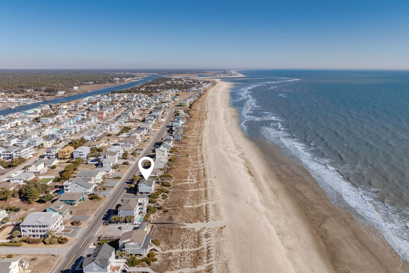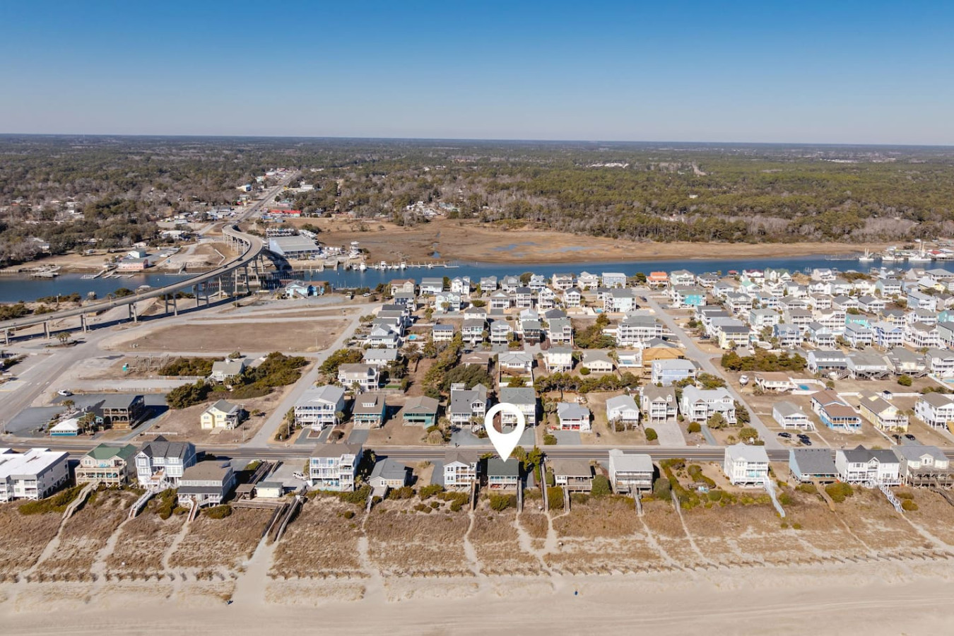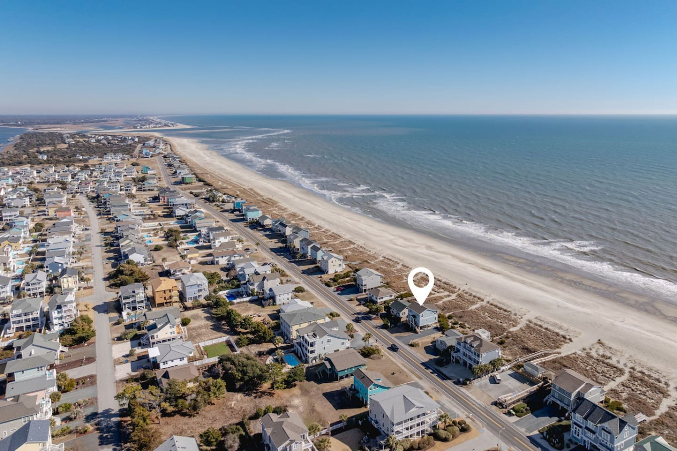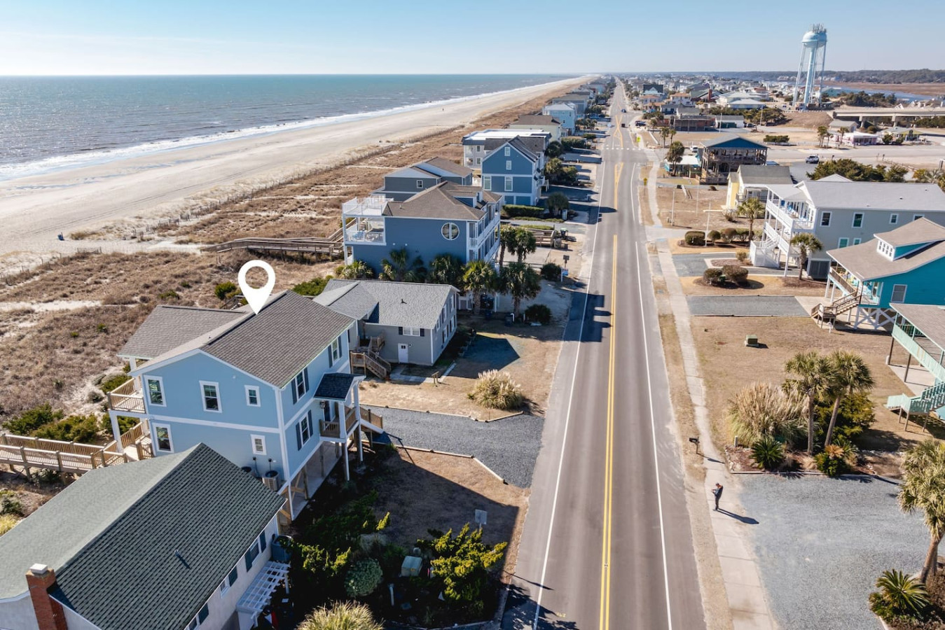 / nightWelcome to this newly renovated, oceanfront retreat with private beach access in Holden Beach! Enjoy breathtaking ocean views from every window in the bright and airy living, dining, and beautifully tiled kitchen. This 4BR/3BA home sleeps 10 with 6 beds, featuring 2 walk-in showers and a shower/tub combo. This home is the ultimate oasis, perfect for families or groups seeking serenity and the most beautiful sunrises and sunsets by the sea. You won't ever want to leave! KEY FEATURES: ➝ Fully Renovated Oceanfront Home w/Spacious Open Floor Plan ➝ 4 Bedrooms, 3 Full Bathrooms ➝ Full Kitchen w/Stainless Steel Appliances ➝ High-speed wifi + TV in Bedroom ➝ In-Unit Washer & Dryer ➝ Free, Designated Driveway and Parking ☆☆BEDROOMS☆☆ ➝ Bedroom 1: 1 King Bed + 1 Single Bed (1st Floor) ➝ Bedroom 2: 1 Queen Bed + 1 Single Bed (1st Floor) ➝ Bedroom 3: 1 Queen Bed (1st Floor) ➝ Bedroom 4: 1 Queen Bed (2nd Floor) ☆☆BATHROOMS☆☆ ➝ 1 Full Bathroom Ensuite- Walk-In Shower (1st Floor) ➝ 1 Full Bathroom- Shower/Tub Combo (1st Floor) ➝ 1 Full Bathroom Ensuite- Walk-In Shower (2nd Floor) ☆☆KITCHEN & LIVING ROOM☆☆ This kitchen is equipped with top-of-the-line appliances to inspire culinary creativity. Generous granite countertops and an expansive kitchen island with high-end, coastal bar seating provides ample room for meal preparation. Take your pick of coffee with a drip and Keurig coffee bar stocked for your morning delight to ensure your stay is similar to an at-home experience. The open floor plan creates a seamless flow from dining to living space and with streaming services provided from your favorite apps, cozy up after a sun-kissed day for a movie night. ☆☆OUTSIDE SPACE☆☆ The front balcony provides the perfect setting for you and your guest to enjoy beautiful ocean view sunrises with your morning coffee or even an afternoon glass of wine while chatting, taking in the breeze and sunsets, or people watching! The driveway and carport space offers storage space where you'll find 10 complimentary beach chairs, 2 rafts, 1 boogie board, and 1 sun cover for those long beach days! Next to the storage room, you'll find the outdoor shower perfect for rinsing off sandy feet and salty hair. HOME DISTANCE IN MILES FROM: Make sure to balance the chill time with a bit of thrill! Here are some activities, attractions & things to do in the area. ➝ Ocean Boulevard Coffee: 0.3 miles ➝ Castaway's Raw Bar & Grill: 0.2 miles ➝ Holden Beach Water Sports: 3 miles ➝ Treasure Island Miniature Golf: 0.8 miles ➝ Ingram Planetarium: 20 miles ➝ Museum of Coastal Carolina: 18 miles ➝ Myrtle Beach Int'l Airport (MYR): 55 miles ➝ Carolina Beach: 15 miles Guests will have access to the entire home, driveway, and carport during their stay and all amenities listed for use. Entry is via keypad using the unique door code provided in your check-in message sent 2 days prior to check-in. Send a message if you need anything during your stay! With quick response time, we are here to make your stay seamless and enjoyable! Upon your arrival, we offer essential items like hand soap, dish soap, toilet paper, paper towels, and trash bags to start you off. For longer stays, kindly prepare to replenish these supplies according to your personal requirements. We ask that you take care of the home as if it were your own. We hope to provide a great space for all guests to unwind and relax during their time here!