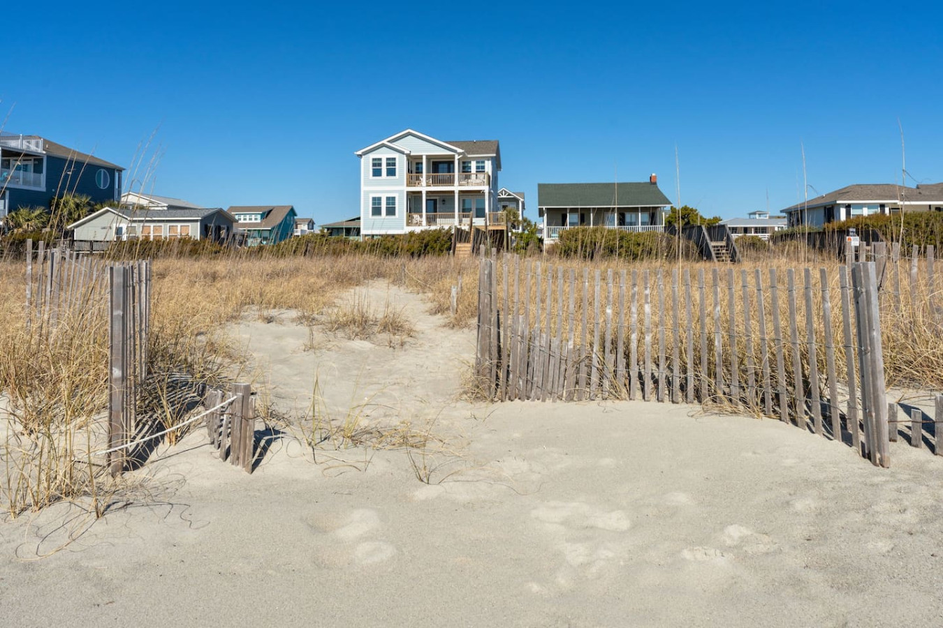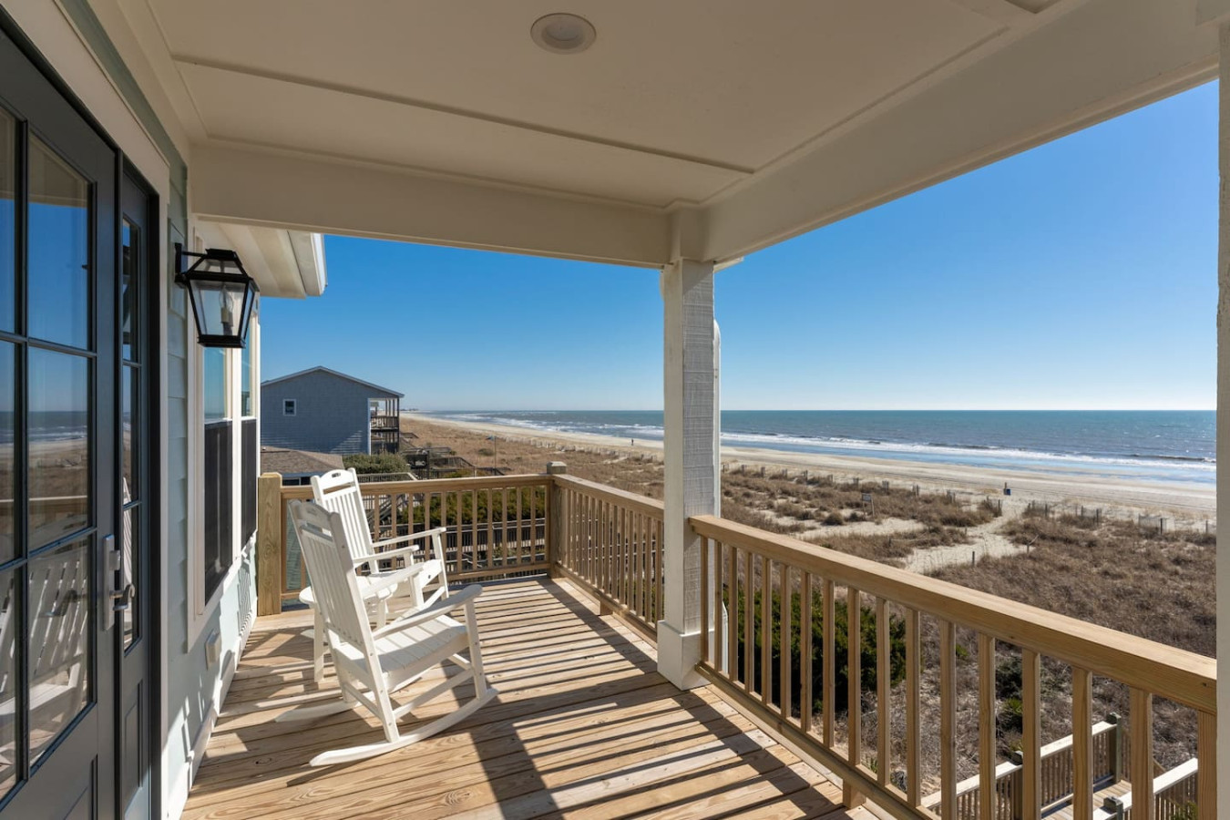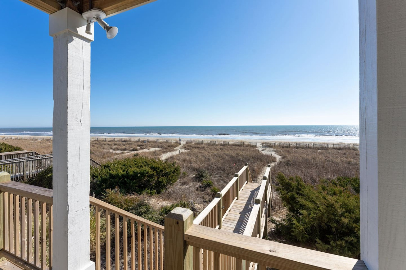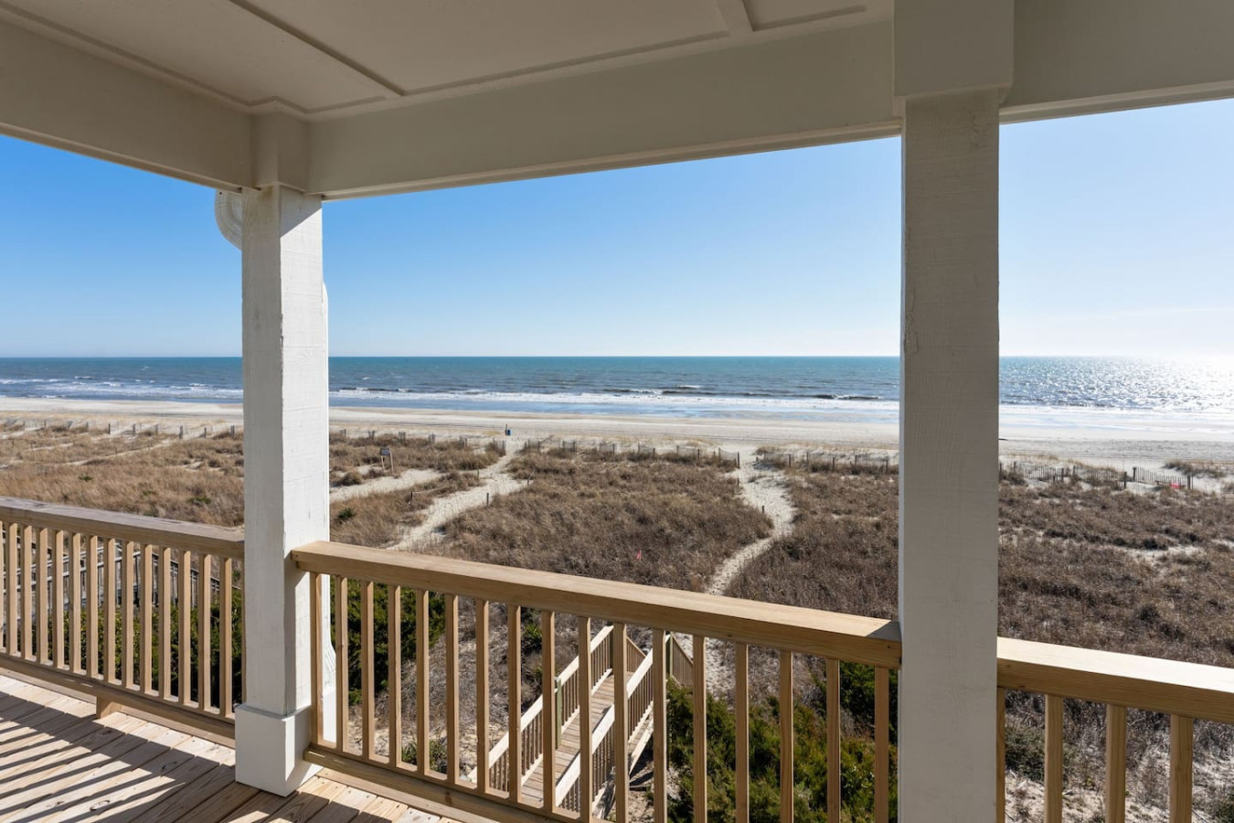 / nightWelcome to this newly renovated, oceanfront retreat with private beach access in Holden Beach! Enjoy breathtaking ocean views from every window in the bright and airy living, dining, and beautifully tiled kitchen. This 4BR/3BA home sleeps 10 with 6 beds, featuring 2 walk-in showers and a shower/tub combo. This home is the ultimate oasis, perfect for families or groups seeking serenity and the most beautiful sunrises and sunsets by the sea. You won't ever want to leave! KEY FEATURES: ➝ Fully Renovated Oceanfront Home w/Spacious Open Floor Plan ➝ 4 Bedrooms, 3 Full Bathrooms ➝ Full Kitchen w/Stainless Steel Appliances ➝ High-speed wifi + TV in Bedroom ➝ In-Unit Washer & Dryer ➝ Free, Designated Driveway and Parking ☆☆BEDROOMS☆☆ ➝ Bedroom 1: 1 King Bed + 1 Single Bed (1st Floor) ➝ Bedroom 2: 1 Queen Bed + 1 Single Bed (1st Floor) ➝ Bedroom 3: 1 Queen Bed (1st Floor) ➝ Bedroom 4: 1 Queen Bed (2nd Floor) ☆☆BATHROOMS☆☆ ➝ 1 Full Bathroom Ensuite- Walk-In Shower (1st Floor) ➝ 1 Full Bathroom- Shower/Tub Combo (1st Floor) ➝ 1 Full Bathroom Ensuite- Walk-In Shower (2nd Floor) ☆☆KITCHEN & LIVING ROOM☆☆ This kitchen is equipped with top-of-the-line appliances to inspire culinary creativity. Generous granite countertops and an expansive kitchen island with high-end, coastal bar seating provides ample room for meal preparation. Take your pick of coffee with a drip and Keurig coffee bar stocked for your morning delight to ensure your stay is similar to an at-home experience. The open floor plan creates a seamless flow from dining to living space and with streaming services provided from your favorite apps, cozy up after a sun-kissed day for a movie night. ☆☆OUTSIDE SPACE☆☆ The front balcony provides the perfect setting for you and your guest to enjoy beautiful ocean view sunrises with your morning coffee or even an afternoon glass of wine while chatting, taking in the breeze and sunsets, or people watching! The driveway and carport space offers storage space where you'll find 10 complimentary beach chairs, 2 rafts, 1 boogie board, and 1 sun cover for those long beach days! Next to the storage room, you'll find the outdoor shower perfect for rinsing off sandy feet and salty hair. HOME DISTANCE IN MILES FROM: Make sure to balance the chill time with a bit of thrill! Here are some activities, attractions & things to do in the area. ➝ Ocean Boulevard Coffee: 0.3 miles ➝ Castaway's Raw Bar & Grill: 0.2 miles ➝ Holden Beach Water Sports: 3 miles ➝ Treasure Island Miniature Golf: 0.8 miles ➝ Ingram Planetarium: 20 miles ➝ Museum of Coastal Carolina: 18 miles ➝ Myrtle Beach Int'l Airport (MYR): 55 miles ➝ Carolina Beach: 15 miles Guests will have access to the entire home, driveway, and carport during their stay and all amenities listed for use. Entry is via keypad using the unique door code provided in your check-in message sent 2 days prior to check-in. Send a message if you need anything during your stay! With quick response time, we are here to make your stay seamless and enjoyable! Upon your arrival, we offer essential items like hand soap, dish soap, toilet paper, paper towels, and trash bags to start you off. For longer stays, kindly prepare to replenish these supplies according to your personal requirements. We ask that you take care of the home as if it were your own. We hope to provide a great space for all guests to unwind and relax during their time here!