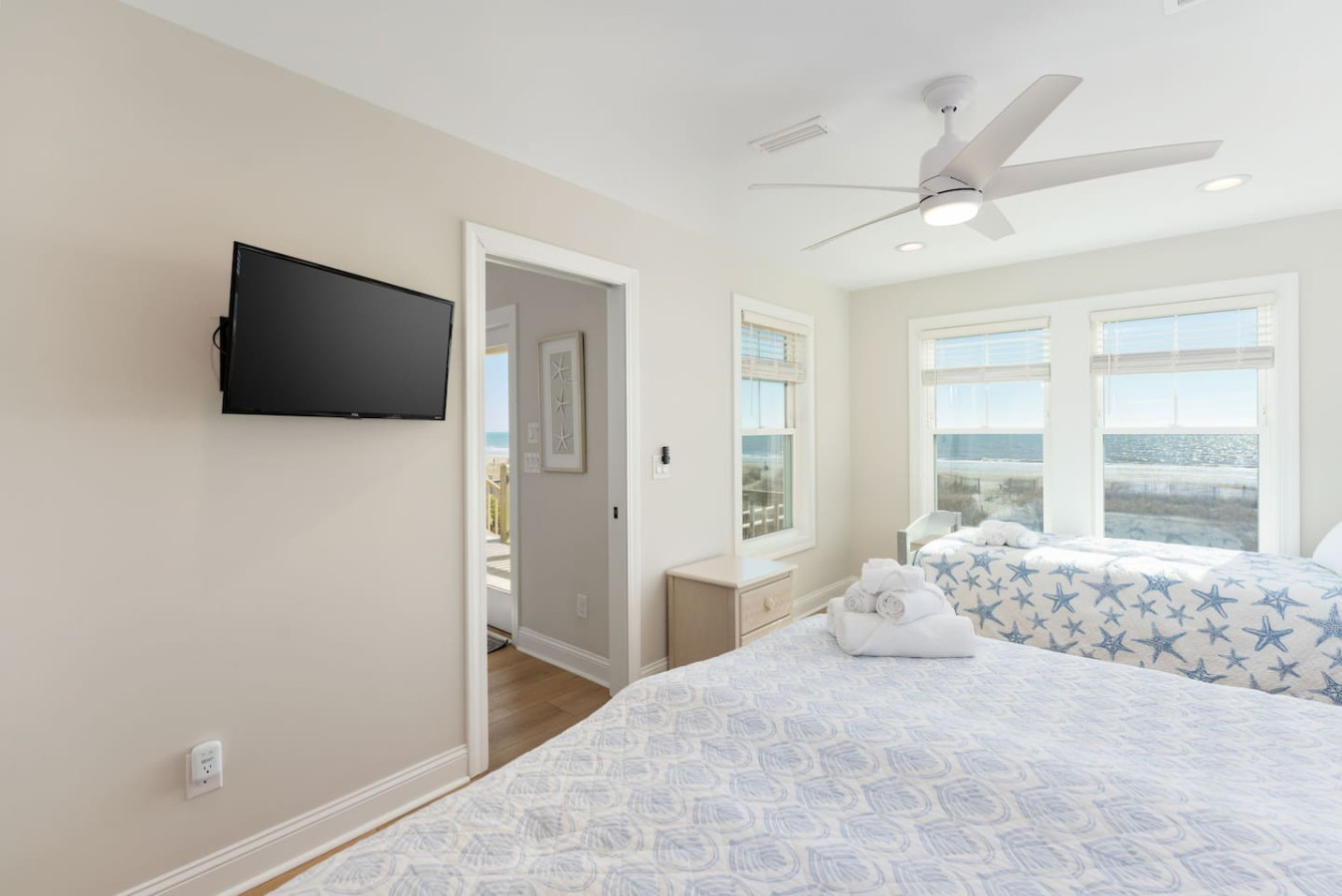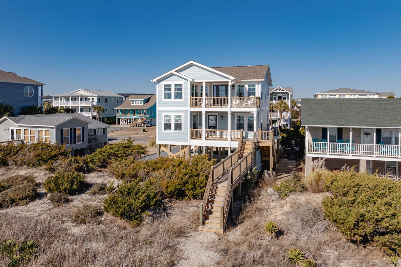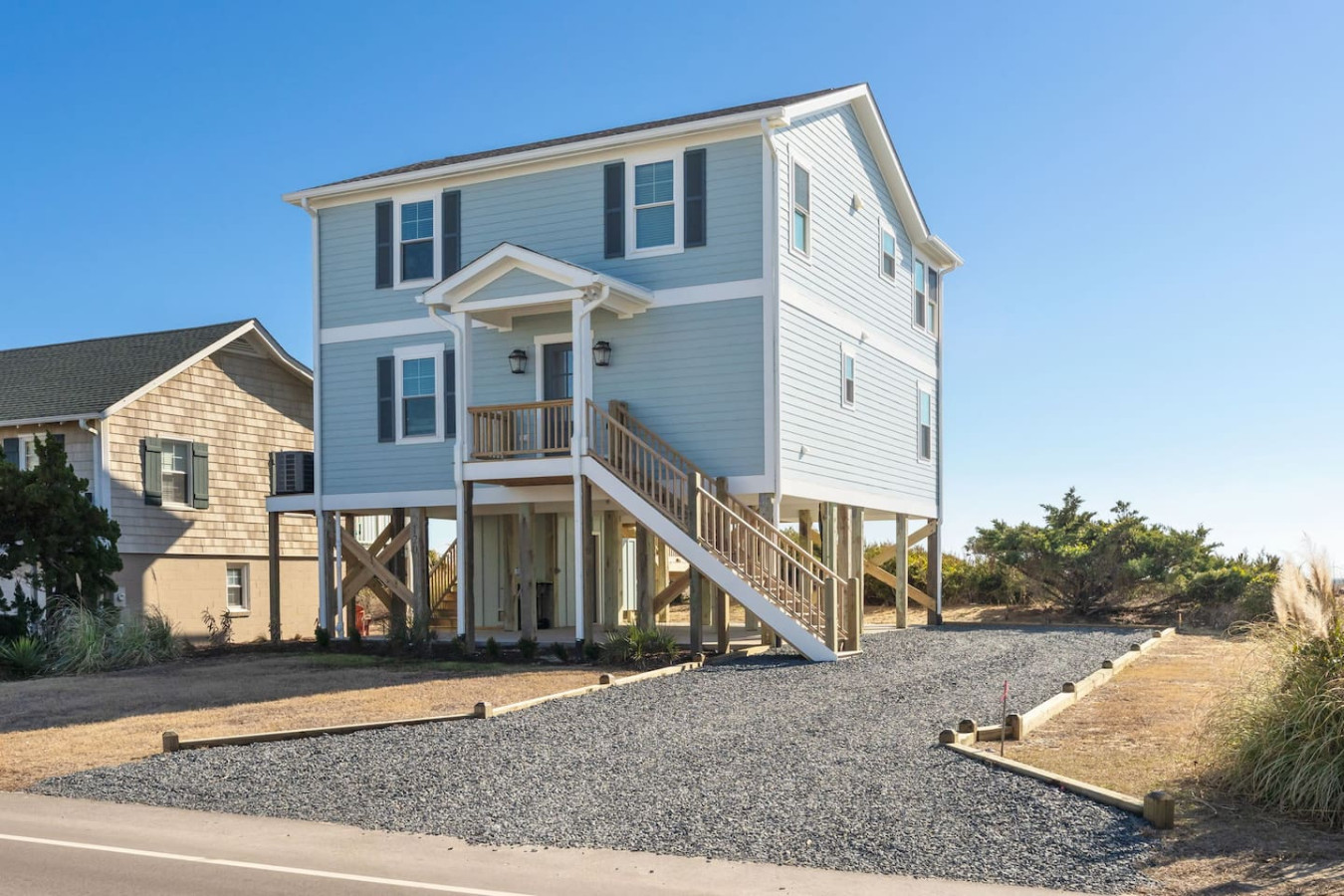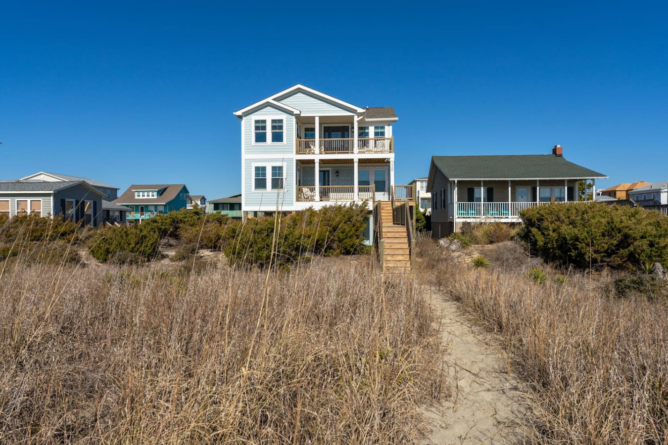/ nightWelcome to this newly renovated, oceanfront retreat with private beach access in Holden Beach! Enjoy breathtaking ocean views from every window in the bright and airy living, dining, and beautifully tiled kitchen. This 4BR/3BA home sleeps 10 with 6 beds, featuring 2 walk-in showers and a shower/tub combo. This home is the ultimate oasis, perfect for families or groups seeking serenity and the most beautiful sunrises and sunsets by the sea. You won't ever want to leave! KEY FEATURES: ➝ Fully Renovated Oceanfront Home w/Spacious Open Floor Plan ➝ 4 Bedrooms, 3 Full Bathrooms ➝ Full Kitchen w/Stainless Steel Appliances ➝ High-speed wifi + TV in Bedroom ➝ In-Unit Washer & Dryer ➝ Free, Designated Driveway and Parking ☆☆BEDROOMS☆☆ ➝ Bedroom 1: 1 King Bed + 1 Single Bed (1st Floor) ➝ Bedroom 2: 1 Queen Bed + 1 Single Bed (1st Floor) ➝ Bedroom 3: 1 Queen Bed (1st Floor) ➝ Bedroom 4: 1 Queen Bed (2nd Floor) ☆☆BATHROOMS☆☆ ➝ 1 Full Bathroom Ensuite- Walk-In Shower (1st Floor) ➝ 1 Full Bathroom- Shower/Tub Combo (1st Floor) ➝ 1 Full Bathroom Ensuite- Walk-In Shower (2nd Floor) ☆☆KITCHEN & LIVING ROOM☆☆ This kitchen is equipped with top-of-the-line appliances to inspire culinary creativity. Generous granite countertops and an expansive kitchen island with high-end, coastal bar seating provides ample room for meal preparation. Take your pick of coffee with a drip and Keurig coffee bar stocked for your morning delight to ensure your stay is similar to an at-home experience. The open floor plan creates a seamless flow from dining to living space and with streaming services provided from your favorite apps, cozy up after a sun-kissed day for a movie night. ☆☆OUTSIDE SPACE☆☆ The front balcony provides the perfect setting for you and your guest to enjoy beautiful ocean view sunrises with your morning coffee or even an afternoon glass of wine while chatting, taking in the breeze and sunsets, or people watching! The driveway and carport space offers storage space where you'll find 10 complimentary beach chairs, 2 rafts, 1 boogie board, and 1 sun cover for those long beach days! Next to the storage room, you'll find the outdoor shower perfect for rinsing off sandy feet and salty hair. HOME DISTANCE IN MILES FROM: Make sure to balance the chill time with a bit of thrill! Here are some activities, attractions & things to do in the area. ➝ Ocean Boulevard Coffee: 0.3 miles ➝ Castaway's Raw Bar & Grill: 0.2 miles ➝ Holden Beach Water Sports: 3 miles ➝ Treasure Island Miniature Golf: 0.8 miles ➝ Ingram Planetarium: 20 miles ➝ Museum of Coastal Carolina: 18 miles ➝ Myrtle Beach Int'l Airport (MYR): 55 miles ➝ Carolina Beach: 15 miles Guests will have access to the entire home, driveway, and carport during their stay and all amenities listed for use. Entry is via keypad using the unique door code provided in your check-in message sent 2 days prior to check-in. Send a message if you need anything during your stay! With quick response time, we are here to make your stay seamless and enjoyable! Upon your arrival, we offer essential items like hand soap, dish soap, toilet paper, paper towels, and trash bags to start you off. For longer stays, kindly prepare to replenish these supplies according to your personal requirements. We ask that you take care of the home as if it were your own. We hope to provide a great space for all guests to unwind and relax during their time here!