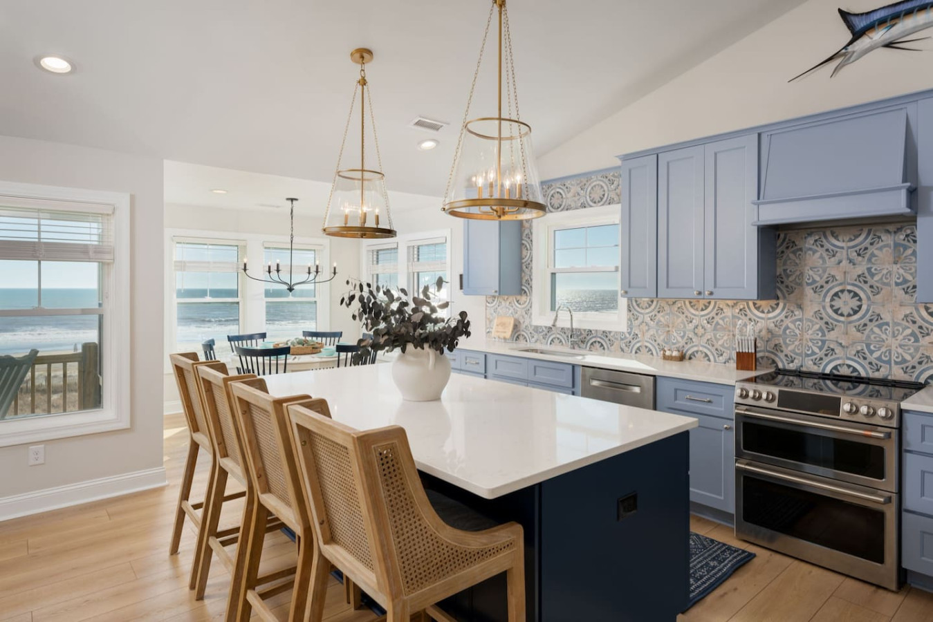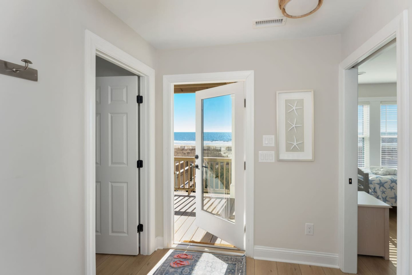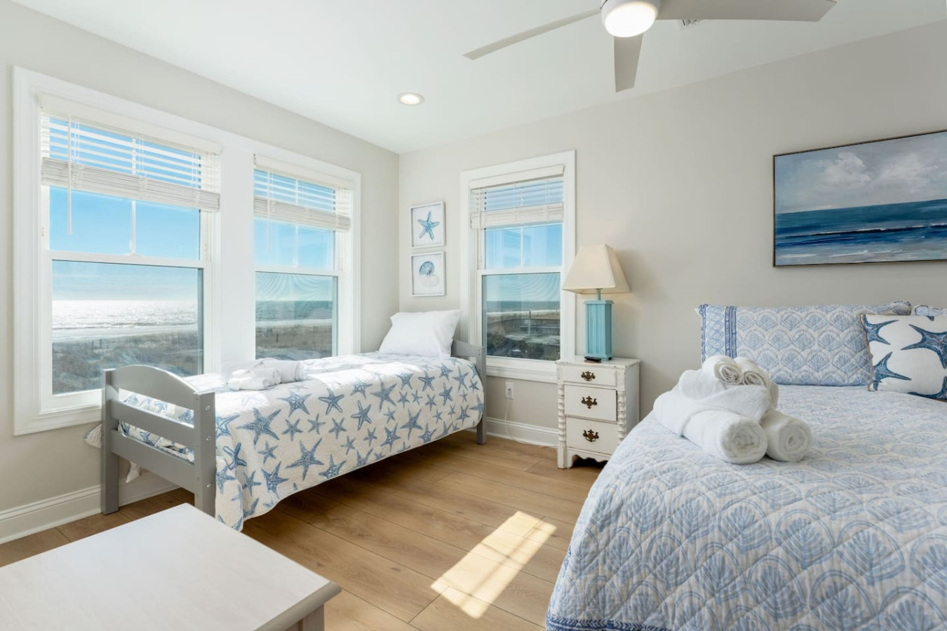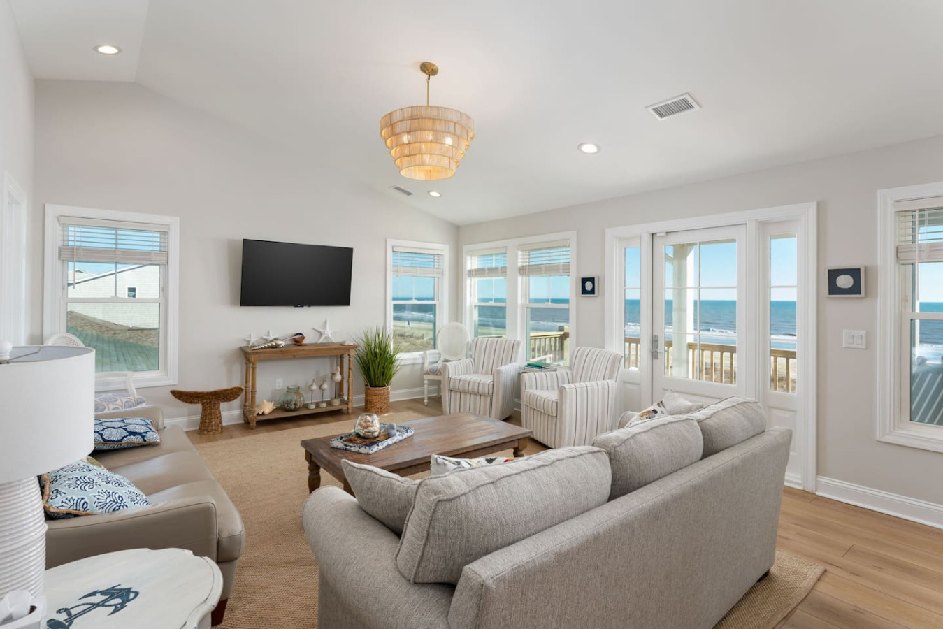 / nightWelcome to this newly renovated, oceanfront retreat with private beach access in Holden Beach! Enjoy breathtaking ocean views from every window in the bright and airy living, dining, and beautifully tiled kitchen. This 4BR/3BA home sleeps 10 with 6 beds, featuring 2 walk-in showers and a shower/tub combo. This home is the ultimate oasis, perfect for families or groups seeking serenity and the most beautiful sunrises and sunsets by the sea. You won't ever want to leave! KEY FEATURES: ➝ Fully Renovated Oceanfront Home w/Spacious Open Floor Plan ➝ 4 Bedrooms, 3 Full Bathrooms ➝ Full Kitchen w/Stainless Steel Appliances ➝ High-speed wifi + TV in Bedroom ➝ In-Unit Washer & Dryer ➝ Free, Designated Driveway and Parking ☆☆BEDROOMS☆☆ ➝ Bedroom 1: 1 King Bed + 1 Single Bed (1st Floor) ➝ Bedroom 2: 1 Queen Bed + 1 Single Bed (1st Floor) ➝ Bedroom 3: 1 Queen Bed (1st Floor) ➝ Bedroom 4: 1 Queen Bed (2nd Floor) ☆☆BATHROOMS☆☆ ➝ 1 Full Bathroom Ensuite- Walk-In Shower (1st Floor) ➝ 1 Full Bathroom- Shower/Tub Combo (1st Floor) ➝ 1 Full Bathroom Ensuite- Walk-In Shower (2nd Floor) ☆☆KITCHEN & LIVING ROOM☆☆ This kitchen is equipped with top-of-the-line appliances to inspire culinary creativity. Generous granite countertops and an expansive kitchen island with high-end, coastal bar seating provides ample room for meal preparation. Take your pick of coffee with a drip and Keurig coffee bar stocked for your morning delight to ensure your stay is similar to an at-home experience. The open floor plan creates a seamless flow from dining to living space and with streaming services provided from your favorite apps, cozy up after a sun-kissed day for a movie night. ☆☆OUTSIDE SPACE☆☆ The front balcony provides the perfect setting for you and your guest to enjoy beautiful ocean view sunrises with your morning coffee or even an afternoon glass of wine while chatting, taking in the breeze and sunsets, or people watching! The driveway and carport space offers storage space where you'll find 10 complimentary beach chairs, 2 rafts, 1 boogie board, and 1 sun cover for those long beach days! Next to the storage room, you'll find the outdoor shower perfect for rinsing off sandy feet and salty hair. HOME DISTANCE IN MILES FROM: Make sure to balance the chill time with a bit of thrill! Here are some activities, attractions & things to do in the area. ➝ Ocean Boulevard Coffee: 0.3 miles ➝ Castaway's Raw Bar & Grill: 0.2 miles ➝ Holden Beach Water Sports: 3 miles ➝ Treasure Island Miniature Golf: 0.8 miles ➝ Ingram Planetarium: 20 miles ➝ Museum of Coastal Carolina: 18 miles ➝ Myrtle Beach Int'l Airport (MYR): 55 miles ➝ Carolina Beach: 15 miles Guests will have access to the entire home, driveway, and carport during their stay and all amenities listed for use. Entry is via keypad using the unique door code provided in your check-in message sent 2 days prior to check-in. Send a message if you need anything during your stay! With quick response time, we are here to make your stay seamless and enjoyable! Upon your arrival, we offer essential items like hand soap, dish soap, toilet paper, paper towels, and trash bags to start you off. For longer stays, kindly prepare to replenish these supplies according to your personal requirements. We ask that you take care of the home as if it were your own. We hope to provide a great space for all guests to unwind and relax during their time here!
