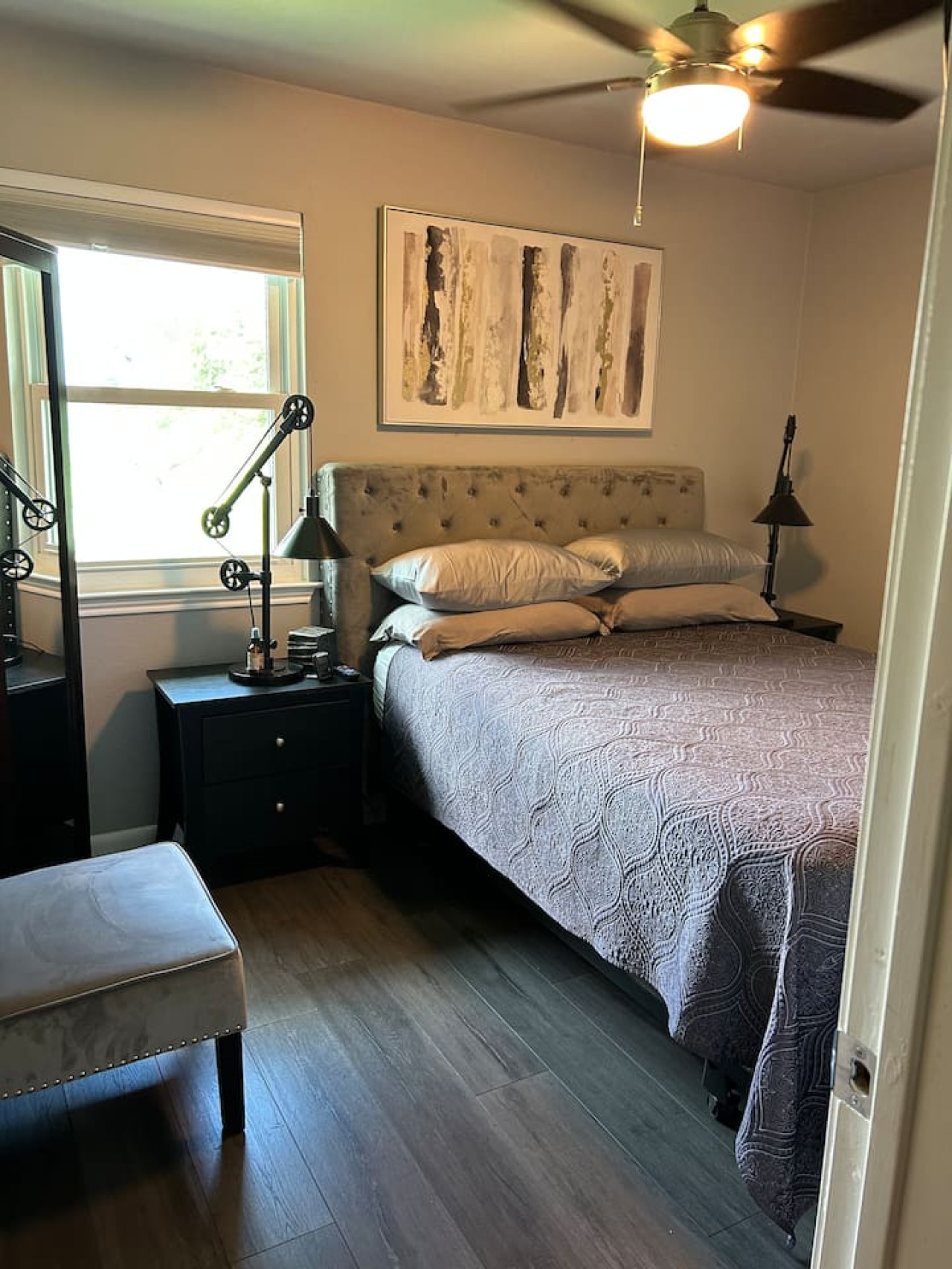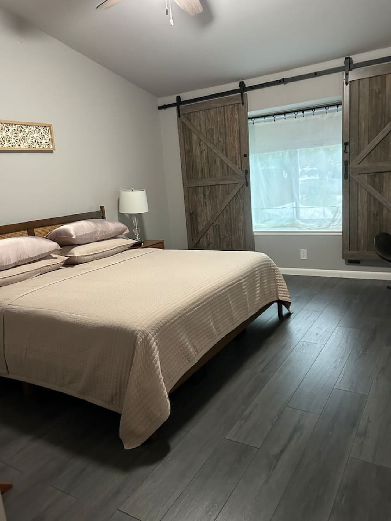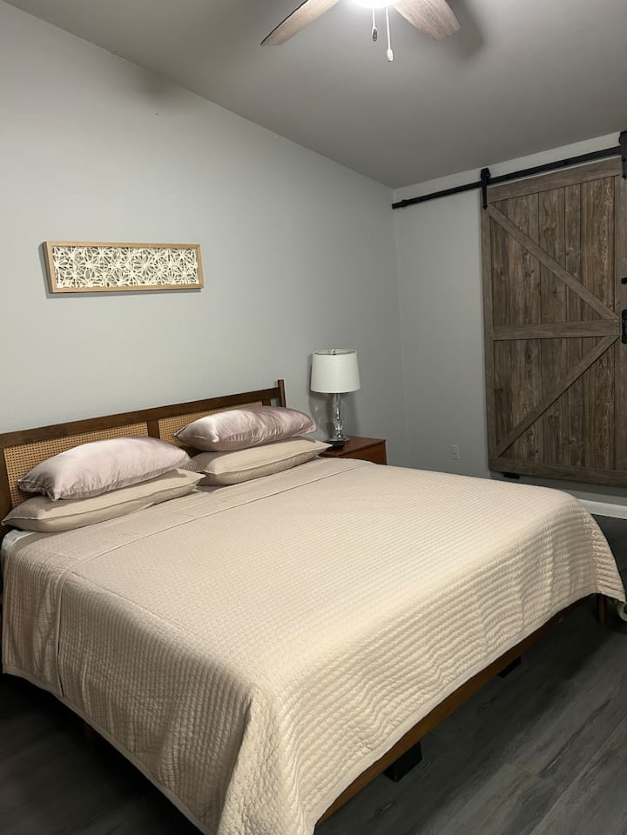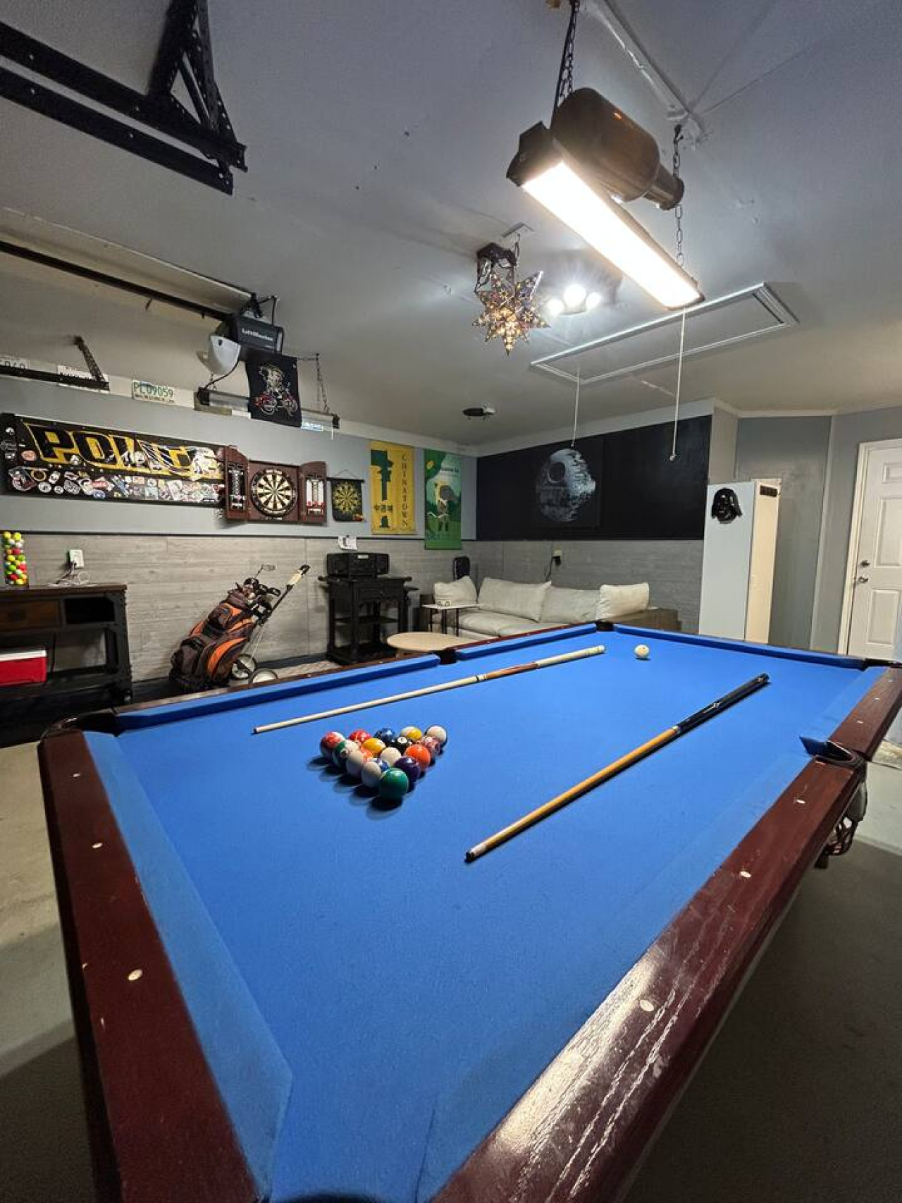 / nightWelcome to your inviting San Antonio home in a quiet neighborhood. This 2-bedroom, 2-bathroom retreat is designed for comfort and fun, featuring a pool table, family games, and a private outdoor dining area—perfect for relaxing or entertaining. ⭑CONTACT US FOR SEASONAL DISCOUNTS⭑ Please note: No pets are allowed. ⭑Master Bedroom:⭑ ✔ Comfortable King size bed with premium linens and extra pillows ✔ Room-darkening shades for restful sleep ✔ Two dressers for ample clothing storage ✔ Two closets with hangers ✔ Ceiling Fan ✔ En-suite Master bathroom ⭑Second Bedroom:⭑ ✔ Cozy Queen size bed with fresh linens and blankets ✔ Room-darkening shades ✔ Ceiling Fan ✔ Closet with hangers ✔ Dresser for ample clothing storage ✔ Smart TV with streaming platform access ⭑Living Room:⭑ ✔ Smart TV with streaming platform access ✔ Books for entertainment ✔ Board games for family fun ✔ Comfortable seating and stylish décor ✔ Access to the Deck with views of the Golf Course ⭑Kitchen and Dining Area:⭑ ✔ Fully equipped kitchen: refrigerator, freezer, stove, oven, microwave, dishwasher ✔ Cooking basics: pots, pans, oil, salt, pepper ✔ Coffee maker, toaster, blender, wine glasses, baking sheet ✔ Dining table for shared meals ✔ Dishes, silverware, and all essentials ⭑Bathrooms:⭑ ✔ Master en-suite has a Shower ✔ Shared bathroom has a Bathtub ✔ Hair dryer, shampoo, conditioner, body soap ✔ Fresh towels and cleaning products ⭑Outdoor Space:⭑ ✔ Outdoor seating area with views overlooking the Golf Course ✔ BBQ grill ✔ Private entrance and separate street/building access ⭑Additional Amenities:⭑ ✔ Washer and dryer ✔ Essentials kit: towels, bed sheets, soap, toilet paper ✔ Extra pillows and blankets ✔ Portable fan ⭑Safety and Security:⭑ ✔ Exterior Ring cameras (front door and above garage, outside only) ✔ Smoke alarm and fire extinguisher ⭑Entertainment and Connectivity:⭑ ✔ Game room with Pool table and mini fridge ✔ Smart TVs, books, and board games ✔ High-speed Wi-Fi ✔ Dedicated workspace ⭑Heating and Cooling:⭑ ✔ Air conditioning, portable fan, and heating ⭑Parking and Facilities:⭑ ✔ Free parking on premises (2 vehicles) ✔ Free street parking ⭑Services:⭑ ✔ Self-check-in and cleaning products provided Your stay at Putting Green Retreat promises relaxing comfort, family-friendly convenience, and a memorable San Antonio experience. Book now and enjoy your Texas getaway in style! ⭑Conclusion⭑ Don’t miss out—reserve your dates today and make the most of your San Antonio adventure! *Point of Interest* 🏌️ Green Acres Golf & Games – ~8 min / ~4 mi ⛳ McClain Disc Golf Course – ~ 5 min / 2 mi ⛳ PopStroke San Antonio – ~12 min / ~6 mi 🎳 AR’s Entertainment Hub – ~15 min / ~7 mi 🏞️ Dwight D. Eisenhower Park – ~20 min / ~10 mi 🌿 Brackenridge Park – ~25 min / ~12 mi 🎡 SeaWorld San Antonio – ~35 min / ~20 mi 🖼️ San Antonio Museum of Art – ~25 min / ~12 mi 🎭 Tobin Center for the Performing Arts – ~25 min / ~12 mi 🛍️ North Star Mall – ~10 min / ~5 mi 🍔 Full Belly Cafe & Bar (Sonterra) – ~15 min / ~8 mi 🥂 Whiskey Cake Kitchen & Bar – ~15 min / ~8 mi 🍕 Via 313 Pizza – ~15 min / ~8 mi 🌺 Japanese Tea Garden – ~25 min / ~13 mi 🌊 San Antonio River Walk – ~30 min / ~15 mi 🥏 Topgolf San Antonio – ~15 min / ~9 mi 🎯 Holey Moley Golf Club – ~25 min / ~13 mi 🎢 Natural Bridge Caverns – ~35 min / ~20 mi 📚 McNay Art Museum – ~30 min / ~16 mi 🍖 Texas-style BBQ & Local Dining NW – ~10 min / ~5 mi 🛌 Historic Missions National Historical Park – ~30 min / ~16 mi You’ll have full access to the entire home during your stay—every bedroom, bathroom, the fully equipped kitchen, cozy living areas, fun game room, relaxing balcony, and inviting outdoor spaces are all yours to enjoy. Feel free to make yourself completely at home! Guests may contact us through the Airbnb app at any time. We are available to assist with any questions or concerns throughout your stay. Other Details to Note: This is a peaceful neighborhood and we kindly ask guests to respect quiet hours. No parties or events are allowed. The home accommodates a maximum of 2 guests. Smoking is not permitted inside. For safety, exterior Ring cameras are installed at the front, back doors and garage entrance.