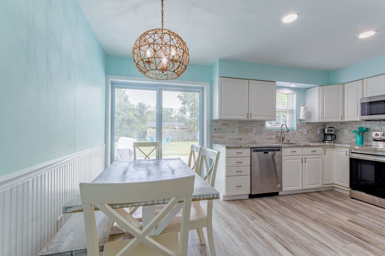 / nightWelcome to the Coastal Paradise - a beautifully furnished home designed for both short getaways and longer stays. Located in the quiet Silver Lake neighborhood, you will be just 15 minutes from Carolina & Kure Beach and minutes away from other popular attractions. This home is sure to provide the perfect mix of privacy and peacefulness and a great time as well. Whether you’re here for work, relocation, or time at the beach, we offer flexible booking options and excellent long-term rates. Inside, enjoy a fully stocked kitchen for easy meals at home, plus a comfy living room with a Roku TV and selection of games and entertainment for relaxing nights in. Step outside to a large, fully fenced backyard — perfect for dogs to run and play, kids to burn off energy, or simply unwinding with a morning coffee. In the evenings, gather around the fire pit or relax on the patio for a peaceful night under the stars. After a full day of exploring Wilmington, settle into one of the four comfortable bedrooms, each thoughtfully styled and ideal for families, friends, or extended stays. Traveling with little ones? A travel crib and noise machine are available. The home includes 1 full bathroom with a shower/tub combo and rain shower head, plus a half bathroom connected to one bedroom for added privacy and convenience. You will have exclusive access to the entire home and property including 4 bedrooms, 1.5 bathrooms, kitchen, dining, and living space, laundry room, a large fenced-in backyard, back and a paved driveway offering space for 3 vehicles. Don't hesitate to reach out if you have any concerns or questions. I will do my best to respond ASAP. There is staff available to assist should any issues arise. This home is located in Monkey Junction; a quiet & beautiful residential neighborhood that is only a short drive to many popular attractions. Guests have access to free private parking available on-site, in the driveway only (3 vehicles). You will be close to everything when you stay at this centrally-located home. 15 minute drive to Carolina Beach 18 minute drive to Kure Beach 25 minute drive to Wrightsville Beach. 20 minute drive to historic downtown Wilmington and the Riverfront where aside from the beautiful Riverfront walkway, you'll find a big selection of restaurants, bars, breweries and shops. 25 minute drive to Wilmington International Airport (ILM) 5 minute drive to Walmart in case you need to pick up an item that you forgot to pack. *Any booking that are 28 days + will need to go through our short onboarding process which includes signing a lease agreement which will be sent to you via email as well as completing a background check. We reserve the right to deny your booking if your application doesn't meet our criteria. **For your safety, there are 2 security cameras on this property. One at the front of the house and one in the back.