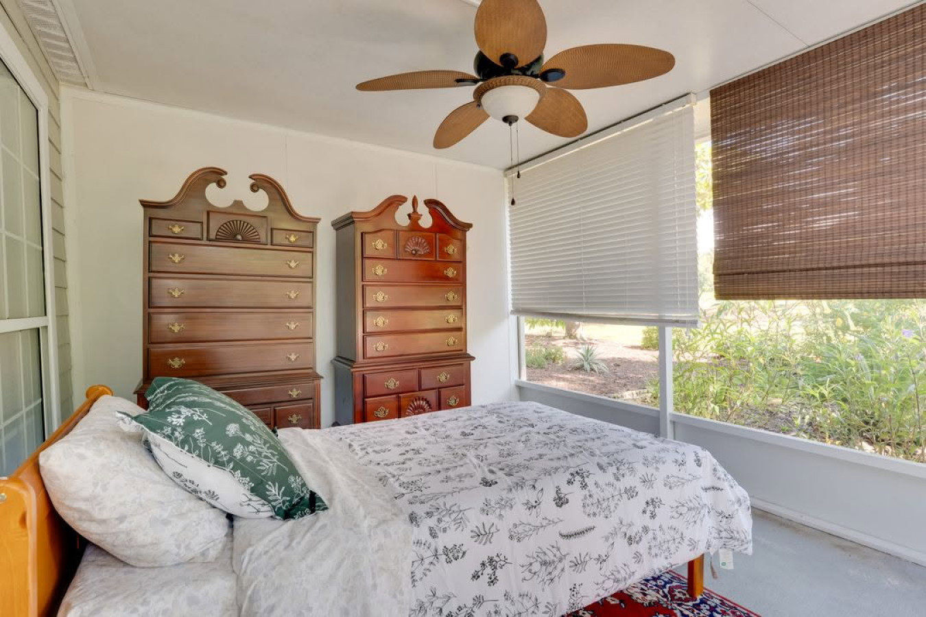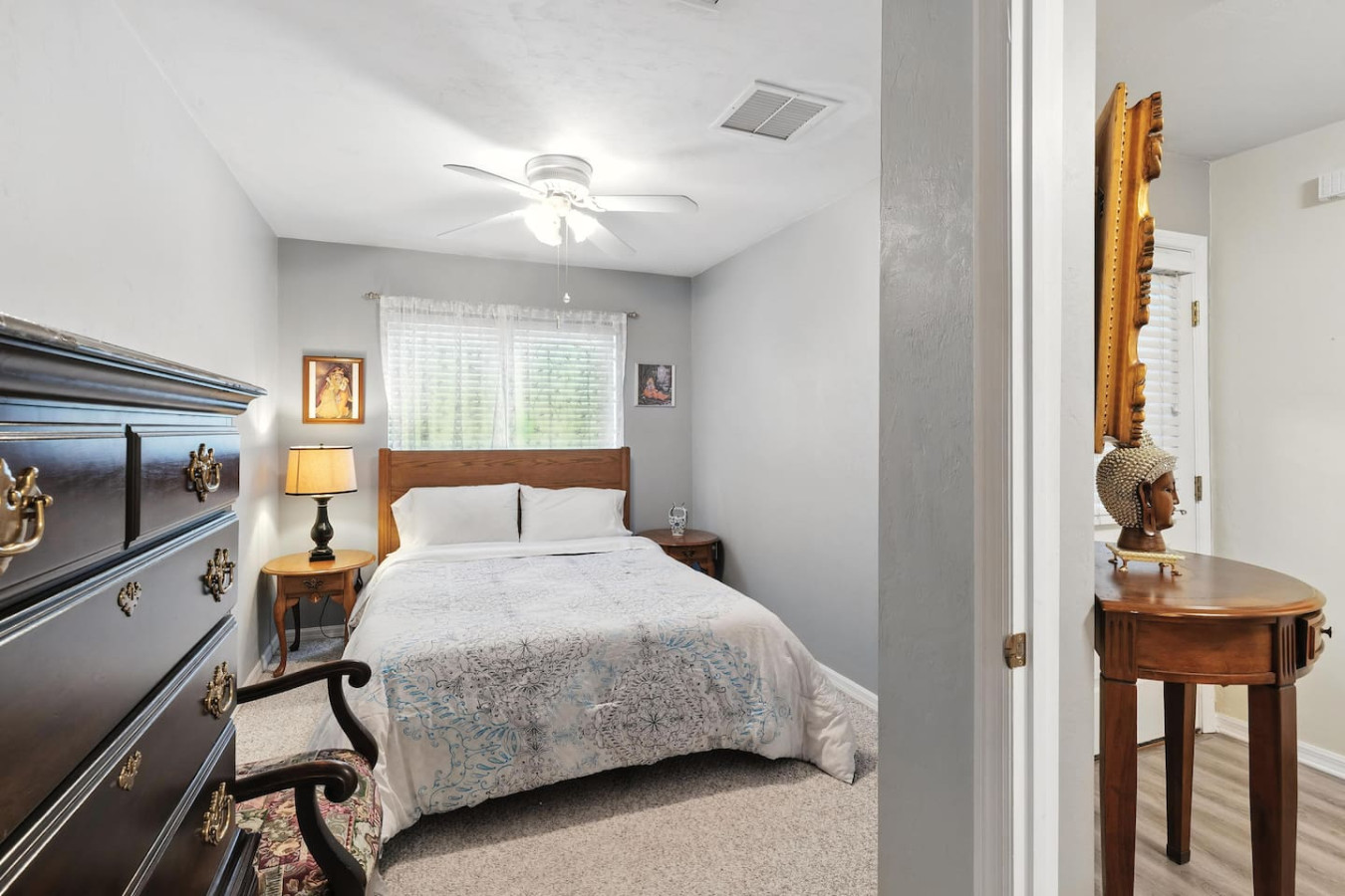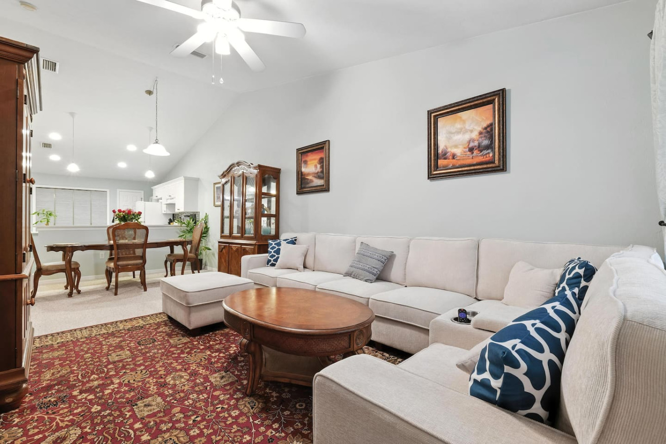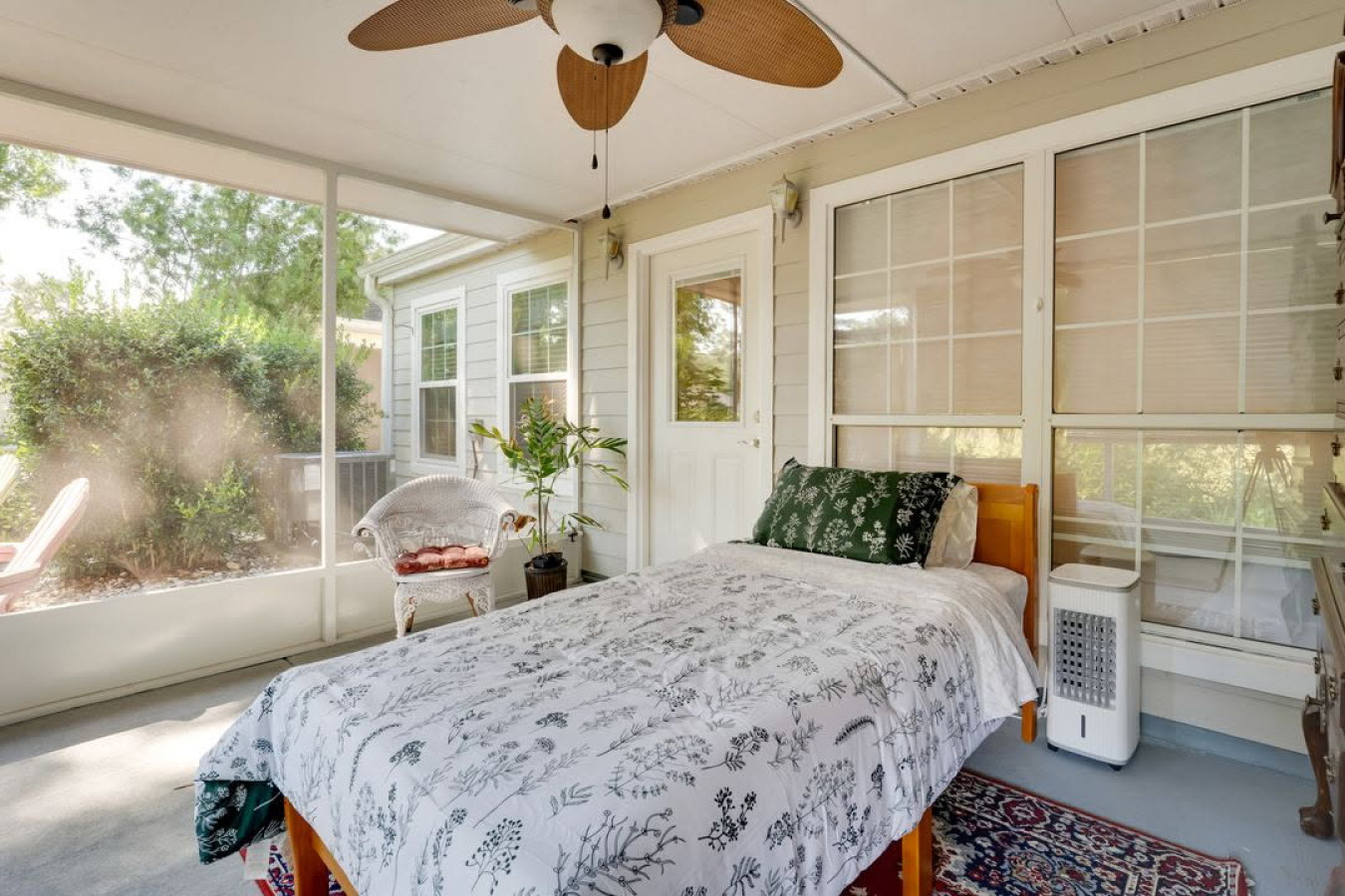 / nightRelax with the whole family at this peaceful place to stay. Bedrooms & Bathrooms This home offers 2 bedrooms and 2 full bathrooms: - Bedroom 1 (Primary Suite): King-size bed, computer desk, walk-in closet with iron/ironing board, and a private en-suite bathroom with shower. Essentials like shampoo, conditioner, body wash, hand soap, and towels are provided. - Bedroom 2: Queen-size bed with easy access to the second bathroom. - Bathroom 2: Conveniently located near the common area and Bedroom 2. - Bedroom 3: Queen bed in the screened in porch in the back. [Not in air conditioned space] Kitchen & Living The fully equipped kitchen includes a stove, refrigerator, dishwasher, coffee maker, microwave, toaster, kettle, and more—perfect for preparing meals at home. The adjoining living space is cozy and inviting, leading out to the screened lanai and backyard with peaceful golf course views. Laundry & Community Amenities - A washer and dryer are located in a large closet near the kitchen, and laundry is complimentary during your stay. Guests also have access to: - Olympic-size pool (access card provided; $100 replacement fee if lost) - Tennis and basketball courts - Playground - On-site restaurant and golf course Things to Do Nearby - Gainesville: University of Florida, Gators games, Thomas Center, Hippodrome Theater - High Springs & Fort White: Natural treasures like Gilchrist Blue Springs, Ichetucknee Springs, Ginnie Springs, and Devil’s Den House Rules This is a smoke-free and pet-free home due to owner allergies. Violations will result in a $500 penalty plus additional cleaning fees. You can access the whole house except the garage.