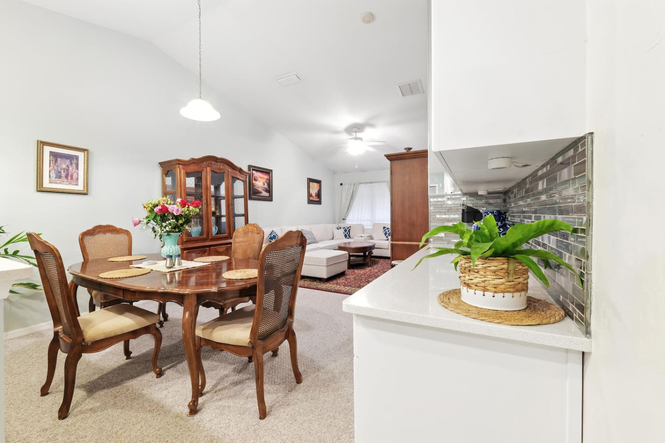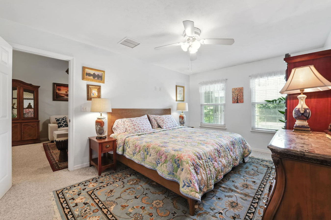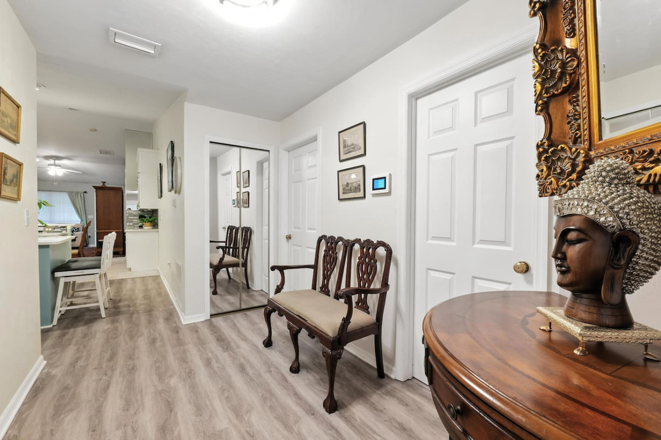 / nightRelax with the whole family at this peaceful place to stay. Bedrooms & Bathrooms This home offers 2 bedrooms and 2 full bathrooms: - Bedroom 1 (Primary Suite): King-size bed, computer desk, walk-in closet with iron/ironing board, and a private en-suite bathroom with shower. Essentials like shampoo, conditioner, body wash, hand soap, and towels are provided. - Bedroom 2: Queen-size bed with easy access to the second bathroom. - Bathroom 2: Conveniently located near the common area and Bedroom 2. - Bedroom 3: Queen bed in the screened in porch in the back. [Not in air conditioned space] Kitchen & Living The fully equipped kitchen includes a stove, refrigerator, dishwasher, coffee maker, microwave, toaster, kettle, and more—perfect for preparing meals at home. The adjoining living space is cozy and inviting, leading out to the screened lanai and backyard with peaceful golf course views. Laundry & Community Amenities - A washer and dryer are located in a large closet near the kitchen, and laundry is complimentary during your stay. Guests also have access to: - Olympic-size pool (access card provided; $100 replacement fee if lost) - Tennis and basketball courts - Playground - On-site restaurant and golf course Things to Do Nearby - Gainesville: University of Florida, Gators games, Thomas Center, Hippodrome Theater - High Springs & Fort White: Natural treasures like Gilchrist Blue Springs, Ichetucknee Springs, Ginnie Springs, and Devil’s Den House Rules This is a smoke-free and pet-free home due to owner allergies. Violations will result in a $500 penalty plus additional cleaning fees. You can access the whole house except the garage.
