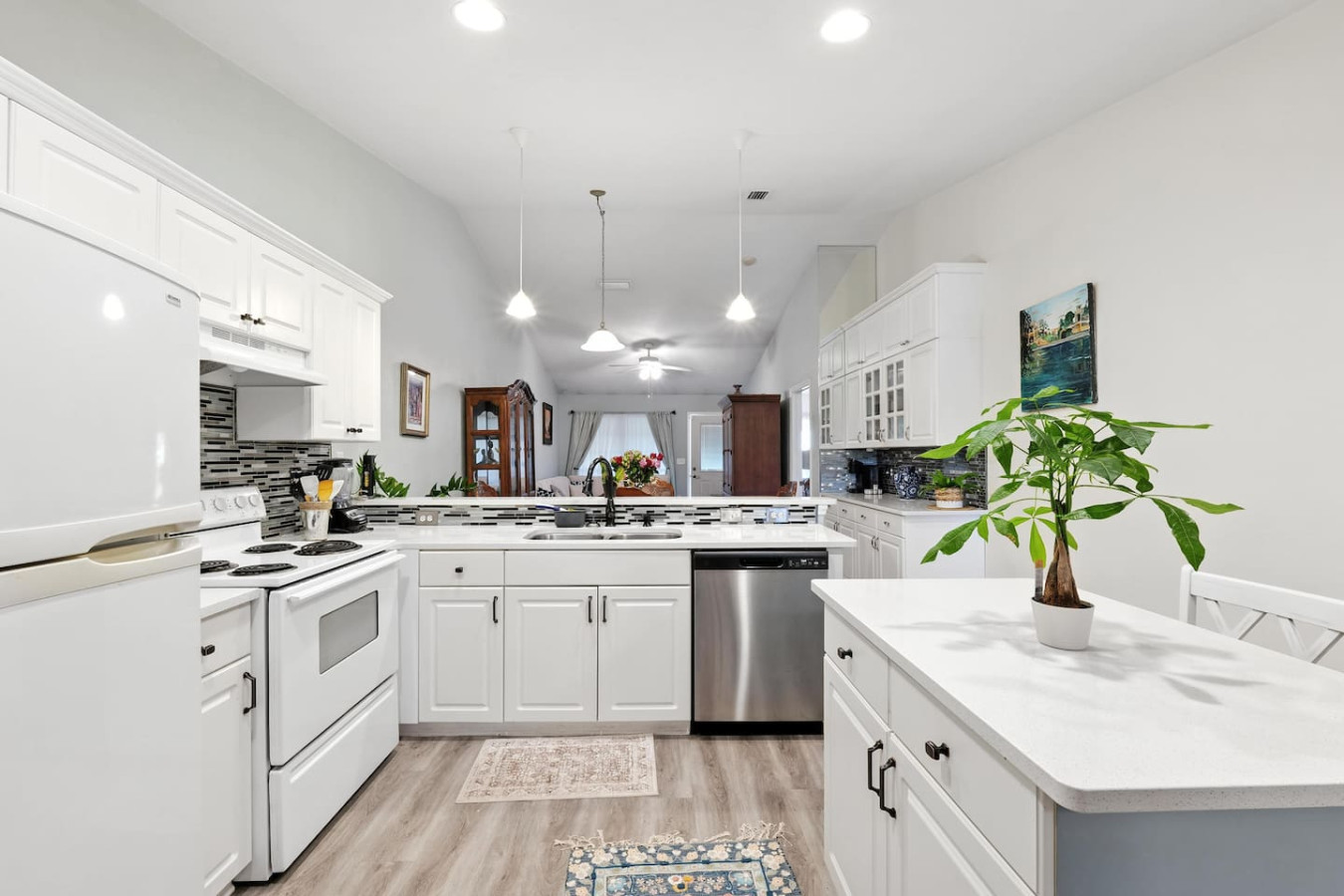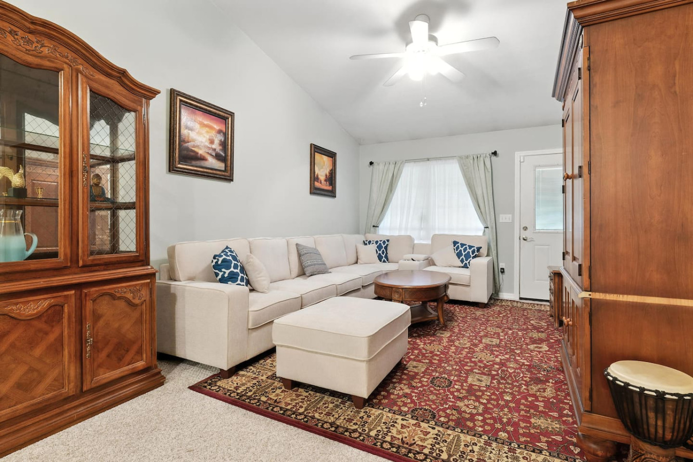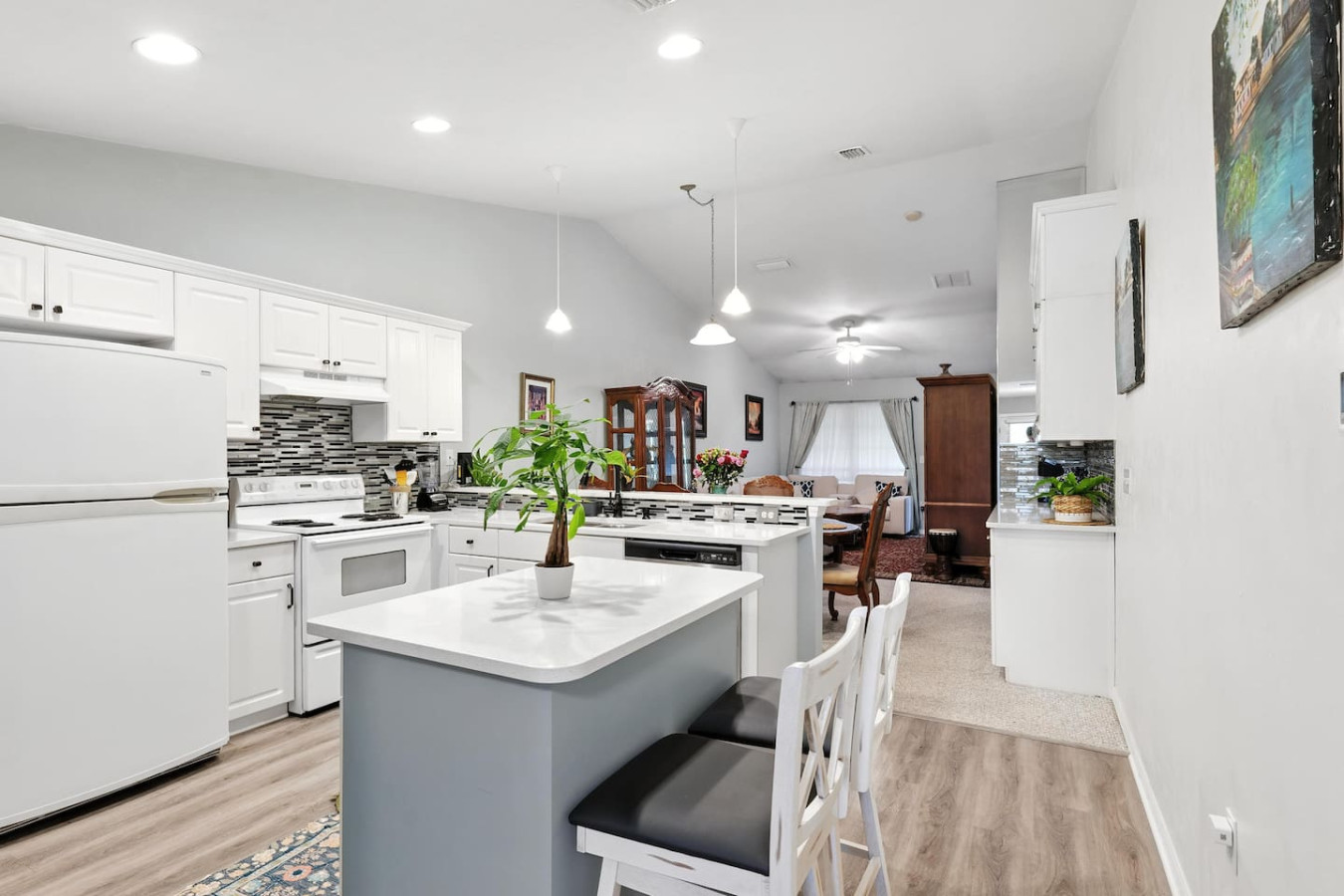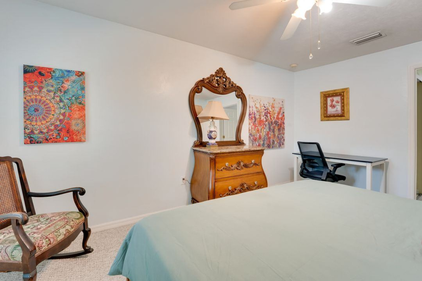 / nightRelax with the whole family at this peaceful place to stay. Bedrooms & Bathrooms This home offers 2 bedrooms and 2 full bathrooms: - Bedroom 1 (Primary Suite): King-size bed, computer desk, walk-in closet with iron/ironing board, and a private en-suite bathroom with shower. Essentials like shampoo, conditioner, body wash, hand soap, and towels are provided. - Bedroom 2: Queen-size bed with easy access to the second bathroom. - Bathroom 2: Conveniently located near the common area and Bedroom 2. - Bedroom 3: Queen bed in the screened in porch in the back. [Not in air conditioned space] Kitchen & Living The fully equipped kitchen includes a stove, refrigerator, dishwasher, coffee maker, microwave, toaster, kettle, and more—perfect for preparing meals at home. The adjoining living space is cozy and inviting, leading out to the screened lanai and backyard with peaceful golf course views. Laundry & Community Amenities - A washer and dryer are located in a large closet near the kitchen, and laundry is complimentary during your stay. Guests also have access to: - Olympic-size pool (access card provided; $100 replacement fee if lost) - Tennis and basketball courts - Playground - On-site restaurant and golf course Things to Do Nearby - Gainesville: University of Florida, Gators games, Thomas Center, Hippodrome Theater - High Springs & Fort White: Natural treasures like Gilchrist Blue Springs, Ichetucknee Springs, Ginnie Springs, and Devil’s Den House Rules This is a smoke-free and pet-free home due to owner allergies. Violations will result in a $500 penalty plus additional cleaning fees. You can access the whole house except the garage.