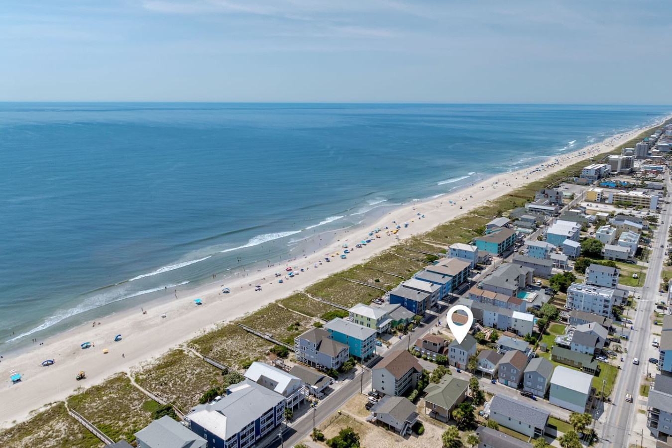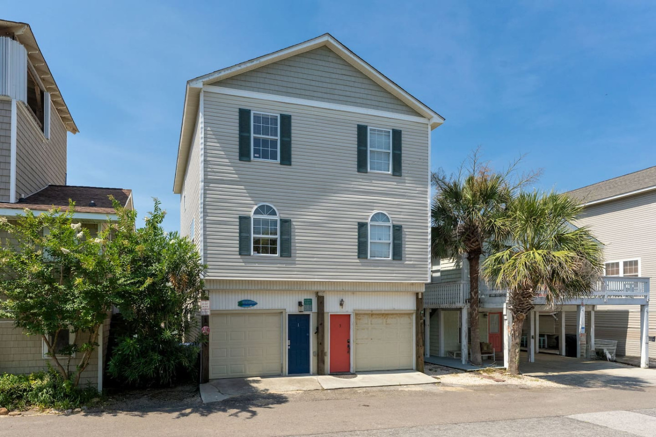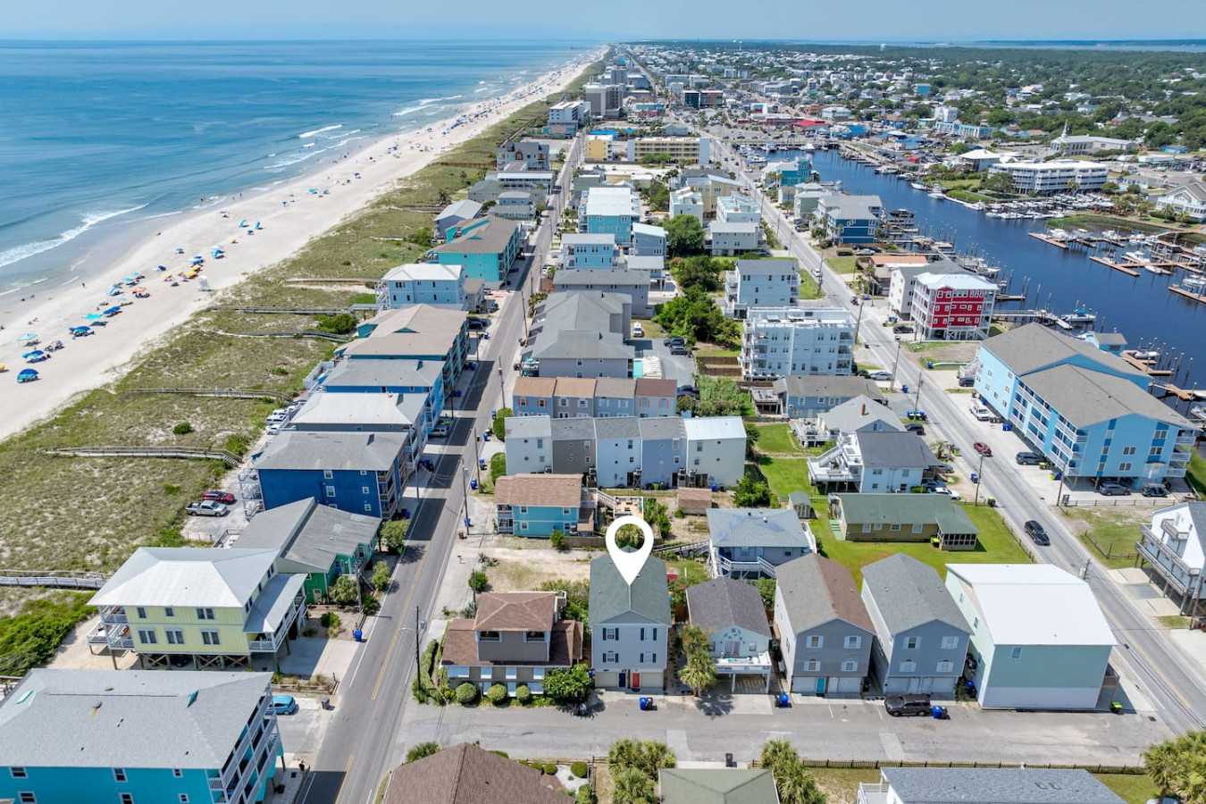 / nightEscape to this 2-bedroom townhome featuring 2 king beds, ensuite bathrooms, and a fully stocked kitchen. Just two houses from the sand, enjoy quick and easy beach access. Perfect for couples or families, this cozy retreat offers comfort, convenience, and the ideal spot for your next coastal getaway. KEY FEATURES: ➝ Updated townhome with open floor plan ➝ 2 comfortable bedrooms; 2 King Beds ➝ 2 bathrooms; 1 Jacuzzi Soaking Tub/Shower combo and 1 Tub/Shower Combo ➝ Fully Stocked Kitchen ➝ High-speed wifi + tv in every bedroom ➝ Washer and dryer ➝ Free parking ➝ 4 Beach Chairs, Wagon, Umbrella, and Toys ☆☆BEDROOMS☆☆ ➝ Bedroom 1: 1 King Bed w/ Ensuite Bathroom ➝ Bedroom 2: 1 King Bed w/ Ensuite Bathroom Both bedrooms are located on the 3rd floor of the home. Bedrooms come with linens and ready-made beds along with towels for each guest. ☆☆BATHROOMS☆☆ ➝ Bathroom 1: Ensuite w/ Jacuzzi Soaking Tub/Shower Combo ➝ Bathroom 2: Ensuite w/ Tub/Shower Combo You'll find the bathrooms stocked with complimentary essentials of shampoo, conditioner, and body wash, so you can travel light and still enjoy all the essentials of a relaxing stay. ☆☆KITCHEN & LIVING ROOM☆☆ Our beachy kitchen is fully stocked with everything you need to cook up a full meal after a day in the sun. You'll find all the essential cookware, a drip coffee maker for your morning brew, kid-friendly dinnerware, and modern appliances to make mealtime a breeze. Whether you're whipping up a quick breakfast or a seafood dinner, this kitchen space has you covered. The dining table and bar seating allows for 6 and it great for enjoying your meals, planning your next excursion, or getting some mid-trip work done. The living room is quaint and comfy, providing an HD TV, couch for lounging, and arm chair. ☆☆OUTSIDE SPACE☆☆ Immediately to the left of the home and down the path to the back, there is an outdoor shower on the back side of the home to use when you return from the beach! The perfect was to trek less sand in the home during your visit. ☆☆PARKING☆☆ This property provides something that is hard to find in the area- free parking with direct beach access two houses from the sand! While this is a huge amenity to have, please note that parking in the 1-car garage is tight. We recommend smaller vehicles utilize this space and that all passengers get out of the vehicle before entering to park (this is just easier). 1 additional car can utilize the concrete pad in front of the garage. ☆☆HOME DISTANCE IN MILES & MINUTES☆☆ ➝ ILM Airport: 18 miles, 27 minutes ➝ Carolina Beach Boardwalk: 0.1 miles, 2 minutes (5 min walk!) ➝ Carolina Beach State Park: 1.8 miles, 5 minutes ➝ The North End- Freeman Park: 3 miles, 7 minutes ➝ Pleasure Island Rentals: 0.5 miles, 2 minutes ➝ Sea Witch Cafe & Tiki Bar: 0.2 miles, 3 minutes ➝ North Carolina Aquarium at Fort Fisher: 5 miles, 9 minutes ➝ Fort Fisher State Historic Site: 5 miles, 9 minutes Guests will have access to the entire left side townhome unit during their stay and all amenities listed for use. Entry is via keypad using the unique door code provided in your check-in message sent 2 days prior to check-in. Send a message if you need anything during your stay! With quick response time, we are here to make your stay seamless and enjoyable! This home is on a quiet side street, tucked away from main traffic moving through Carolina Beach. You'll get the peaceful, beachy vacation home with all of the perks of being close to the Carolina Beach Boardwalk! The Carolina Beach Boardwalk is about a 5-minute walk! Here you'll find restaurants, shopping, and the BEST donuts on the East Coast. Bring your 4-wheel drive vehicle and head in the other direction to drive onto the beach at Freeman Park! We recommend a vehicle for exploring all that Carolina Beach and nearby Wilmington has to offer! Upon your arrival, we offer essential items like hand soap, dish soap, toilet paper, paper towels, and trash bags to start you off. For longer stays, kindly prepare to replenish these supplies according to your personal requirements. We ask that you take care of the home as if it were your own. We hope to provide a great space for all guests to unwind and relax during their time here!