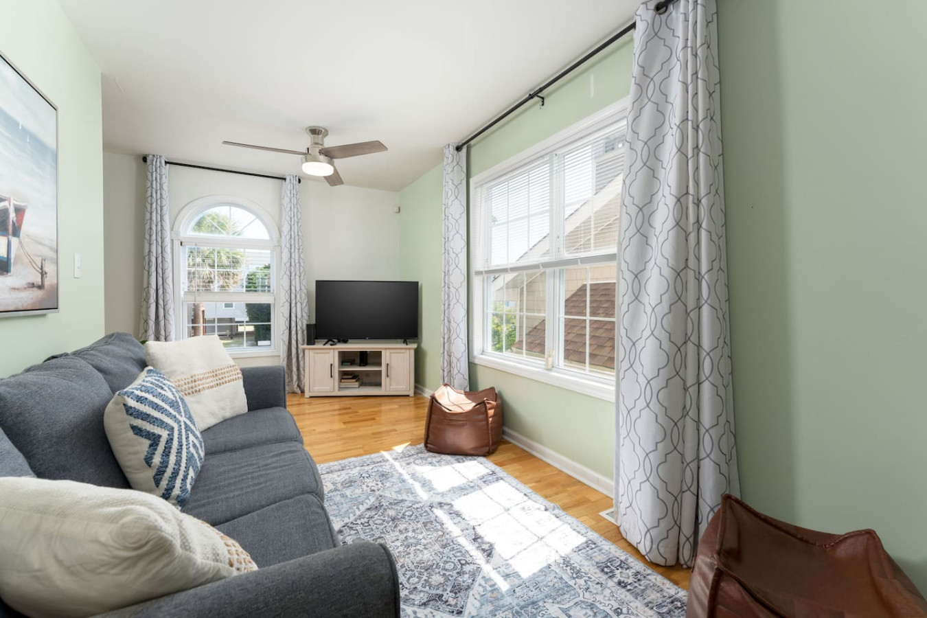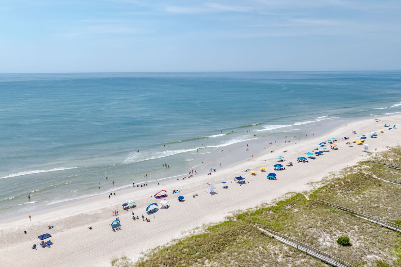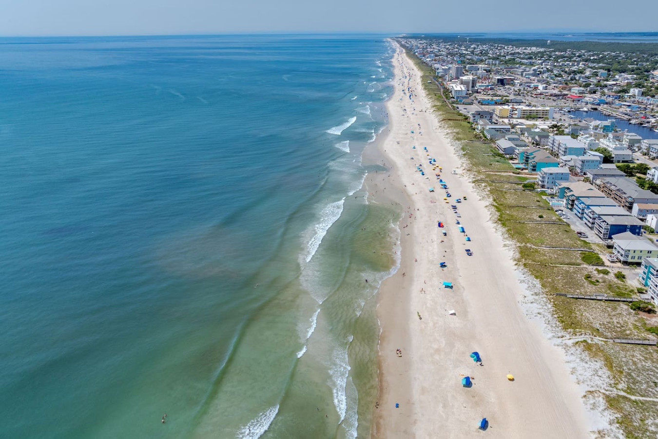 / nightEscape to this 2-bedroom townhome featuring 2 king beds, ensuite bathrooms, and a fully stocked kitchen. Just two houses from the sand, enjoy quick and easy beach access. Perfect for couples or families, this cozy retreat offers comfort, convenience, and the ideal spot for your next coastal getaway. KEY FEATURES: ➝ Updated townhome with open floor plan ➝ 2 comfortable bedrooms; 2 King Beds ➝ 2 bathrooms; 1 Jacuzzi Soaking Tub/Shower combo and 1 Tub/Shower Combo ➝ Fully Stocked Kitchen ➝ High-speed wifi + tv in every bedroom ➝ Washer and dryer ➝ Free parking ➝ 4 Beach Chairs, Wagon, Umbrella, and Toys ☆☆BEDROOMS☆☆ ➝ Bedroom 1: 1 King Bed w/ Ensuite Bathroom ➝ Bedroom 2: 1 King Bed w/ Ensuite Bathroom Both bedrooms are located on the 3rd floor of the home. Bedrooms come with linens and ready-made beds along with towels for each guest. ☆☆BATHROOMS☆☆ ➝ Bathroom 1: Ensuite w/ Jacuzzi Soaking Tub/Shower Combo ➝ Bathroom 2: Ensuite w/ Tub/Shower Combo You'll find the bathrooms stocked with complimentary essentials of shampoo, conditioner, and body wash, so you can travel light and still enjoy all the essentials of a relaxing stay. ☆☆KITCHEN & LIVING ROOM☆☆ Our beachy kitchen is fully stocked with everything you need to cook up a full meal after a day in the sun. You'll find all the essential cookware, a drip coffee maker for your morning brew, kid-friendly dinnerware, and modern appliances to make mealtime a breeze. Whether you're whipping up a quick breakfast or a seafood dinner, this kitchen space has you covered. The dining table and bar seating allows for 6 and it great for enjoying your meals, planning your next excursion, or getting some mid-trip work done. The living room is quaint and comfy, providing an HD TV, couch for lounging, and arm chair. ☆☆OUTSIDE SPACE☆☆ Immediately to the left of the home and down the path to the back, there is an outdoor shower on the back side of the home to use when you return from the beach! The perfect was to trek less sand in the home during your visit. ☆☆PARKING☆☆ This property provides something that is hard to find in the area- free parking with direct beach access two houses from the sand! While this is a huge amenity to have, please note that parking in the 1-car garage is tight. We recommend smaller vehicles utilize this space and that all passengers get out of the vehicle before entering to park (this is just easier). 1 additional car can utilize the concrete pad in front of the garage. ☆☆HOME DISTANCE IN MILES & MINUTES☆☆ ➝ ILM Airport: 18 miles, 27 minutes ➝ Carolina Beach Boardwalk: 0.1 miles, 2 minutes (5 min walk!) ➝ Carolina Beach State Park: 1.8 miles, 5 minutes ➝ The North End- Freeman Park: 3 miles, 7 minutes ➝ Pleasure Island Rentals: 0.5 miles, 2 minutes ➝ Sea Witch Cafe & Tiki Bar: 0.2 miles, 3 minutes ➝ North Carolina Aquarium at Fort Fisher: 5 miles, 9 minutes ➝ Fort Fisher State Historic Site: 5 miles, 9 minutes Guests will have access to the entire left side townhome unit during their stay and all amenities listed for use. Entry is via keypad using the unique door code provided in your check-in message sent 2 days prior to check-in. Send a message if you need anything during your stay! With quick response time, we are here to make your stay seamless and enjoyable! This home is on a quiet side street, tucked away from main traffic moving through Carolina Beach. You'll get the peaceful, beachy vacation home with all of the perks of being close to the Carolina Beach Boardwalk! The Carolina Beach Boardwalk is about a 5-minute walk! Here you'll find restaurants, shopping, and the BEST donuts on the East Coast. Bring your 4-wheel drive vehicle and head in the other direction to drive onto the beach at Freeman Park! We recommend a vehicle for exploring all that Carolina Beach and nearby Wilmington has to offer! Upon your arrival, we offer essential items like hand soap, dish soap, toilet paper, paper towels, and trash bags to start you off. For longer stays, kindly prepare to replenish these supplies according to your personal requirements. We ask that you take care of the home as if it were your own. We hope to provide a great space for all guests to unwind and relax during their time here!