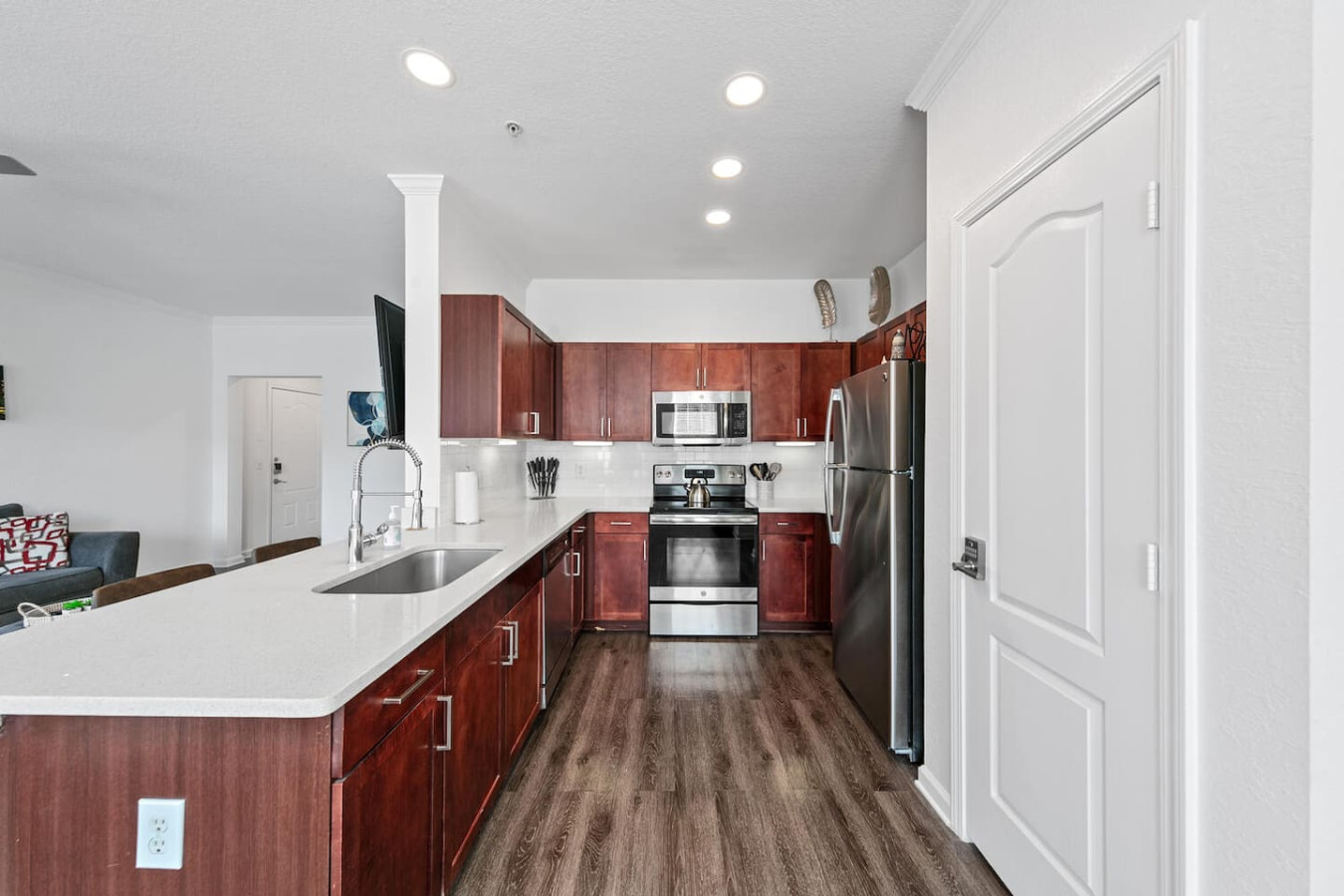 February 2026 5.00Luke was easy to deal with, very responsive, warm, friendly & accommodating. The place was very clean, well-appointed & easily accessible to 95. Wish my husband & I had more time to enjoy the apartment & what the area has to offer but we had a cruise to catch in Miami. It’s in a gated community with several apartment buildings (condos?). A little bit difficult to find the building numbers at night. Get there when it’s bright. Once we found Luke’s building, his place was easy to find & to get to in the 2nd floor. Only steps, no elevator which is no big deal for us. Highly recommend this place.