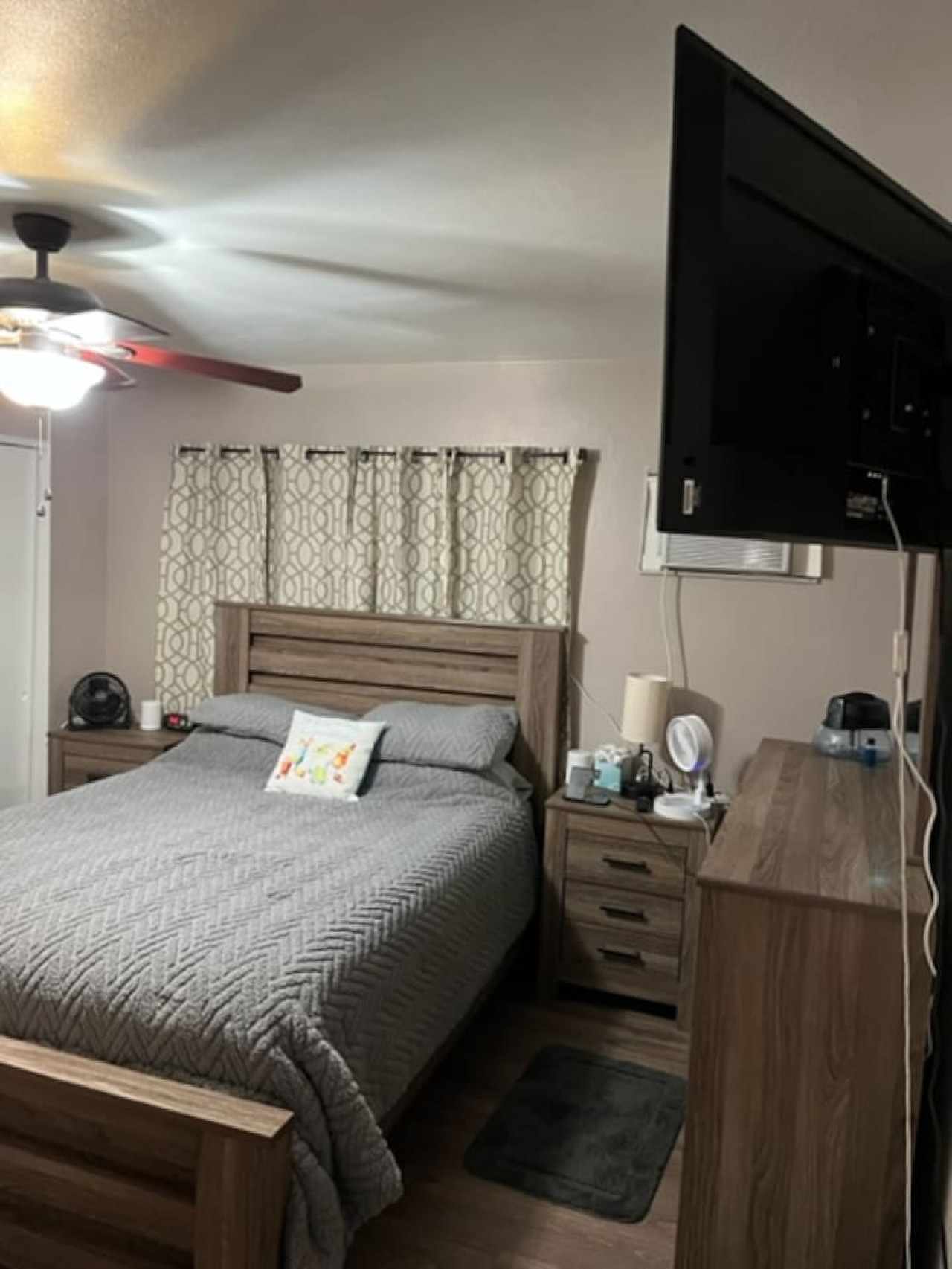 There were a lot of broken things and unsafe things yet she wanted me to give her a Four star review. Moldy shower curtain liners broken fence and bathroom cabinets Faulty air conditioner in 100 plus heat. Stained linens upon checkin. Dirty shower mats upon check in. Lock to lake broken and in a table. Screen door to street broken. Fence to lake broken and on the ground. Ants on toilet seats everyday. Had to close bedroom door to use the bathroom in bedroom on the right because bathroom door off track. Beer can on lawn chair when we arrived. Cabinet door in bathroom off track. Air conditioner in second bedroom shutting off in 100 degree heat