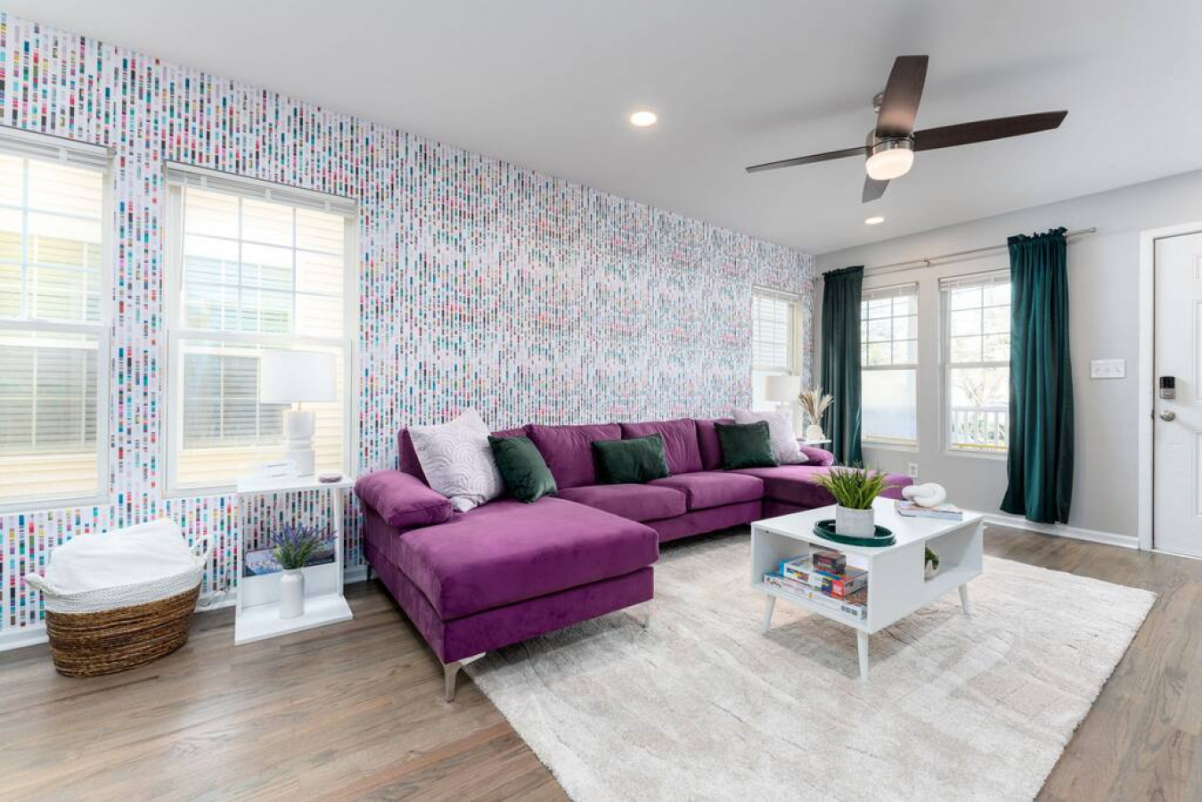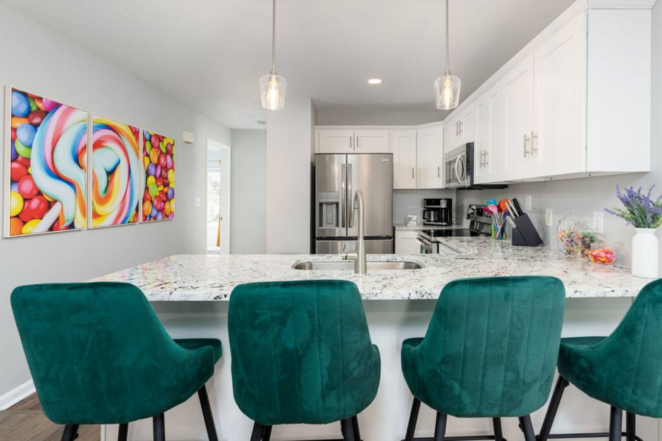 / nightTurn your stay into a colorful experience in this cozy downtown Wilmington home walking distance to dining, entertainment, and the Historic District. We wouldn't typically encourage a sugar rush, but how about a Starburst (or two) on us!? This 3 bedroom, 2 bathroom home is sure to please from your first step in the door. -65" TV w/ streaming services -Sonos sound system -1G High Speed Wifi -3 min drive to Live Oak Bank Pavilion -2 min drive to local restaurants -4 min walk to Brooklyn Cafe Licorice Lagoon- LIVING This space was created for the guest experience! The living room and kitchen provide an open area for guests to relax and enjoy one another's company. With a couch suitable for lounging, watching your favorite Netflix series, or winning a game of Candy Land, you'll find a sense of fulfillment here. Cupcake Commons- KITCHEN The kitchen is fully stocked to provide all you need for cooking, snacking, and making your morning cup of coffee. We provide a drip coffee maker, Keurig, and French Press along with complimentary K-cups and various ground coffee flavors for you to enjoy. Lollipop Woods- BEDROOM Just off the living room towards the front of the home is a hallway leading to two bright, and fun-colored bedrooms. Are you more into the royal purples and lavish plum? Then the bedroom to the left is for you! This bedroom has a Queen size bed and closet with hangers for use during your stay. Gummy Hills- BEDROOM Love the exciting teals and oranges!? The bedroom to the right of the hallway is furnished just right! This bedroom has a Queen size bed and closet with hangers for use during your stay. Ice Palace- BATHROOM Between the bedrooms in the hallway is a bathroom with tub/shower combo. This bathroom provides Cotton Balls, Plackers, Q-tips, and a Hair Dryer along with Shampoo, Conditioner, and Body Wash. Candy Castle- PRIMARY SUITE Off the back of the kitchen in the rear of the home is the primary suite that meets you with cheerful yellows. This room has a King size bed and floor standing mirror. The attached bathroom provides a luxe walk-in shower and mid-size vanity. The closet in the bathroom is used for owner's supplies and is not accessible for guest use. This bathroom provides Cotton Balls, Plackers, Q-tips, and a Hair Dryer along with Shampoo, Conditioner, and Body Wash. LAUNDRY Around the corner from the kitchen is a laundry room with washer/dryer along with detergent pods, dryer sheets, a steamer, and extra hangers for hang-drying clothes if needed. EXTERIOR This home is the first floor of a Duplex/Townhome. There is another unit upstairs that guests will not have access to during the stay. This home does not have a backyard or rear entrance. You will use the front door to access the home along with your unique door code. Keyless Entry- Guests will be provided a unique door code for entry. This code will be used on the keypad providing access to the front door. Parking- Being that the home is located in the downtown Wilmington area, parking for the home is not set as designated spaces, however there is no shortage of street parking located out front of the home and it is free to park. We recommend a maximum of 2-3 cars to ensure enough room for all. If spaces out front of the home are not available, parking across the street or on a nearby corner is allowed! We ask that you park mindfully and follow guidelines of any signage or marked spaces. Send a message if you need anything during your stay. With quick response time and being local to the area, we hope to provide you with a seamless and enjoyable stay! Location is one of the best qualities of this home! While not located in a neighborhood, this home is very nearby to local dining, entertainment, and shops, even within walking distance! If you have a specific event coming up and would like to know the distance, send us a message and we will be happy to help with providing this information. There are many attractions and restaurants within walking distance of this home, but we recommend a car to explore all Wilmington, NC has to offer. We ask that you take care of the home as if it were your own. We hope to provide a great space for all guests to unwind and relax during their time here!