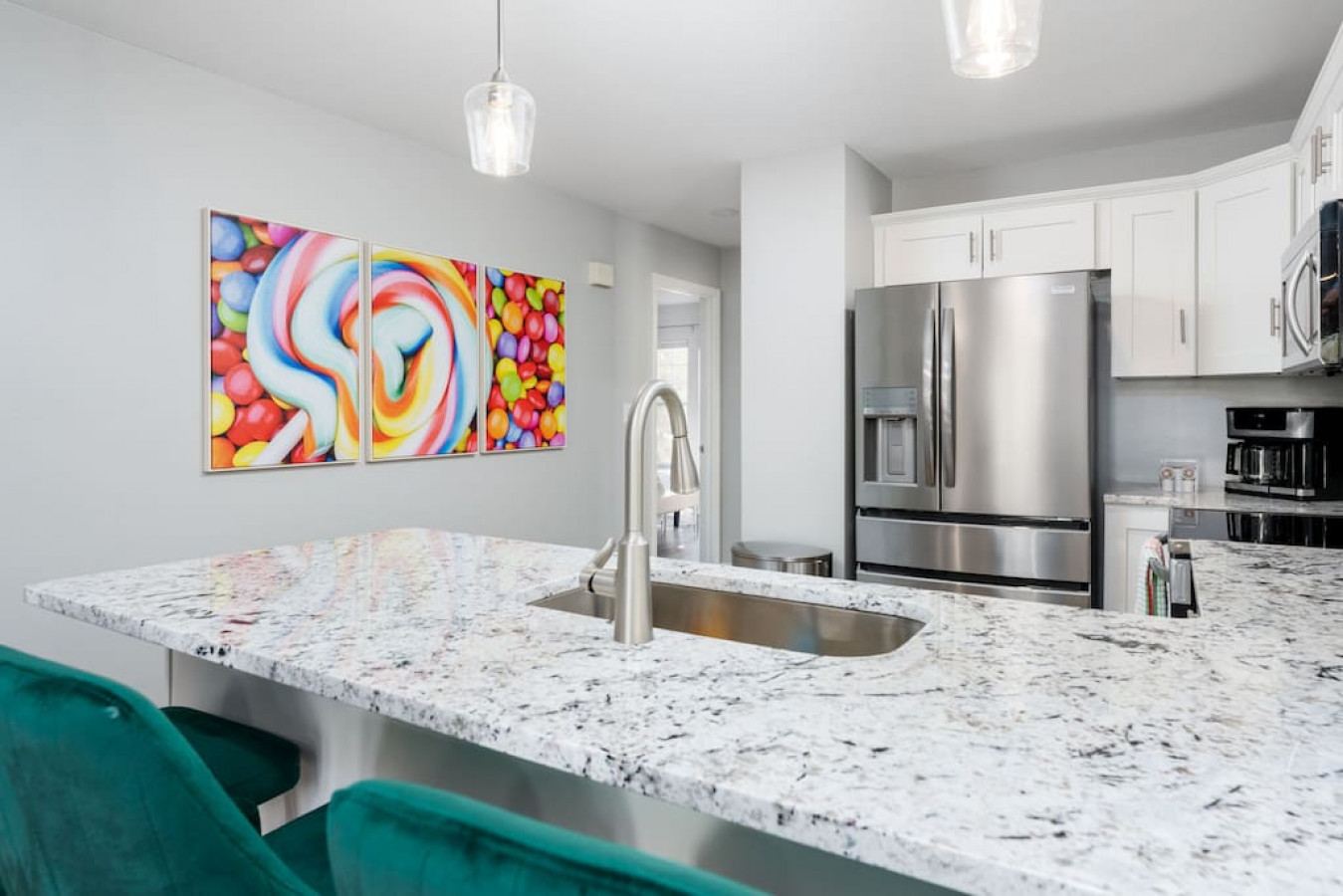 November 2025 5.00Candy Land was a comfortable option for our family. We enjoyed the calm environment with pops of color that Luke has created. Close proximity to both the airport and the downtown area was a bonus. Occasional noise from the planes coming and going was noticeable but wasn't disruptive to our stay in any way. The neighborhood was quiet and felt safe. We did not stock the fridge and eat in, that said, the kitchen was fully equipped and ready if we had decided on that option.