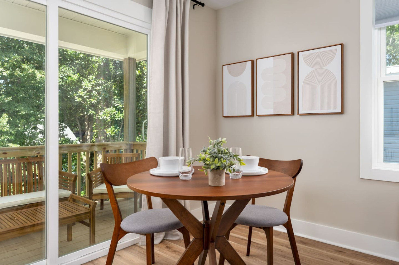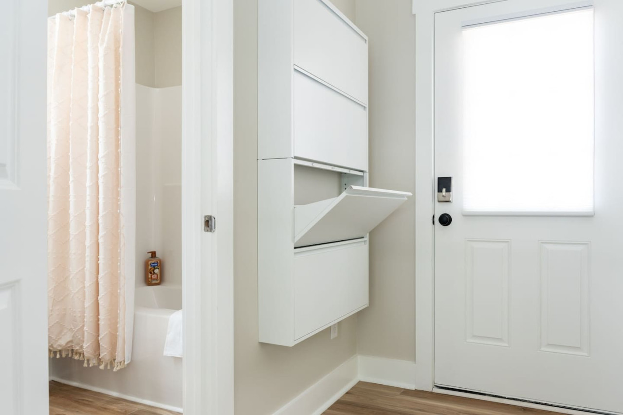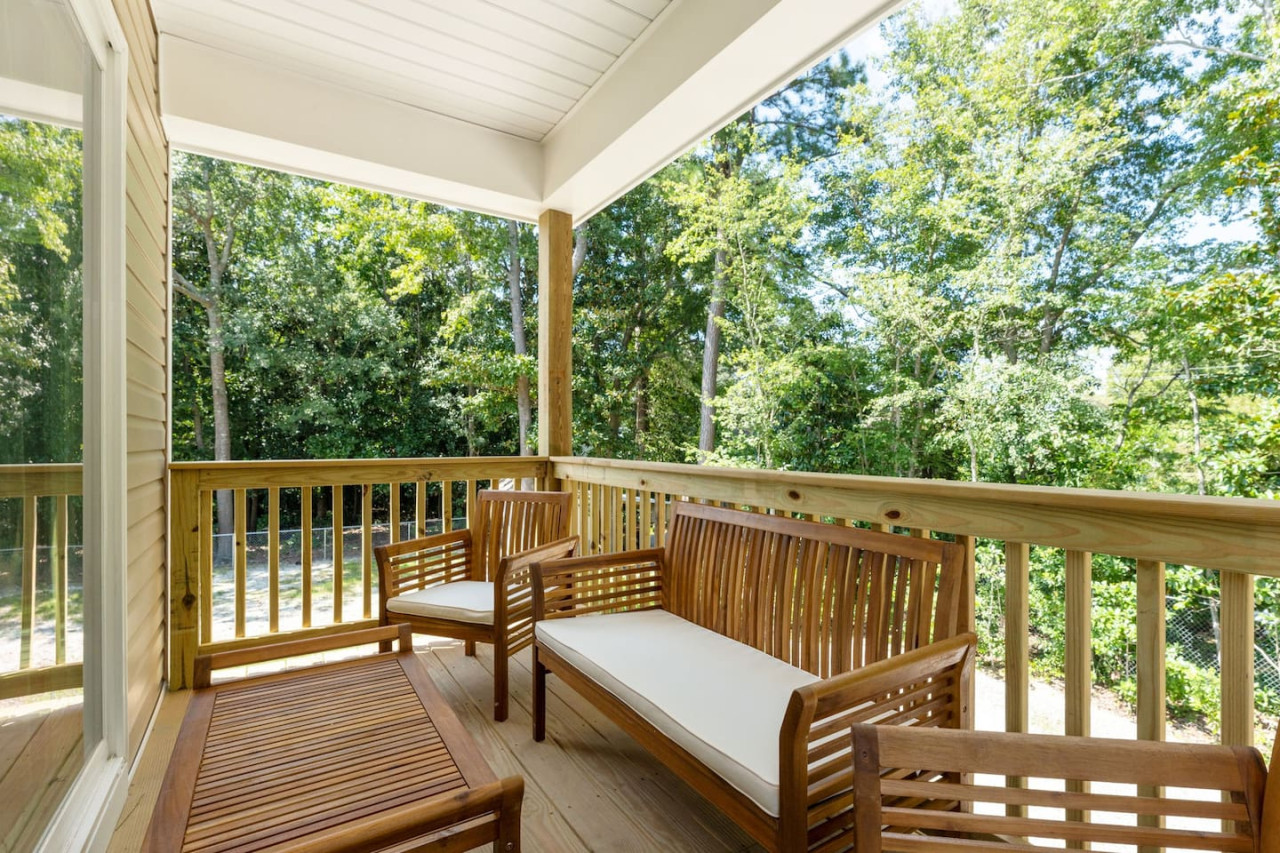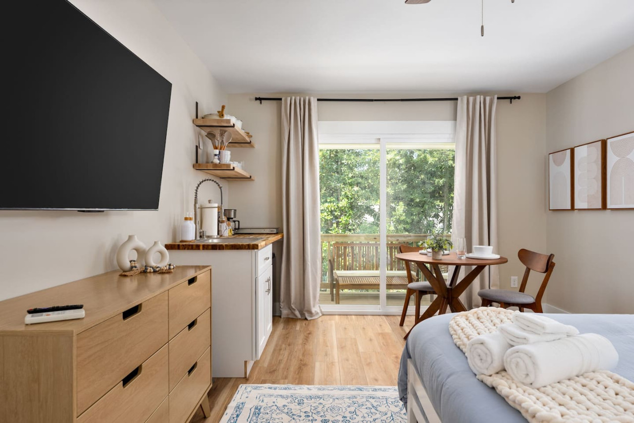 / nightTucked away in central Wilmington, discover serenity in our Nordic-inspired studio, featuring calming wood tones and pale blues. This charming retreat includes a queen bed, a well-equipped kitchenette with a hot plate and mini fridge, and a cozy dining table for two. Enjoy morning coffee or afternoon chats on the private balcony. Located just minutes from the beach, downtown, and local dining and shopping, we're ready to welcome you for the perfect Wilmington visit! KEY FEATURES: ➝ New Construction Home ➝ Comfortable Queen Bed ➝ Full Bathroom with Shower/Bathtub Combo ➝ Kitchenette w/Mini Fridge, Hot Plate, Coffee ➝ High-speed wifi + TV ➝ Washer and Dryer ➝ Free Designated Parking ☆☆BEDROOM☆☆ Experience restful nights in our studio’s cozy queen bed. The bed is dressed in soft, high-quality linens and surrounded by calming wood tones and pale blues. Keep up with your favorite episodes on the 55" TV with streaming services. ➝ 1 Queen Bed (Private Bathroom) ☆☆BATHROOM☆☆ The bathroom features a modern tub/shower combo, perfect for a refreshing soak or quick shower. We provide all essential soaps and a hair dryer for your convenience. Clean, stylish, and well-stocked, this space ensures a comfortable and effortless experience during your stay. ☆☆KITCHEN & DINING☆☆ Our studio’s kitchenette is thoughtfully equipped for your culinary needs. It includes a drip coffee maker and tea for your morning routine, a hot plate for cooking, and essential pots and pans. You'll also find plates, cups, bowls, and utensils for easy meal preparation. The mini fridge ensures you have plenty of storage for your groceries and snacks. Whether you're brewing a fresh cup of coffee or preparing a simple meal to enjoy at the dining table, this kitchenette has you covered. ☆☆OUTSIDE SPACE☆☆ You will have access to the private balcony and seating throughout your stay. This home is truly one-of-a-kind when it comes to location! You will be tucked at the end of a road with no through traffic, adding an amazing peaceful feel to your stay. You will also be provided designated parking space. This studio is situated at the back of a larger home. While the studio space is not shared and each home has it's own private entrance, the parking area will be shared and it is possible you will pass by the friendly, long-term renters in the front home. HOME DISTANCE IN MILES FROM: This stunning home is ideally located close to the beach, downtown, shopping, dining, and the hospital, making it a great location for tourists and business travelers alike. ➝ Wilmington International Airport: 9 miles ➝ Downtown Wilmington: 6 miles ➝ Wrightsville Beach: 5 miles ➝ Live Oak Bank Pavilion: 9 miles ➝ Carolina Beach: 14 miles ➝ Long Leaf Park: 1 mile ➝ Mayfaire Town Center: 5 miles Guests will have access to the entire studio home above the garage during their stay along with parking. Send a message if you need anything during your stay! With quick response time and local to the area, we are here to make your stay seamless and enjoyable! The area features tree-lined streets and a welcoming community atmosphere. The home located at a dead end road creates a calm corner of paradise in a centrally located part of Wilmington. You'll find local shops, cafes, and restaurants just a short drive away, making it easy to explore Wilmington's vibrant culinary and cultural scene. Nearby parks and nature trails provide opportunities for outdoor activities, while the beautiful beaches of Wilmington are within a short drive for sun and relaxation. Enjoy the best of both quiet retreat and city accessibility in this lovely corner of Wilmington! We recommend vehicle transportation to explore all that Wilmington and surrounding beaches have to offer! Upon your arrival, we offer essential items like hand soap, dish soap, toilet paper, paper towels, and trash bags to start you off. For longer stays, kindly prepare to replenish these supplies according to your personal requirements. We ask that you take care of the home as if it were your own. We hope to provide a great space for all guests to unwind and relax during their time here!