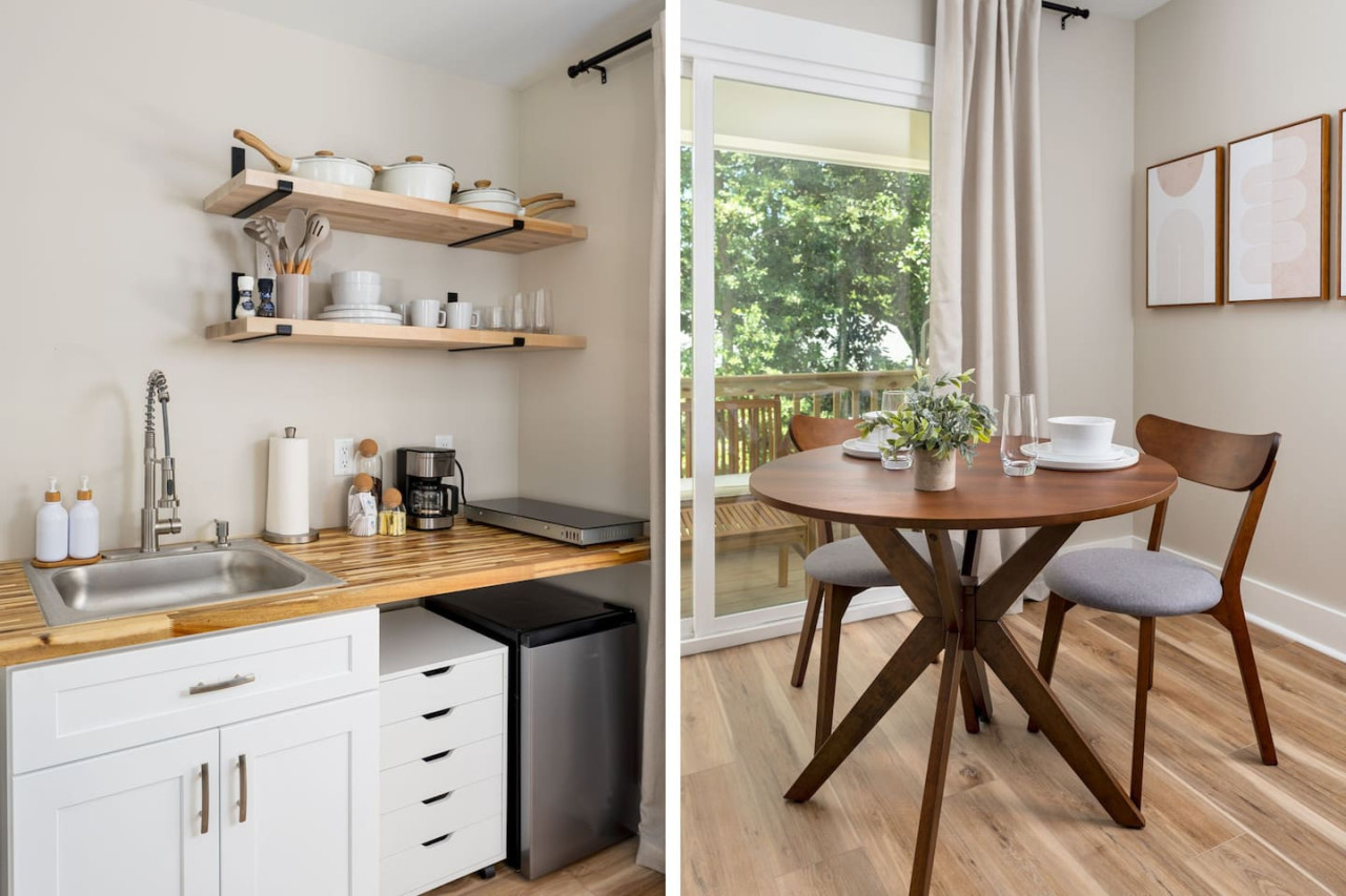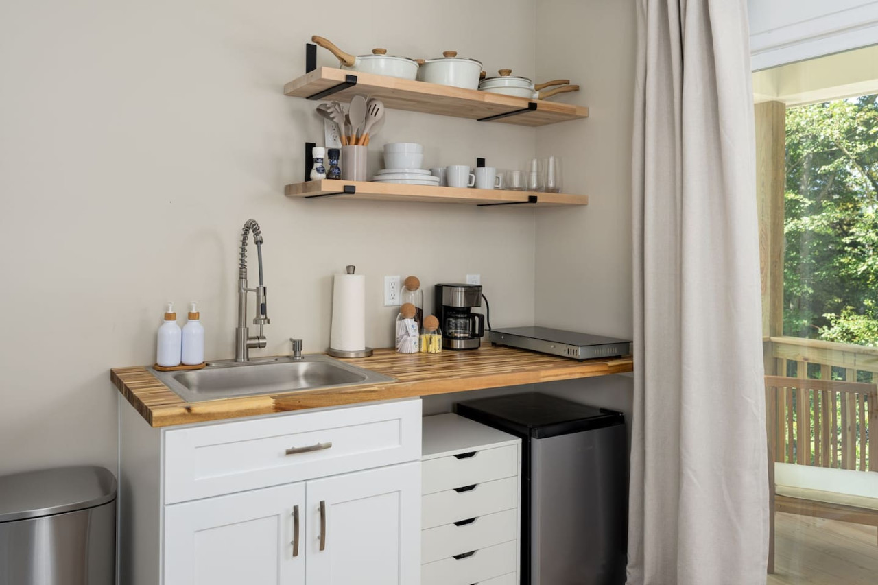 October 2025 4.00My fiancé and I stayed here for a mini vacation and were very satisfied. Had all the amenities as listed and even a full body mirror which was convenient! The location was peaceful and mostly everything was nearby. The only con to keel in mind is there is no microwave to warm up food just a hot stove. Overall a 4/5! Recommend!