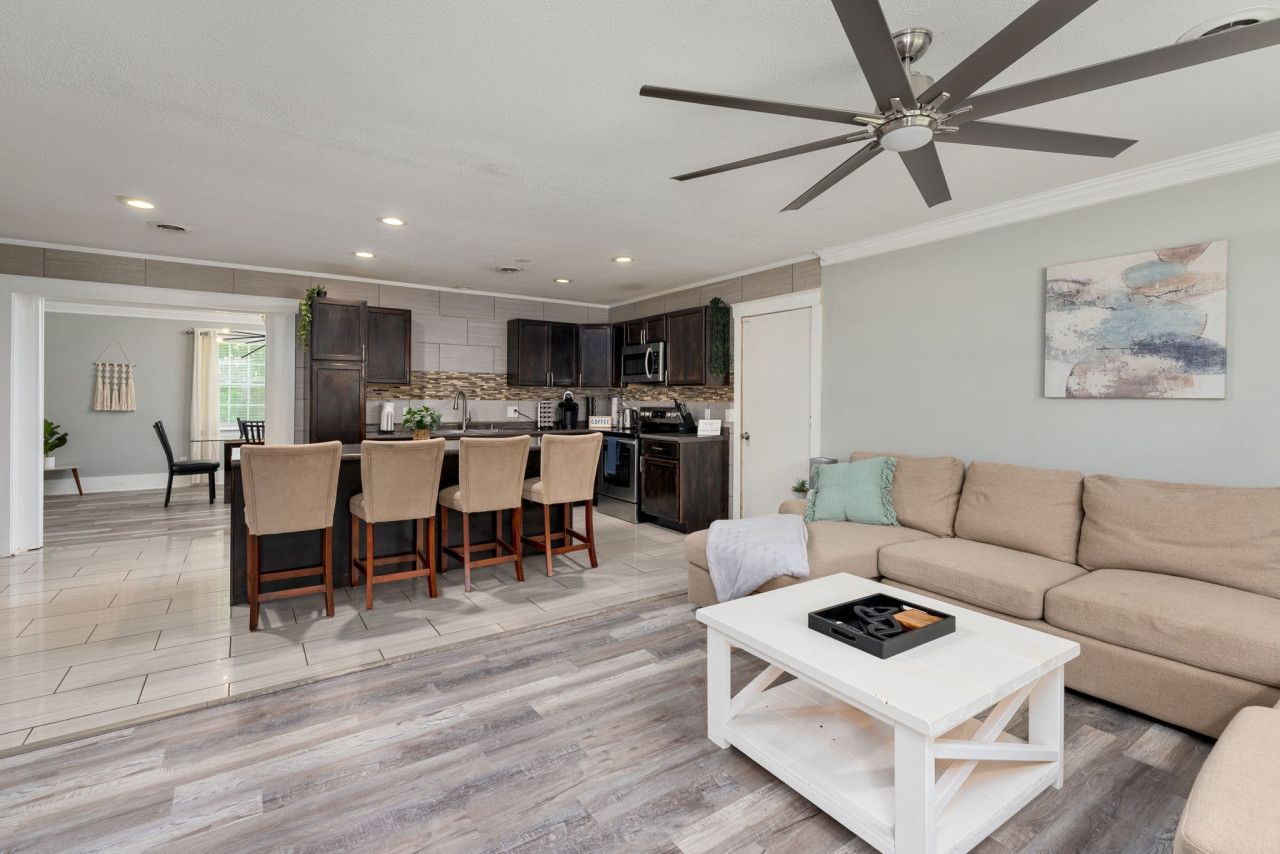 February 2025 5.00James is a wonderful and attentive host. The house is beautiful and had all listed amenities. Back yard is smaller than it appears in photos, but still enjoyable and serene. Kitchen is full of utensils, cookware, and even cooking supplies. Appliances are readily available. The ice maker/water dispenser does not work on the refrigerator, but that seems common in many BnBs I have stayed in, so no big issue. Plenty of parking. House beautifully decorated and modern. Sun room is the icing on the cake for the property. Very close to shopping, food, and beaches. Worth every penny of the stay. House was in no way filthy, but if you're a clean freak, I will say the cleaners could do a little better job on floors and walls, as there was some dirt and hair on the floors and in the bathtub and crayon markings on bedroom walls. Appliances were very clean. Bathtub is useable for a shower, but no way of plugging tub for a bath unless you buy a stopper for it, so plan on only showering.