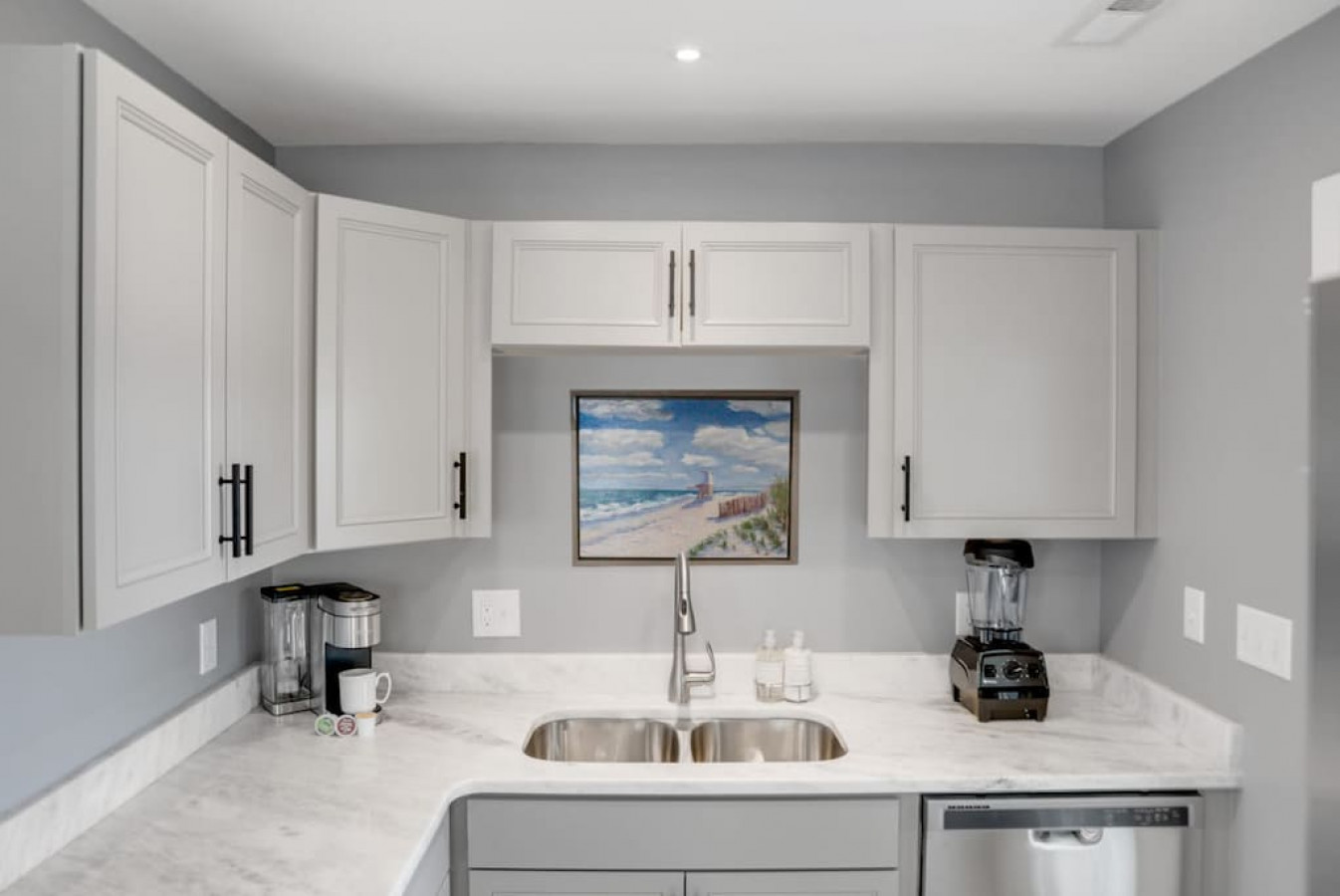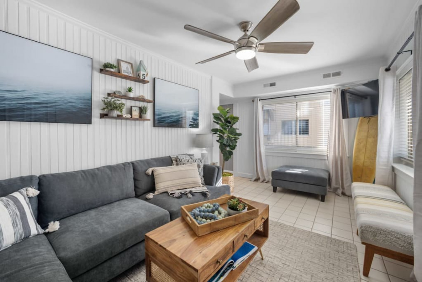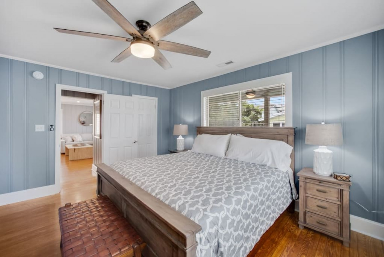 / night3 Kitchens, 3 Living Rooms, 6 Bedrooms! Wake up feeling refreshed in this NEWLY renovated, coastal-inspired Triplex in the heart of Wrightsville Beach. Located within walking distance to the ocean, multiple local restaurants, shops, and water sports, this home provides an amazing beach stay experience. -Top tier 1Gb High Speed Wifi in each unit -300ft to Public Beach Access -100ft to Local Restaurants -Large back porch with space to entertain This home is made up of 3 individual units and provides sleeping room for up to 14 guests. Unit A- The bottom left unit is fully ground level and consists of 2 bedrooms, each with one Queen bed. There is a shared bathroom in the hallway. This unit has a stocked kitchen and dining table perfect for 4. The cozy living room equipped with a sectional couch and 55" TV with streaming services is the perfect resting space between your hours in the sun and winding down your evening. The laundry room for this unit is located on the interior of the home. Unit B- The bottom right unit is fully ground level and consists of 2 bedrooms, each with one Queen bed. There is a shared bathroom in the hallway. This unit has a stocked kitchen and dining table perfect for 4. The living room has a sectional couch and ottoman with a 44" TV with streaming services. The laundry room for this unit is located on the rear exterior of this home. Unit C- The entirety of the second level makes up the final unit of this home. This floor of the home is accessible by using the stairs on the left side of the home, then entering through the door using your unique code on the keypad. This floor can sleep 6 guests. It consists of 2 bedrooms, one with 1 King bed and attached bathroom, the other with 2 Queen beds also with an attached bathroom, creating two "master" bedrooms! The large living space features an open-concept kitchen/dining/living area. The kitchen boasts a large island with 4 bar stools. seamlessly flowing through to the dining area seating 6 more, then continuing to the living area with a sectional couch. This floor has a 65" TV with streaming services. Laundry is located on the interior of this home. Additional Shared Spaces- There is an outdoor shower at the rear of the home that can be shared between the three units, along with a hose to wash feet before trekking sand inside! The second level of the home has a large back porch with outdoor seating which serves as a great space for relaxing or entertaining with your entire group! There is also a front porch with hammock and ocean views on the second level. Parking- 6 PARKING SPACES! This is a rare find in this location. While it is tight and won't be quite right to bring a trailer, there is enough room to park 2 cars to the left of the home, 2 cars in the front of the home, and 2 cars to the right of the home, giving 6 total spots. Keyless Entry- Guests will be provided a door code for entry. Each unit has a keypad and the door code will provide access to each door. The front door to Unit A and Unit B can be seen from the road. The front door to Unit C, the second level of the home, can be found up the stairs on the left side of the home, on the back porch. I give my guests space but am available when needed. Send a message if you need anything or have questions during your stay! Enjoy the local coastal feel this beach town has to offer! Many restaurants, shops, and local bars are in walking distance. Close driving distance to additional local favorites when it comes to restaurants and shopping centers. The location of this home is perfect for being in the middle of it all while having a comfortable space to rest away from it all! Ask us about beach gear!