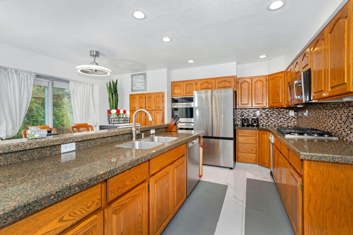 / nightExperience comfort and convenience in this spacious home, perfect for work crews or professionals with families. With 5 furnished bedrooms, 4 bathrooms, an open-concept kitchen, and a cozy living area with a fireplace and massage chair, it’s ideal for relaxing after a productive day. Enjoy the backyard with a deck and grill for outdoor downtime. Close to Comstock Park, trails, downtown Spokane, hospitals, universities, and golf courses, it’s a perfect base for work and leisure. ★ Living Room – A Cozy Gathering Space ★ Relax in a warm, inviting living room with everything you need for a comfortable stay. ✔️ Indoor fireplace for cozy ambiance and warmth ✔️ Reclining leather seating and a massage chair for ultimate comfort ✔️ Large smart TV with streaming options for endless entertainment ✔️ Bright windows and elegant decor for a cheerful, homey feel ★ Fully Equipped Kitchen – Cook and Dine in Style ★ Prepare meals with ease in this spacious, fully-equipped kitchen, designed for both convenience and style. ✔️ Expansive granite countertops and a central island ✔️ Modern appliances including a microwave, dishwasher, and double ovens ✔️ Complete selection of cookware, utensils, and a coffee station ✔️ Open layout connecting to the dining and living areas, perfect for entertaining and family gatherings ★ Dining Area – Elegant Space for Gatherings ★ Enjoy meals together in a beautifully lit dining area, designed for comfort and style. ✔️ Large dining table with seating for all guests ✔️ Bright windows for natural light and garden views ✔️ Conveniently connected to the kitchen for easy serving ✔️ Perfect for family dinners or group gatherings ★ Master Bedroom – Your Private Sanctuary ★ Escape to comfort and elegance in the master bedroom, designed for relaxation and privacy. ✔️ Luxurious king bed with high-quality linens for restful nights ✔️ Ornate dresser and mirror for added elegance and storage ✔️ Dedicated workspace with desk and ergonomic chair for productivity ✔️ Smart TV with streaming options, perfect for unwinding ✔️ Cozy reading nook with a plush chair to curl up with a good book ✔️ En-suite bathroom and spacious walk-in closet for added convenience Retreat to this beautifully furnished room and enjoy your personal haven of tranquility. ★ Second Bedroom – Quiet Comfort ★ Unwind in this peaceful second bedroom, offering a serene space to recharge. ✔️ Comfortable queen-size bed with soft linens ✔️ Ample natural light with a view of lush greenery ✔️ Charming accent chair for a cozy reading spot ✔️ Flat-screen TV for convenient entertainment ✔️ Stylish decor for a warm and welcoming ambiance ★ Third Bedroom – Cozy & Garden Views ★ Unwind in this charming bedroom featuring a peaceful view of the garden, perfect for a restful night's sleep. ✔️ Queen-sized bed with plush bedding ✔️ TV for in-room entertainment ✔️ Comfortable seating for relaxation ✔️ Ample closet space ★ Fourth Bedroom – Private Comfort ★ Retreat to a cozy space designed for ultimate relaxation. ✔️ Queen-sized bed with premium bedding for restful nights ✔️ Smart TV for late-night streaming ✔️ Reading chair for a quiet escape ✔️ Private vanity area with a shower for added convenience ★ Bedroom 5 - Cozy Queen with Vintage Touches ★ A cozy, quiet haven perfect for rest and relaxation. ✔️ Plush bed with crisp linens and ample pillows ✔️ Soft armchair by the window for a comfortable reading spot ✔️ Artful decor and calming color palette for a serene ambiance ✔️ TV for private viewing and ample storage with dresser This tranquil bedroom is designed to offer a peaceful space to recharge after a full day of adventure. 🛁 Full Bathroom 1 – Refreshing and Functional 🛁 Step into a well-equipped bathroom designed for convenience and relaxation. ✔️ Walk-in shower for a refreshing start or end to your day ✔️ Bathtub for a soothing soak ✔️ Ample counter space with a large mirror ✔️ Natural light filling the space, creating a bright and welcoming atmosphere 🛁 Full Bathroom 2 – Modern and Functional 🛁 Enjoy a streamlined bathroom with all the essentials. ✔️ Sleek shower with adjustable showerhead ✔️ Plenty of storage space for towels and toiletries ✔️ Compact and efficient layout for ease and comfort 🛁 Full Bathroom 3 – Modern and Bright 🛁 Refresh yourself in this contemporary bathroom, designed with simplicity and comfort in mind. ✔️ Walk-in shower with handheld and overhead spray options ✔️ Ample counter space with an elegant vanity mirror ✔️ Fresh linens, soaps, and other essentials provided for your convenience 🛁 Full Bathroom 4 – Luxe Marble Retreat 🛁 Experience a touch of elegance in this marble-adorned bathroom, perfect for a refreshing start or a calming wind-down. ✔️ Spacious walk-in shower with premium fixtures ✔️ Sophisticated vanity with ample storage and a large mirror ✔️ Beautiful marble detailing for a luxurious ambiance 🌿 Backyard Paradise 🌿 ✔️ Expansive, fenced-in backyard perfect for pets and kids ✔️ Mature trees provide shade and a scenic view ✔️ Covered patio for cozy outdoor gatherings ✔️ BBQ grill ready for summer cookouts ✔️ Ample green space for games and relaxation 🌲 Cozy Front Yard – Welcoming You Home 🌲 Step into a charming front yard that combines natural beauty with a welcoming atmosphere. ✔️ Shaded by tall pines, offering a tranquil retreat right at your doorstep ✔️ Lovely pathway leading directly to the front entrance, framed by tasteful landscaping ✔️ Spacious and serene, with ample green space for relaxing outdoors ✔️ Inviting double doors in vibrant red, setting the tone for a memorable stay 🌺 Charming Garden Oasis 🌺 Enjoy a peaceful garden retreat, perfect for nature lovers and 