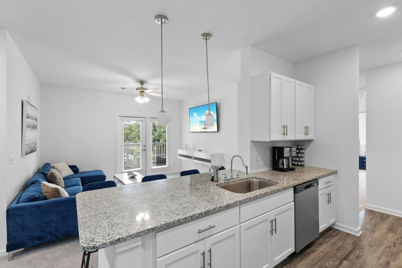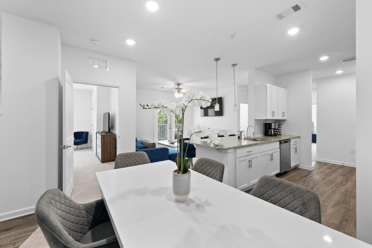 / nightStep into serene comfort at our newly constructed 3-bedroom, 2 bathroom (1,228 sqft) condo unit nestled in the westside neighborhood of Jacksonville, Florida. Located just minutes away from top attractions, renowned dining spots, premier shopping destinations, the esteemed Mayo Clinic, and the sun-kissed beaches, convenience and excitement begins at the front door! KEY FEATURES: ➝ New condo w/spacious open floor plan ➝ 3 comfortable bedrooms; 1 King, 1 Queen, 2 Doubles, 2 Twin (Bunk Bed) ➝ 2 bathrooms; walk-in shower and tub combo ➝ Full Kitchen w/stainless steel appliances ➝ High-speed wifi + tv in every bedroom ➝ Washer and dryer ➝ Free parking (2 spaces) ☆☆BEDROOMS☆☆ Each bedroom is tastefully decorated with timeless furnishings, complete set of linens and pillows, walk-in closet, and 42" Smart TV. ➝Bedroom 1: 1 King Bed (Private Bathroom) ➝Bedroom 2: 1 Queen Bed ➝Bedroom 3: 2 Double (Bottom bunk and Trundle) and 1 Twin Bed (Top bunk) + 1 Full bathroom shared with bedrooms 2&3 ☆☆BATHROOMS☆☆ The 2 bathrooms are perfect for freshening up after a day in the Florida sun. Each bathroom is equipped with shampoo, conditioner, and body wash so you don't have to worry about bringing your own. ☆☆KITCHEN & LIVING ROOM☆☆ This friendly home features a spacious living are with modern, clean decor and natural light. You'll love the open floor plan, making it easy to entertain your group while making delicious appetizers. The new construction kitchen is complete with newly stainless steel appliances and dining table with seating for 6, perfect for socializing with friends and family while making delicious meals. The simplistic lounge features a comfy sofa with chaise, a 65" HDTV making it the perfect room to gather with your group and enjoy some quality time together. You can also enjoy high-speed WiFi, making it easy to plan your next adventure or get some work done during your stay. ☆☆OUTSIDE SPACE☆☆ Make your way to the patio of the condo, where you'll find a peaceful atmosphere with the protected natural landscape. HOME DISTANCE IN MILES FROM: This stunning home is ideally located close to parks, the Naval Air Station, shopping, groceries, and the beach, making it a great location for tourists and business travelers alike. ➝ Jacksonville Naval Air Station (NAS JAX): 3.3 miles ➝ Jacksonville Zoo and Gardens: 19.4 miles ➝ Museum of Science & History (MOSH): 13.3 miles ➝ Friendship Fountain and St. Johns River Park: 13.3 miles ➝ Jacksonville Arboretum & Gardens: 25.2 miles ➝ Jacksonville Beach: 27.6 miles ➝ The Jacksonville Landing (shopping and dining complex) ➝ Jacksonville Int'l Airport (JAX): 28.4 miles ➝ Mayo Clinic: 24 miles ➝ Ikea: 17.5 miles ➝ Top Golf & iFly: 20.5 miles ➝ EverBank Stadium: 14.6 miles ➝ 121 Financial Ballpark: 14.6 miles ➝ Jacksonville Beach Boardwalk & Pier: 14 miles Guests will have access to the entire condo during their stay, with no shared spaces. Guests will access the home through keyless entry using a unique code provided through check-in message prior to reservation! Send a message if you need anything during your stay! With quick response time, we are here to make your stay seamless and enjoyable! The condo is located in the Westside neighborhood of Jacksonville, Florida. Westside is a vibrant and diverse community known for its convenient location and a wide range of amenities. The neighborhood boasts a mix of residential and commercial areas, offering residents easy access to shopping centers, restaurants, and entertainment options. With its proximity to major highways such as I-295 and I-10, commuting to other parts of Jacksonville is relatively convenient. The area surrounding area provides a pleasant environment for outdoor activities. Guests can enjoy parks like Confederate Point Park or take advantage of nearby recreational facilities such as golf courses and sports fields. Additionally, there are healthcare facilities, grocery stores, and other essential services within easy reach, contributing to the neighborhood's convenience and livability. Overall, Westside offers a welcoming atmosphere and a suburban feel while still providing access to the amenities and conveniences of city living. We recommend vehicle transportation for making the most of all that Jacksonville has to offer. ➝ 2 free parking spaces in the parking lot adjacent to the condo building. ➝ We offer complimentary WiFi. ➝ Free washer/dryer available in the home