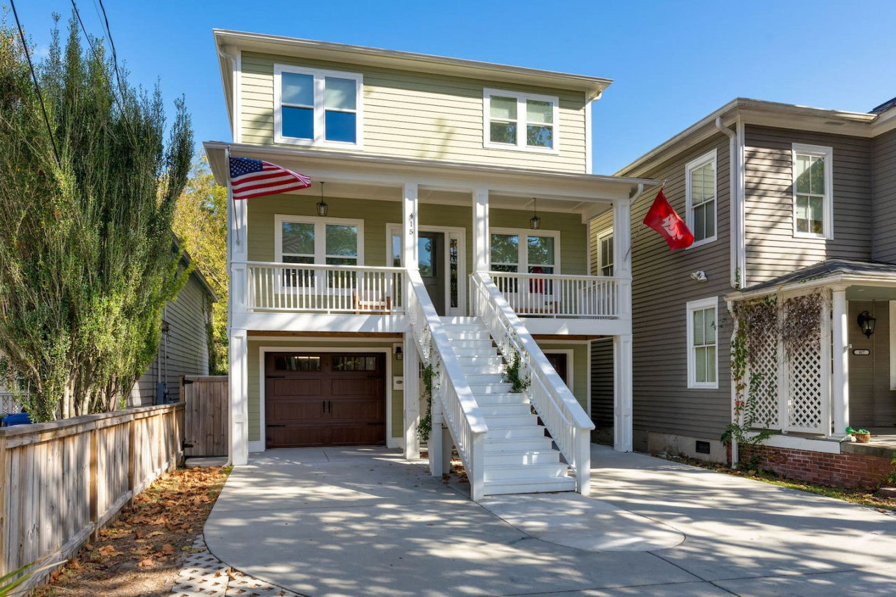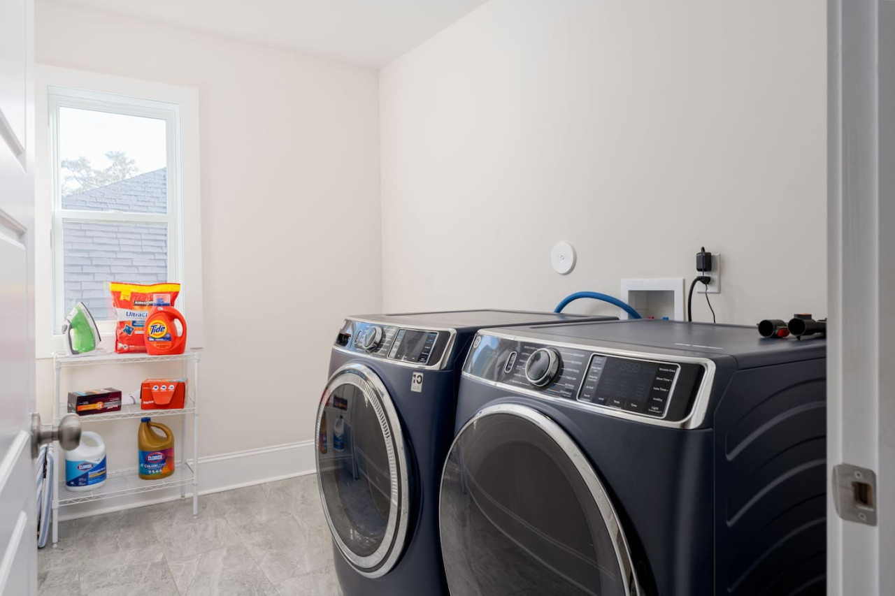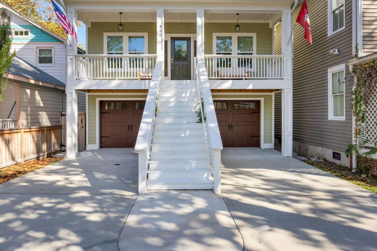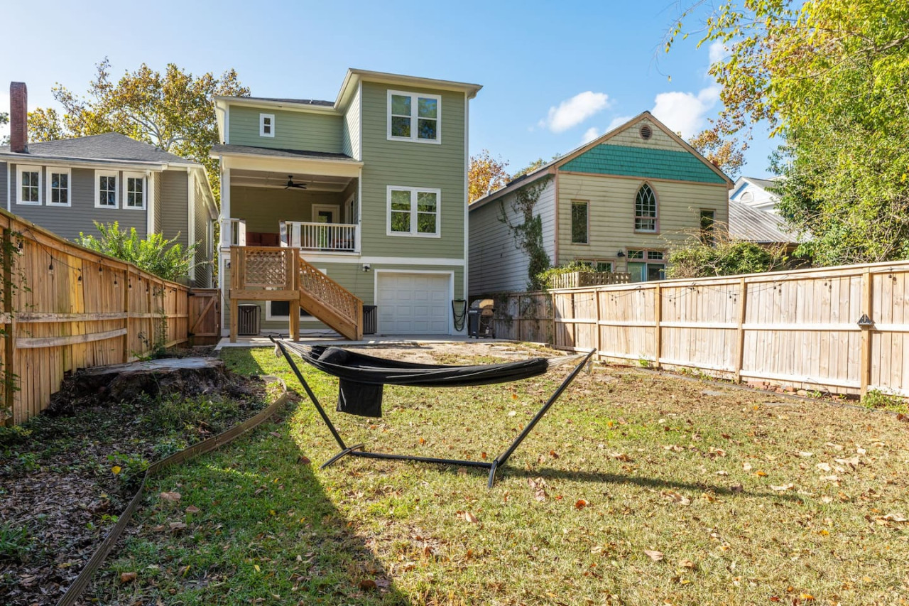 / nightThis spacious downtown Wilmington home offers everything you need for an unforgettable stay. From the expansive open-concept living room, the modern and inviting kitchen, the generous, rare-to-find driveway and garage parking space, to the fully fenced backyard- you won't be disappointed! Your entire group will have enough space to gather and to retreat, with 4 bedrooms ranging from 1st floor to 3rd floor, along with 3.5 bathrooms. Space, comfort, and the perfect location for your next getaway! KEY FEATURES: ➝ Large, modern home in Downtown Wilmington ➝ 4 bedrooms, 5 comfortable beds total ➝ 3.5 bathrooms; 2 walk-in showers and 1 shower/tub combo ➝ Modern, fully stocked kitchen w/stainless steel appliances ➝ High-speed wifi + TV in 3 bedrooms ➝ Washer and dryer ➝ Designated free parking in driveway and garage ➝ Fully fenced and spacious backyard ➝ BBQ Grill ☆☆BEDROOMS☆☆ ➝ Bedroom 1: 1 King Bed on 3rd Floor w/ Attached Bathroom, Walk-In Closet, and 70" TV ➝ Bedroom 2: 1 King Bed on 3rd Floor w/ 50" TV ➝ Bedroom 3: 2 Full Beds on 3rd Floor ➝ Bedroom 4: 1 Queen Bed on Ground Floor w/ Attached Bathroom, and 50" TV ☆☆BATHROOMS☆☆ ➝ Bathroom 1: Walk-In Shower attached to Master Bedroom ➝ Bathroom 2: Shower/Tub Combo in 3rd Floor Hallway ➝ Bathroom 3: Walk-In Shower on Ground Floor ➝ Half Bathroom: Off the Kitchen on 2nd Floor ☆☆LIVING ROOM☆☆ Step into this spacious, open-concept living room where comfort and style come together. Overlooking the kitchen, this bright and airy space is perfect for relaxing, entertaining, or spending quality time with family and friends. Large windows flood the room with natural light, creating a warm and inviting atmosphere throughout the day. The living room is designed for ultimate relaxation with ample seating, ideal for enjoying your favorite shows or movies on the impressive 85" TV. Whether you're lounging on the couch or cozying up in one of the chairs, there’s plenty of space for everyone to unwind. For those who need to get some work done, there's a dedicated workspace with a desk, so you can stay productive while enjoying the peaceful surroundings. If you're in the mood for a drink, the wine cabinet with cocktail shaker set is ready for you to craft your favorite mixtures. With plenty of space to gather, this living room is the perfect blend of functionality and comfort, making it an ideal spot for any occasion. ☆☆KITCHEN☆☆ Welcome to this bright and inviting modern kitchen, designed to inspire your culinary creativity! Bathed in natural light, the space features sleek stainless steel appliances, including a full-size refrigerator, stove, and oven, perfect for preparing meals with ease. The large kitchen island provides ample space for meal prep or gathering with friends and family, making it the heart of the home. Whether you're an experienced chef or just enjoy a simple meal, this kitchen is fully stocked with all the essentials for both cooking and baking—pots, pans, utensils, mixing bowls, and more. Coffee lovers will feel at home with a Keurig, drip coffee maker, and French press, so you can enjoy your favorite brew or our complimentary pods and grounds, to enjoy just the way you like it. ☆☆OUTSIDE SPACE☆☆ The exterior of this home is designed to offer plenty of space for relaxation and outdoor enjoyment. Start by unwinding on the charming front porch, where you can sip your morning coffee or enjoy the neighborhood breeze. Step around to the back, where the real outdoor living begins. The spacious backyard is fully fenced, providing privacy and a peaceful retreat. The back porch features comfortable patio furniture, perfect for al fresco dining or simply lounging in the fresh air overlooking the yard. For those who love to grill, a BBQ grill is ready for you to fire up and cook your favorite meals, while the hammock invites you to relax and take in the surroundings. One of the best features of the backyard is the seamless indoor-outdoor flow—open the garage door to create a unique hangout space that blends the comfort of the indoors with the freedom of the outdoors. HOME DISTANCE IN MILES FROM: This stunning home is ideally located in Downtown Wilmington, minutes from the Riverfront Boardwalk, some of our favorite local restaurants and shops, and only a quick drive to the beach. ➝ Central Downtown Wilmington: 1.2 miles ➝ ILM Airport: 4.5 miles ➝ Mayfair Town Center Shopping & Dining: 7.5 miles ➝ Wrightsville Beach: 9.7 miles ➝ Carolina Beach: 14.7 miles ➝ Live Oak Bank Pavilion: 2 miles ➝ The Cargo District: 0.9 miles Guests will have access to the entire 4-bedroom home during their stay and all amenities listed for use. Keyless Entry- Guests will be provided a unique door code in your check-in message 2 days prior to arrival. Parking- Guests will have access to the driveway with room to fit 2-3 vehicles comfortably as well as 2 garage spaces if needed. There is also free street parking. Send a message if you need anything during your stay. With quick response time and being local to the area, we hope to provide you with a seamless and enjoyable stay! Upon your arrival, we offer essential items like hand soap, dish soap, toilet paper, paper towels, and trash bags to start you off. For longer stays, kindly prepare to replenish these supplies according to your personal requirements. We ask that you take care of the home as if it were your own. We hope to provide a great space for all guests to unwind and relax during their time here!