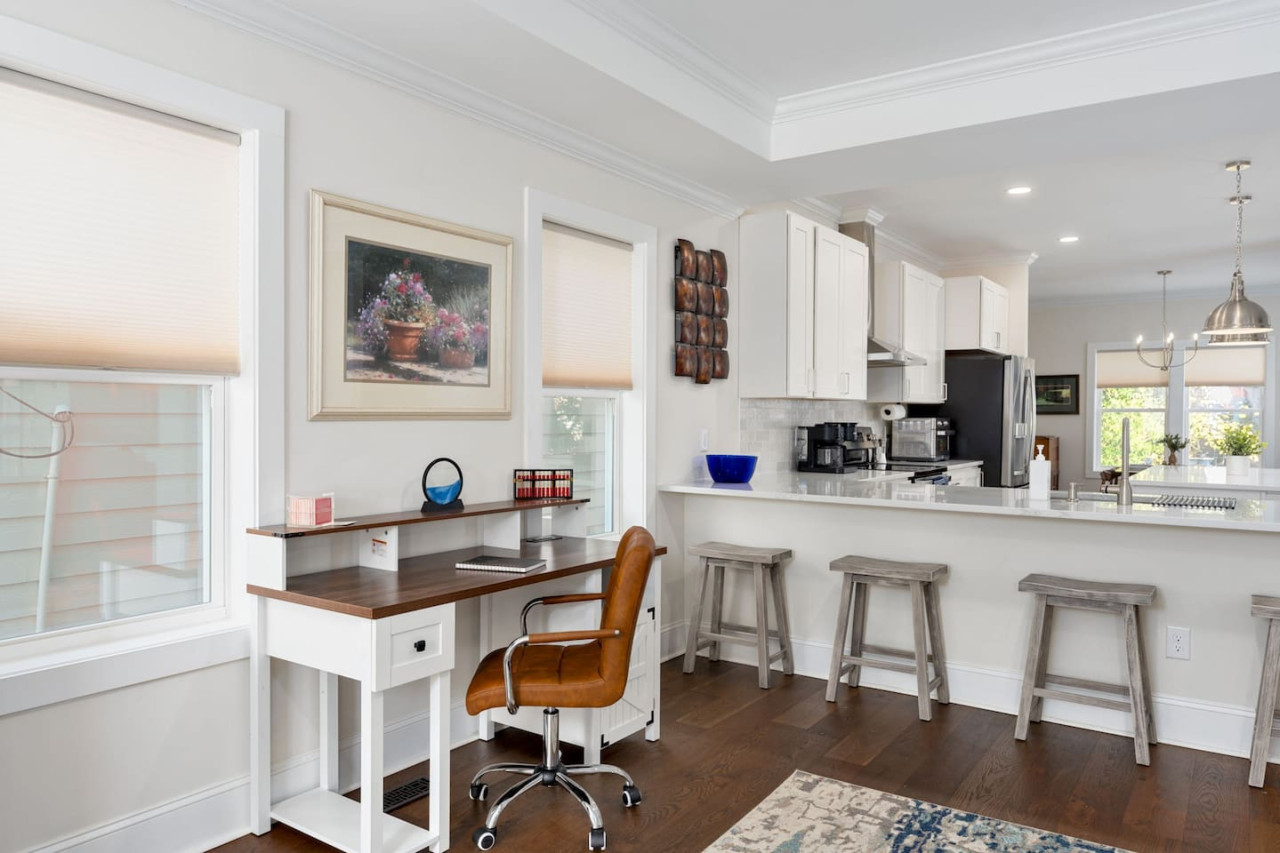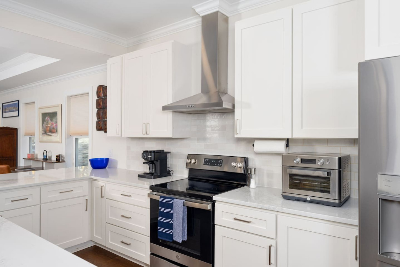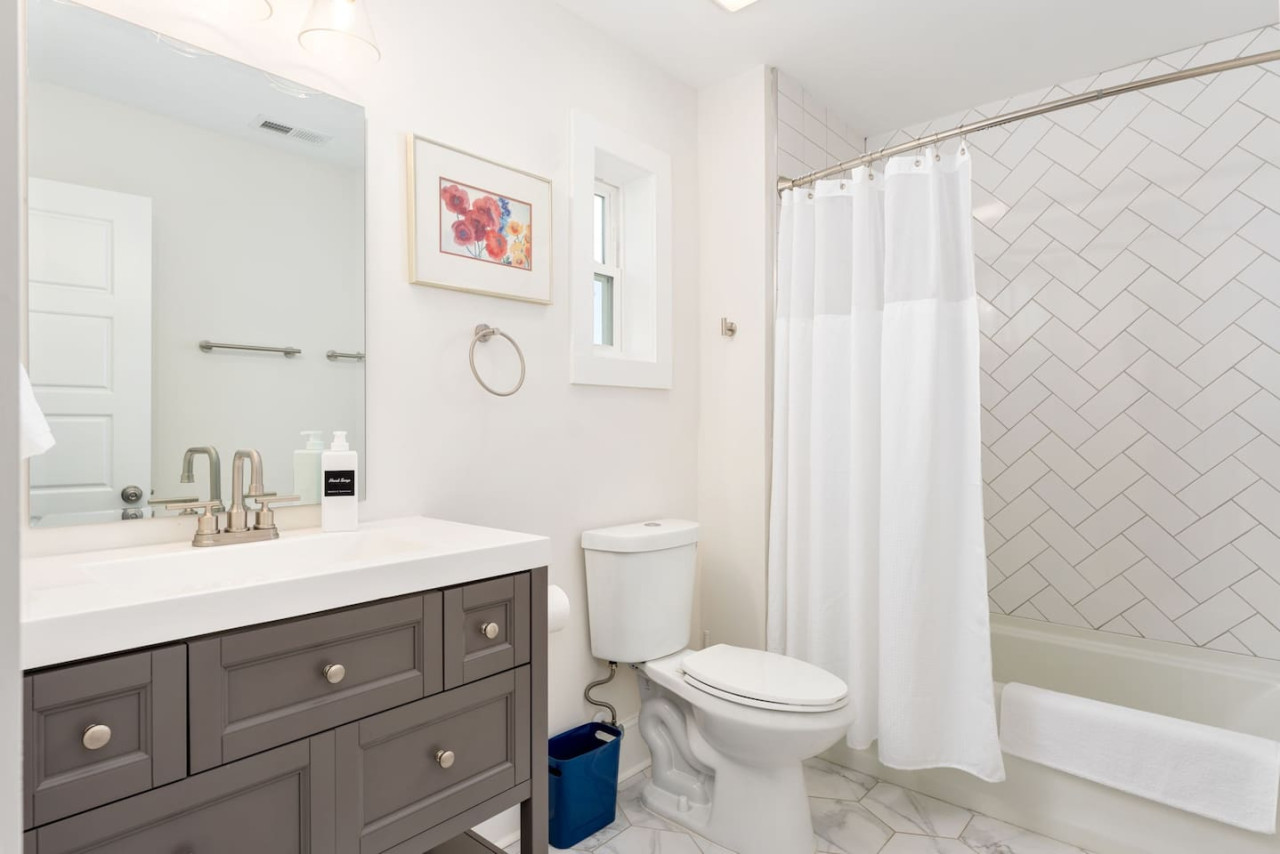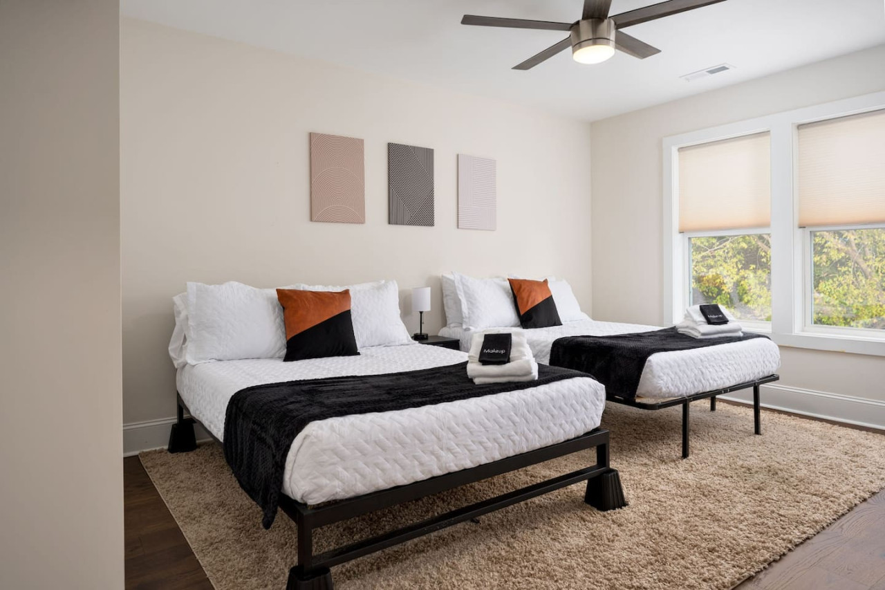 / nightThis spacious downtown Wilmington home offers everything you need for an unforgettable stay. From the expansive open-concept living room, the modern and inviting kitchen, the generous, rare-to-find driveway and garage parking space, to the fully fenced backyard- you won't be disappointed! Your entire group will have enough space to gather and to retreat, with 4 bedrooms ranging from 1st floor to 3rd floor, along with 3.5 bathrooms. Space, comfort, and the perfect location for your next getaway! KEY FEATURES: ➝ Large, modern home in Downtown Wilmington ➝ 4 bedrooms, 5 comfortable beds total ➝ 3.5 bathrooms; 2 walk-in showers and 1 shower/tub combo ➝ Modern, fully stocked kitchen w/stainless steel appliances ➝ High-speed wifi + TV in 3 bedrooms ➝ Washer and dryer ➝ Designated free parking in driveway and garage ➝ Fully fenced and spacious backyard ➝ BBQ Grill ☆☆BEDROOMS☆☆ ➝ Bedroom 1: 1 King Bed on 3rd Floor w/ Attached Bathroom, Walk-In Closet, and 70" TV ➝ Bedroom 2: 1 King Bed on 3rd Floor w/ 50" TV ➝ Bedroom 3: 2 Full Beds on 3rd Floor ➝ Bedroom 4: 1 Queen Bed on Ground Floor w/ Attached Bathroom, and 50" TV ☆☆BATHROOMS☆☆ ➝ Bathroom 1: Walk-In Shower attached to Master Bedroom ➝ Bathroom 2: Shower/Tub Combo in 3rd Floor Hallway ➝ Bathroom 3: Walk-In Shower on Ground Floor ➝ Half Bathroom: Off the Kitchen on 2nd Floor ☆☆LIVING ROOM☆☆ Step into this spacious, open-concept living room where comfort and style come together. Overlooking the kitchen, this bright and airy space is perfect for relaxing, entertaining, or spending quality time with family and friends. Large windows flood the room with natural light, creating a warm and inviting atmosphere throughout the day. The living room is designed for ultimate relaxation with ample seating, ideal for enjoying your favorite shows or movies on the impressive 85" TV. Whether you're lounging on the couch or cozying up in one of the chairs, there’s plenty of space for everyone to unwind. For those who need to get some work done, there's a dedicated workspace with a desk, so you can stay productive while enjoying the peaceful surroundings. If you're in the mood for a drink, the wine cabinet with cocktail shaker set is ready for you to craft your favorite mixtures. With plenty of space to gather, this living room is the perfect blend of functionality and comfort, making it an ideal spot for any occasion. ☆☆KITCHEN☆☆ Welcome to this bright and inviting modern kitchen, designed to inspire your culinary creativity! Bathed in natural light, the space features sleek stainless steel appliances, including a full-size refrigerator, stove, and oven, perfect for preparing meals with ease. The large kitchen island provides ample space for meal prep or gathering with friends and family, making it the heart of the home. Whether you're an experienced chef or just enjoy a simple meal, this kitchen is fully stocked with all the essentials for both cooking and baking—pots, pans, utensils, mixing bowls, and more. Coffee lovers will feel at home with a Keurig, drip coffee maker, and French press, so you can enjoy your favorite brew or our complimentary pods and grounds, to enjoy just the way you like it. ☆☆OUTSIDE SPACE☆☆ The exterior of this home is designed to offer plenty of space for relaxation and outdoor enjoyment. Start by unwinding on the charming front porch, where you can sip your morning coffee or enjoy the neighborhood breeze. Step around to the back, where the real outdoor living begins. The spacious backyard is fully fenced, providing privacy and a peaceful retreat. The back porch features comfortable patio furniture, perfect for al fresco dining or simply lounging in the fresh air overlooking the yard. For those who love to grill, a BBQ grill is ready for you to fire up and cook your favorite meals, while the hammock invites you to relax and take in the surroundings. One of the best features of the backyard is the seamless indoor-outdoor flow—open the garage door to create a unique hangout space that blends the comfort of the indoors with the freedom of the outdoors. HOME DISTANCE IN MILES FROM: This stunning home is ideally located in Downtown Wilmington, minutes from the Riverfront Boardwalk, some of our favorite local restaurants and shops, and only a quick drive to the beach. ➝ Central Downtown Wilmington: 1.2 miles ➝ ILM Airport: 4.5 miles ➝ Mayfair Town Center Shopping & Dining: 7.5 miles ➝ Wrightsville Beach: 9.7 miles ➝ Carolina Beach: 14.7 miles ➝ Live Oak Bank Pavilion: 2 miles ➝ The Cargo District: 0.9 miles Guests will have access to the entire 4-bedroom home during their stay and all amenities listed for use. Keyless Entry- Guests will be provided a unique door code in your check-in message 2 days prior to arrival. Parking- Guests will have access to the driveway with room to fit 2-3 vehicles comfortably as well as 2 garage spaces if needed. There is also free street parking. Send a message if you need anything during your stay. With quick response time and being local to the area, we hope to provide you with a seamless and enjoyable stay! Upon your arrival, we offer essential items like hand soap, dish soap, toilet paper, paper towels, and trash bags to start you off. For longer stays, kindly prepare to replenish these supplies according to your personal requirements. We ask that you take care of the home as if it were your own. We hope to provide a great space for all guests to unwind and relax during their time here!
