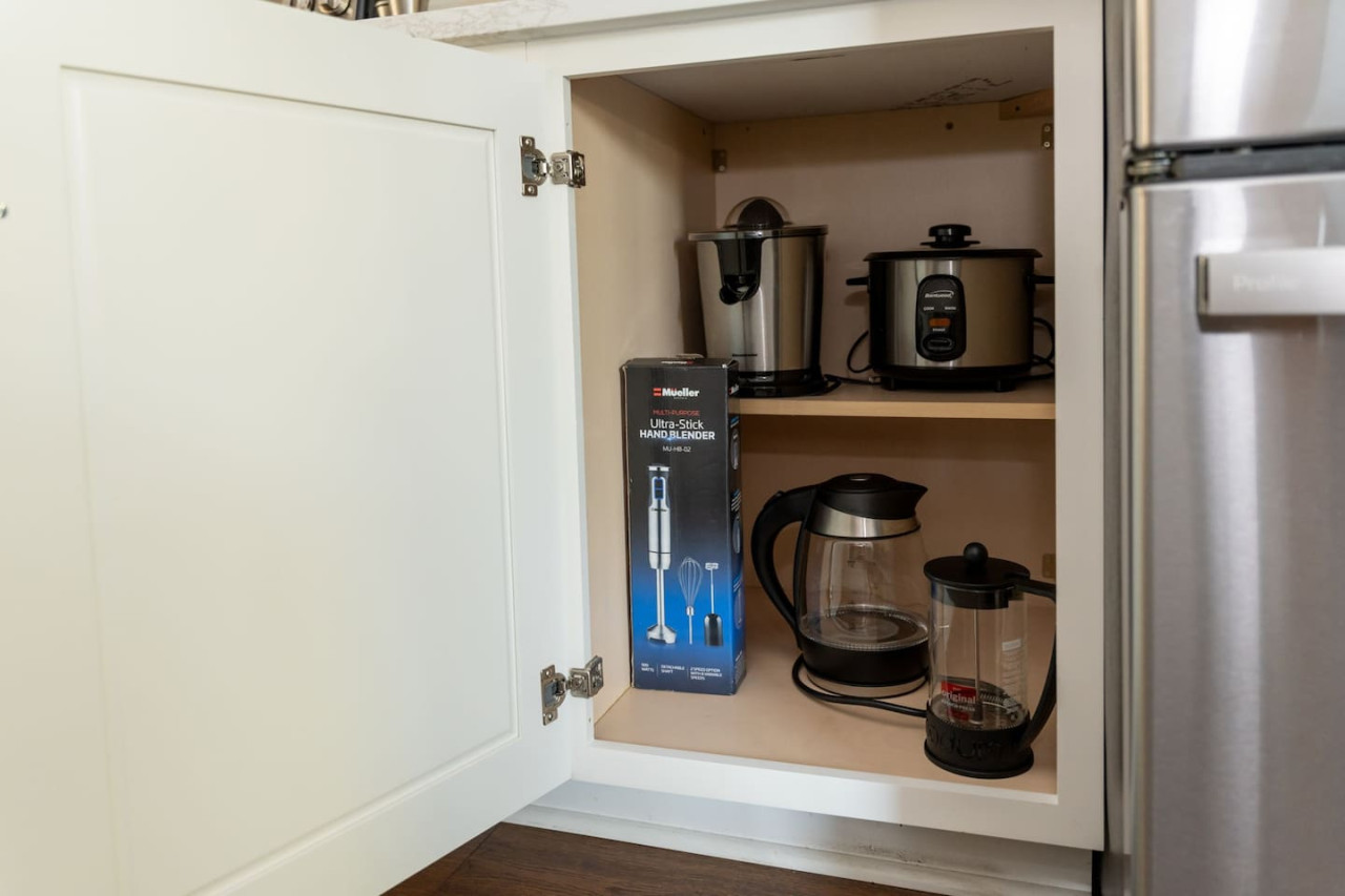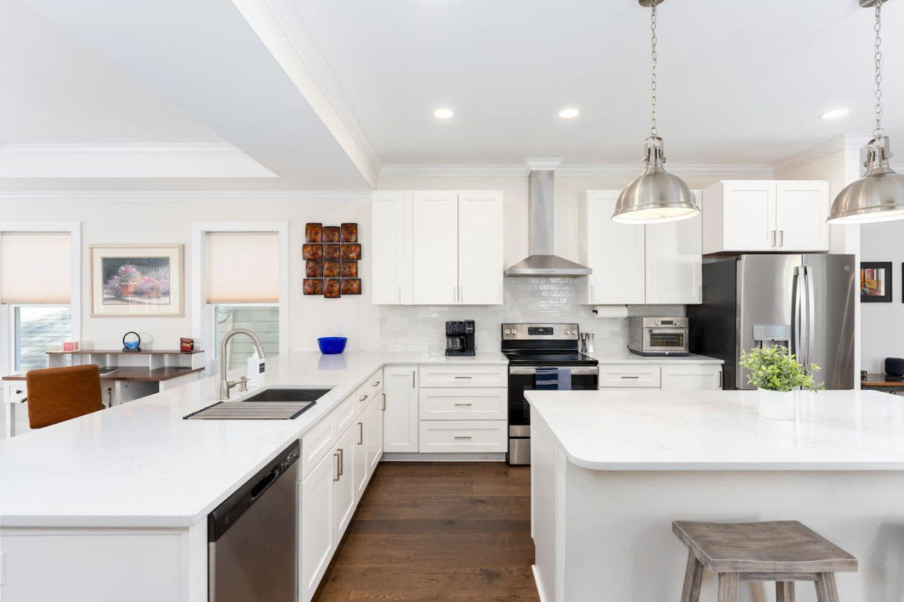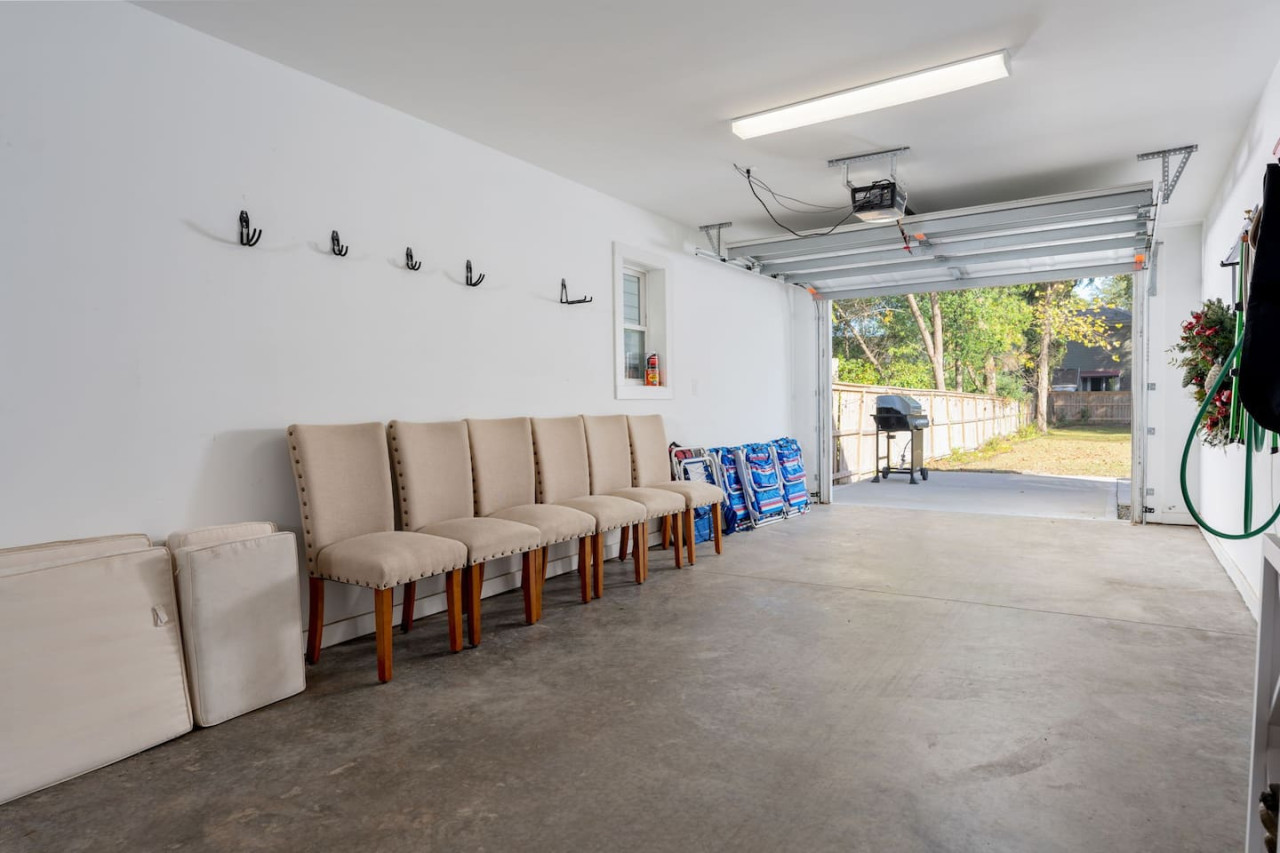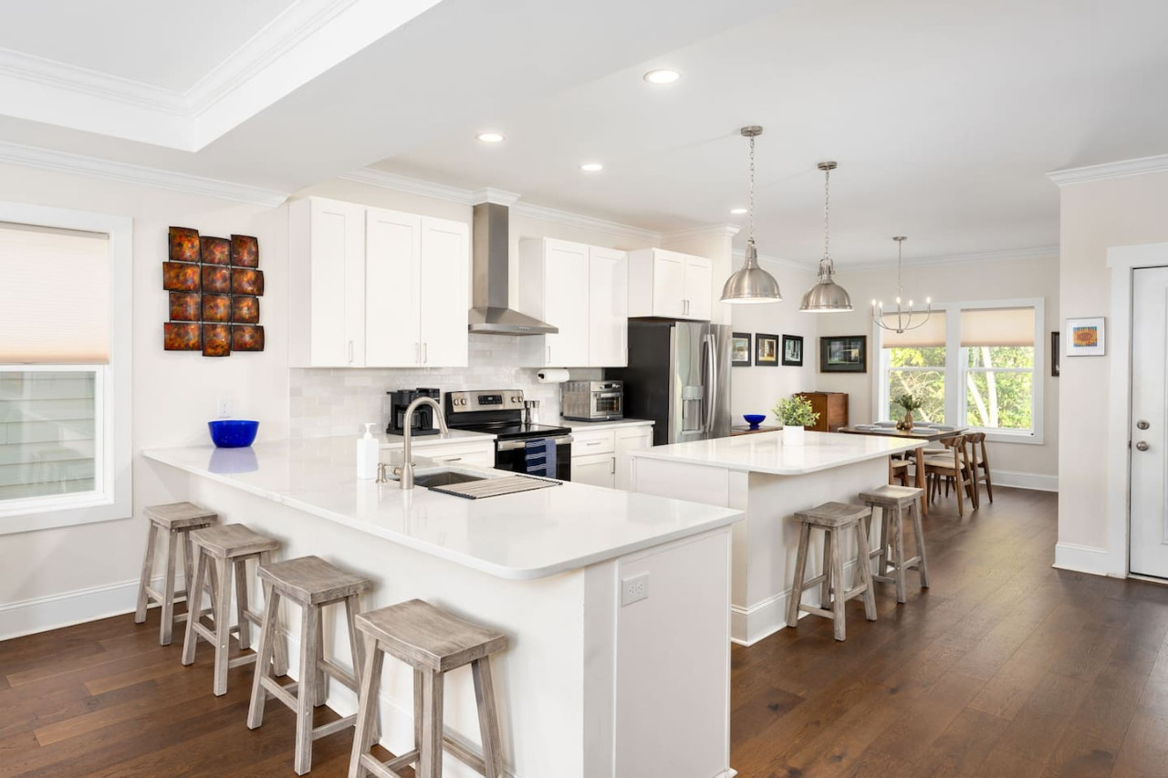 / nightThis spacious downtown Wilmington home offers everything you need for an unforgettable stay. From the expansive open-concept living room, the modern and inviting kitchen, the generous, rare-to-find driveway and garage parking space, to the fully fenced backyard- you won't be disappointed! Your entire group will have enough space to gather and to retreat, with 4 bedrooms ranging from 1st floor to 3rd floor, along with 3.5 bathrooms. Space, comfort, and the perfect location for your next getaway! KEY FEATURES: ➝ Large, modern home in Downtown Wilmington ➝ 4 bedrooms, 5 comfortable beds total ➝ 3.5 bathrooms; 2 walk-in showers and 1 shower/tub combo ➝ Modern, fully stocked kitchen w/stainless steel appliances ➝ High-speed wifi + TV in 3 bedrooms ➝ Washer and dryer ➝ Designated free parking in driveway and garage ➝ Fully fenced and spacious backyard ➝ BBQ Grill ☆☆BEDROOMS☆☆ ➝ Bedroom 1: 1 King Bed on 3rd Floor w/ Attached Bathroom, Walk-In Closet, and 70" TV ➝ Bedroom 2: 1 King Bed on 3rd Floor w/ 50" TV ➝ Bedroom 3: 2 Full Beds on 3rd Floor ➝ Bedroom 4: 1 Queen Bed on Ground Floor w/ Attached Bathroom, and 50" TV ☆☆BATHROOMS☆☆ ➝ Bathroom 1: Walk-In Shower attached to Master Bedroom ➝ Bathroom 2: Shower/Tub Combo in 3rd Floor Hallway ➝ Bathroom 3: Walk-In Shower on Ground Floor ➝ Half Bathroom: Off the Kitchen on 2nd Floor ☆☆LIVING ROOM☆☆ Step into this spacious, open-concept living room where comfort and style come together. Overlooking the kitchen, this bright and airy space is perfect for relaxing, entertaining, or spending quality time with family and friends. Large windows flood the room with natural light, creating a warm and inviting atmosphere throughout the day. The living room is designed for ultimate relaxation with ample seating, ideal for enjoying your favorite shows or movies on the impressive 85" TV. Whether you're lounging on the couch or cozying up in one of the chairs, there’s plenty of space for everyone to unwind. For those who need to get some work done, there's a dedicated workspace with a desk, so you can stay productive while enjoying the peaceful surroundings. If you're in the mood for a drink, the wine cabinet with cocktail shaker set is ready for you to craft your favorite mixtures. With plenty of space to gather, this living room is the perfect blend of functionality and comfort, making it an ideal spot for any occasion. ☆☆KITCHEN☆☆ Welcome to this bright and inviting modern kitchen, designed to inspire your culinary creativity! Bathed in natural light, the space features sleek stainless steel appliances, including a full-size refrigerator, stove, and oven, perfect for preparing meals with ease. The large kitchen island provides ample space for meal prep or gathering with friends and family, making it the heart of the home. Whether you're an experienced chef or just enjoy a simple meal, this kitchen is fully stocked with all the essentials for both cooking and baking—pots, pans, utensils, mixing bowls, and more. Coffee lovers will feel at home with a Keurig, drip coffee maker, and French press, so you can enjoy your favorite brew or our complimentary pods and grounds, to enjoy just the way you like it. ☆☆OUTSIDE SPACE☆☆ The exterior of this home is designed to offer plenty of space for relaxation and outdoor enjoyment. Start by unwinding on the charming front porch, where you can sip your morning coffee or enjoy the neighborhood breeze. Step around to the back, where the real outdoor living begins. The spacious backyard is fully fenced, providing privacy and a peaceful retreat. The back porch features comfortable patio furniture, perfect for al fresco dining or simply lounging in the fresh air overlooking the yard. For those who love to grill, a BBQ grill is ready for you to fire up and cook your favorite meals, while the hammock invites you to relax and take in the surroundings. One of the best features of the backyard is the seamless indoor-outdoor flow—open the garage door to create a unique hangout space that blends the comfort of the indoors with the freedom of the outdoors. HOME DISTANCE IN MILES FROM: This stunning home is ideally located in Downtown Wilmington, minutes from the Riverfront Boardwalk, some of our favorite local restaurants and shops, and only a quick drive to the beach. ➝ Central Downtown Wilmington: 1.2 miles ➝ ILM Airport: 4.5 miles ➝ Mayfair Town Center Shopping & Dining: 7.5 miles ➝ Wrightsville Beach: 9.7 miles ➝ Carolina Beach: 14.7 miles ➝ Live Oak Bank Pavilion: 2 miles ➝ The Cargo District: 0.9 miles Guests will have access to the entire 4-bedroom home during their stay and all amenities listed for use. Keyless Entry- Guests will be provided a unique door code in your check-in message 2 days prior to arrival. Parking- Guests will have access to the driveway with room to fit 2-3 vehicles comfortably as well as 2 garage spaces if needed. There is also free street parking. Send a message if you need anything during your stay. With quick response time and being local to the area, we hope to provide you with a seamless and enjoyable stay! Upon your arrival, we offer essential items like hand soap, dish soap, toilet paper, paper towels, and trash bags to start you off. For longer stays, kindly prepare to replenish these supplies according to your personal requirements. We ask that you take care of the home as if it were your own. We hope to provide a great space for all guests to unwind and relax during their time here!