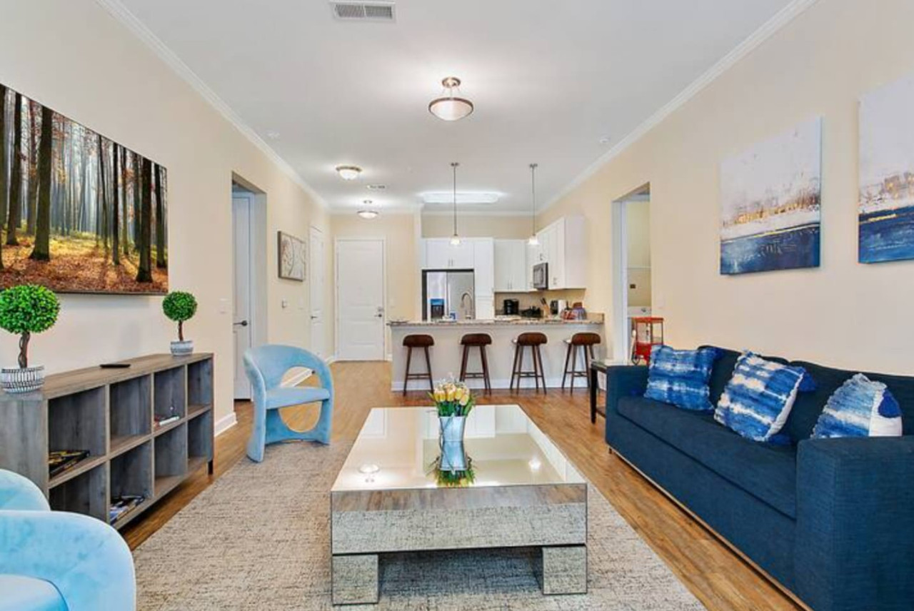 / nightPrepare for an unforgettable getaway at this charming, impeccably designed 2-bedroom retreat! Whether you're seeking a vacation or a staycation, this is the ideal destination for you. Enjoy access to resort-style amenities such as a beach-entry pool, tennis courts, a fitness center, and much more. Rest assured, this unit is thoughtfully furnished with all the comforts of home to ensure a truly seamless experience during your stay. KEY FEATURES: ➝ New construction, resort-style apartment w/spacious floor plan ➝ 2 comfortable bedrooms; 1 King, 1 Queen, 1 Queen size sofa bed ➝ 2.5 bathrooms; tub/shower combo ➝ Smart TV in every room ➝ Full Kitchen w/stainless steel appliances ➝ High-speed wifi ➝ Washer and dryer ➝ Free parking ➝ Screened in patio ☆☆AMENITIES☆☆ ➝ Beach Entry Swimming Pool with Sun Loungers ➝ Tennis Courts ➝ Entertainment Pavilion with Grills and Lounge Space ➝ Movie Theater Room ➝ 24 Hour Fitness Health Club ➝ Arcade Room with Gaming Station ➝ Playground with Picnic Area ➝ Private Office Options and a Conference Room ☆☆BEDROOMS☆☆ The bedrooms are tastefully decorated with timeless furnishings, complete sets of linens and pillows, walk-in closet, and Smart TVs. ➝ Bedroom 1: 1 King Bed (Private Bathroom) ➝ Bedroom 2: 1 Queen Bed (Private Bathroom) ☆☆BATHROOM☆☆ The bathroom is perfect for freshening up after a day in the Florida sun. It comes equipped with shampoo, conditioner, and body wash so you don't have to worry about bringing your own. ☆☆KITCHEN & LIVING ROOM☆☆ Step into the spacious living area designed with modern decor. The open floor plan is perfect for entertaining in the living room, while whipping up some tasty snacks. The kitchen is fully equipped with stainless steel appliances and seating for four at the counter bar. In the comfy lounge area, you'll find a cushy sofa and two extra chairs, plus a 70" TV for some serious relaxation time with your crew. And don't worry about staying connected—we've got high-speed WiFi, so you can easily plan your next adventure or get some work done while you're here. ☆☆OUTSIDE SPACE☆☆ Enjoy the warm weather without the harsh sun on the screened in patio with seating! HOME DISTANCE IN MILES FROM: This stunning home is ideally located close to parks, the Mayo Clinic, shopping, groceries, and the beach, making it a great location for tourists and business travelers alike. ➝ Jacksonville Int'l Airport (JAX): 24 miles ➝ Mayo Clinic: 7 miles ➝ St. Johns Town Center: 5 miles ➝ Avenues Mall: 7 miles ➝ St. Augustine Premium Outlets: 24 miles ➝ Ikea: 1.5 miles ➝ Top Golf & iFly: 5 miles ➝ Fort Family Regional Park: 4 miles ➝ EverBank Stadium: 13 miles ➝ 121 Financial Ballpark: 13 miles ➝ Jacksonville Zoo & Gardens: 19 miles ➝ Ponte Vedra Beach: 12 miles ➝ Jacksonville Beach Boardwalk & Pier: 13 miles ➝ Atlantic Beach: 15 miles Guests will have access to the entire 2-bedroom apartment unit on the first floor during their stay and all amenities listed above for use. Send a message if you need anything during your stay! With quick response time, we are here to make your stay seamless and enjoyable! Bartram Park is one of the fastest growing areas in all of Northeast Florida and is referred to as “Jacksonville’s Southern Gateway.” This neighborhood is great for work, relaxing, family vacations, or solo adventures. Easy and free parking. A short walk to the amenity center and tennis courts. We recommend a vehicle for exploring all that Jacksonville has to offer! Upon your arrival, we offer essential items like hand soap, dish soap, toilet paper, paper towels, and trash bags to start you off. For longer stays, kindly prepare to replenish these supplies according to your personal requirements. We ask that you take care of the home as if it were your own. We hope to provide a great space for all guests to unwind and relax during their time here!