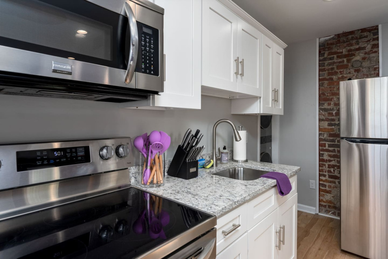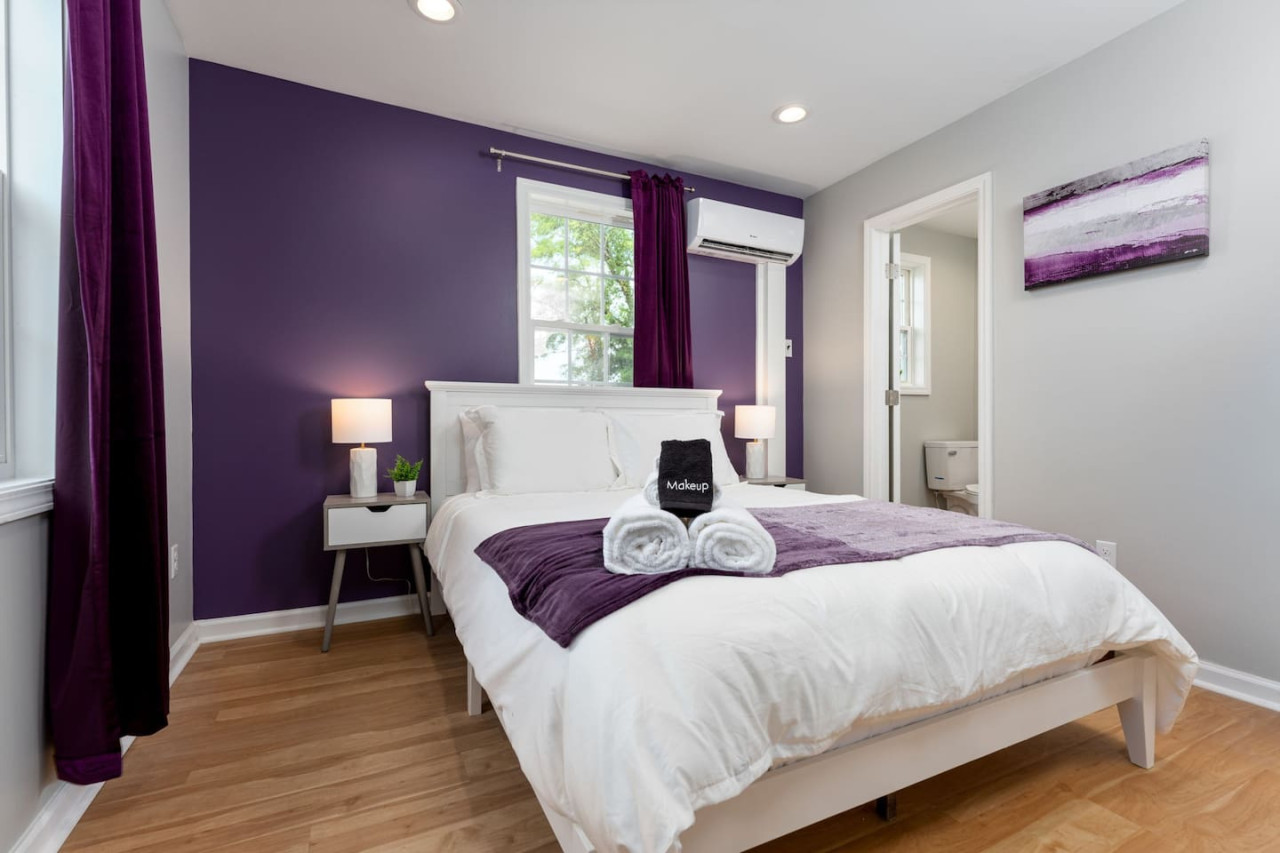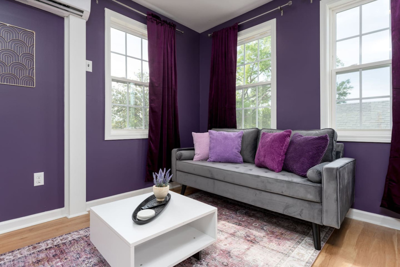 / night1 Bedroom Apartment Downtown! Welcome to your lavender sanctuary where shades of purple bring you a sense of calm. This lovely second floor apartment has been thoughtfully decorated with the perfect balance of hues, creating an atmosphere that is both soothing and uplifting. Come home to this beautiful space and find the peace you deserve! -TV w/ Streaming Services -Free on-site parking -High Speed Wi-Fi -5 min to Live Oak Bank Pavilion -3 min to Central Downtown ILM -16 min to Wrightsville Beach -7 min to ILM Airport The space This home is 1 of 4 connected units in a quadruplex. This is not a shared space, and you will have access to the entire 1 bedroom, 1 bathroom unit during your stay. The entrance to the home is clearly labeled with unit number for convenience. Once entering the door and taking a quick climb upstairs, you are welcomed into the colorful space. The living room has a 43" TV with streaming services for your convenience. The bar top is perfect for your morning bowl of cereal or dinner before heading to the concert downtown! The kitchen is fully stocked with all essentials you may need to cook or prepare a meal, as well as has stainless steel appliances readily available including stove/oven, microwave, refrigerator/freezer, washer and dryer. Through to the bedroom, you will find a comfortable queen size bed and attached bathroom with walk-in shower. Towels, linens, and complimentary shower/bathroom essentials are provided for your convenience. Guest access Keyless Entry- Guests will be provided a unique door code for entry. This code will be used on the keypad providing access to the front door. Parking- Parking for the home is a designated gravel parking lot behind the home, which can be found by driving around the corner to Grace St. and pulling into the alley way that leads to the rear of the home. Parking in front of the home is also available on a first come, first serve basis. We ask that you park mindfully and follow guidelines of any signage or marked spaces. Other things to note We ask that you take care of the home as if it were your own. We hope to provide a great space for all guests to unwind and relax during their time here! Pet friendly! This unit is dog friendly with payment of $75 pet fee. Check in is at 4 PM and Check out is at 10 AM. We do not offer early check ins or late check outs during the high season. Entry- Guests will be provided a door code for entry. Parking- Parking for the home is a designated gravel parking lot behind the home, which can be found by driving around the corner to Grace St. and pulling into the alley way that leads to the rear of the home. Parking in front of the home is also available on a first come, first serve basis. We ask that you park mindfully and follow guidelines of any signage or marked spaces. Send a message if you need anything during your stay. With quick response time and being local to the area, we hope to provide you with a seamless and enjoyable stay! While not located in a neighborhood, this home is very nearby to local dining, entertainment, and shops! If you have a specific event coming up and would like to know the distance, send us a message and we will be happy to help with providing this information. We recommend a car to be able to easily explore all Wilmington, NC has to offer. We ask that you take care of the home as if it were your own. We hope to provide a great space for all guests to unwind and relax during their time here!