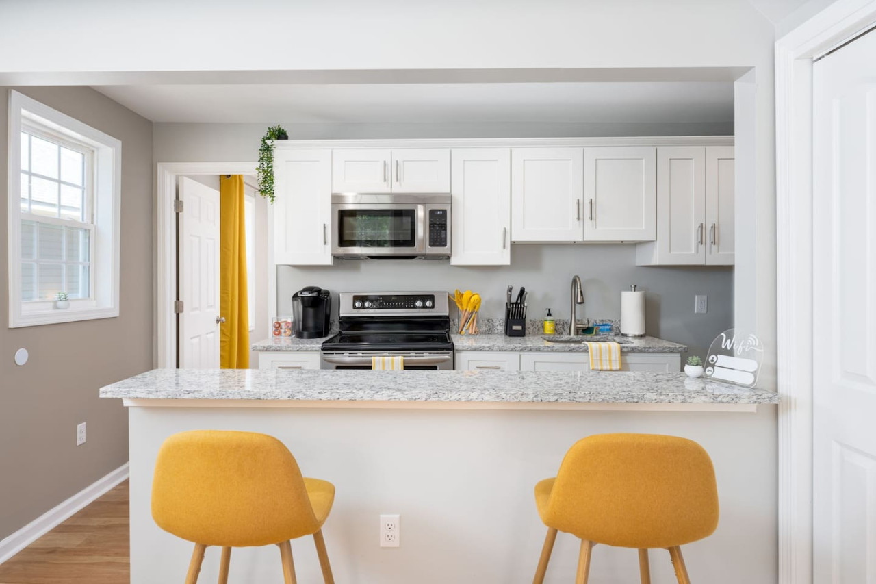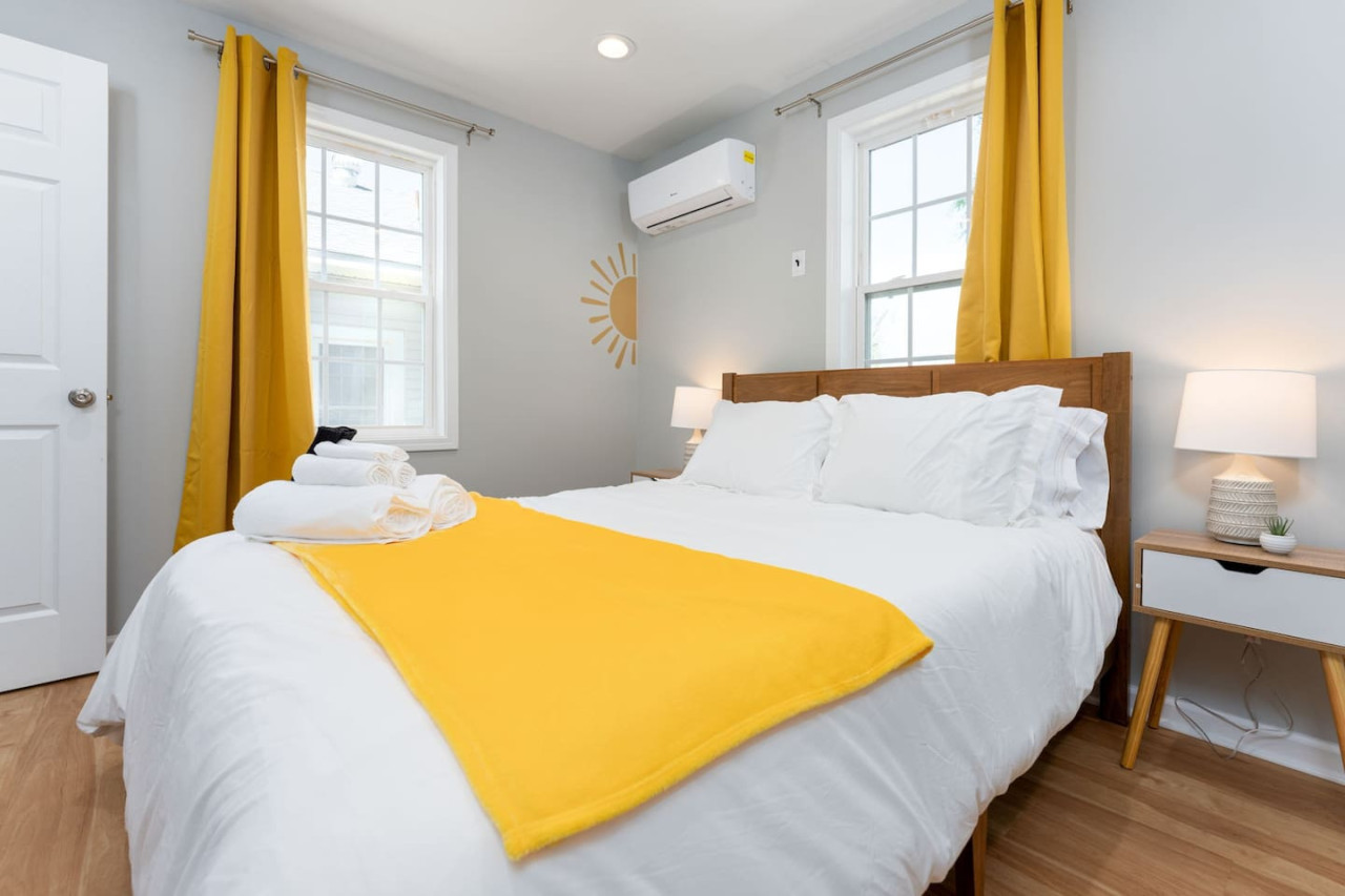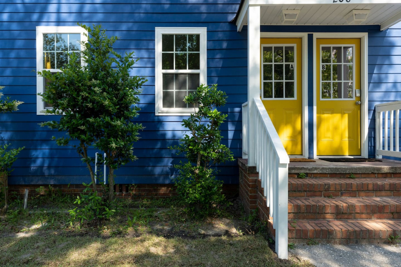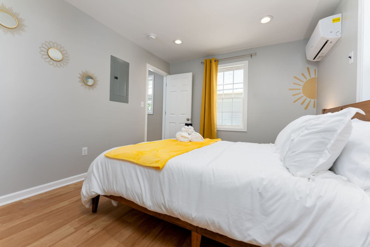 / night1 Bedroom Apartment Downtown! Welcome to your sunny stay! This charming first floor apartment is decorated with vibrant yellow hues, evoking feelings of warmth and happiness. Offering both comfort and personality, this home is perfect for your next getaway to Downtown Wilmington! -TV w/ Streaming Services -Free on-site parking -High Speed Wi-Fi -5 min to Live Oak Bank Pavilion -3 min to Central Downtown ILM -16 min to Wrightsville Beach -7 min to ILM Airport The space This home is 1 of 4 connected units in a quadruplex. This is not a shared space, and you will have access to the entire 1 bedroom, 1 bathroom unit during your stay. The entrance to the home is clearly labeled with unit number for convenience. Once entering the door you are welcomed into the colorful space! The living room has a 65" TV with streaming services for your convenience. The bar top is perfect for your morning bowl of cereal or dinner before heading to the concert downtown! The kitchen is fully stocked with all essentials you may need to cook or prepare a meal, as well as has stainless steel appliances readily available including stove/oven, microwave, refrigerator/freezer, washer and dryer. Through to the bedroom, you will find a comfortable queen size bed and attached bathroom with walk-in shower. Towels, linens, and complimentary shower/bathroom essentials are provided for your convenience. Guest access Keyless Entry- Guests will be provided a unique door code for entry. This code will be used on the keypad providing access to the front door. Parking- Parking for the home is a designated gravel parking lot behind the home, which can be found by driving around the corner to Grace St. and pulling into the alley way that leads to the rear of the home. Parking in front of the home is also available on a first come, first serve basis. We ask that you park mindfully and follow guidelines of any signage or marked spaces. Other things to note We ask that you take care of the home as if it were your own. We hope to provide a great space for all guests to unwind and relax during their time here! Pet friendly! This unit is dog friendly with payment of $75 pet fee. Check in is at 4 PM and Check out is at 10 AM. We do not offer early check ins or late check outs during the high season. You will be staying in Unit D, "The Sunny Stay". Parking- Parking for the home is a designated gravel parking lot behind the home, which can be found by driving around the corner to Grace St. and pulling into the alley way that leads to the rear of the home. Parking in front of the home is also available at a first come first serve basis. We ask that you park mindfully and follow guidelines of any signage or marked spaces. Send a message if you need anything during your stay. With quick response time and being local to the area, we hope to provide you with a seamless and enjoyable stay! While not located in a neighborhood, this home is very nearby to local dining, entertainment, and shops! If you have a specific event coming up and would like to know the distance, send us a message and we will be happy to help with providing this information. We recommend a car to be able to easily explore all Wilmington, NC has to offer. We ask that you take care of the home as if it were your own. We hope to provide a great space for all guests to unwind and relax during their time here!