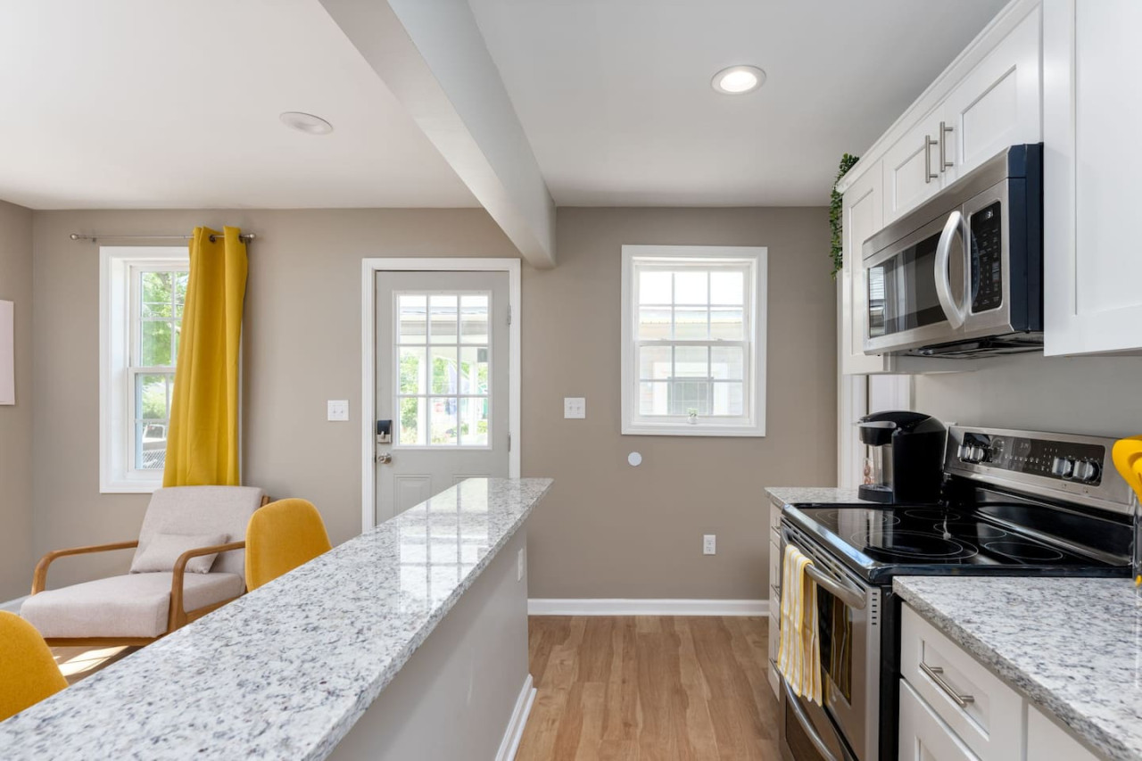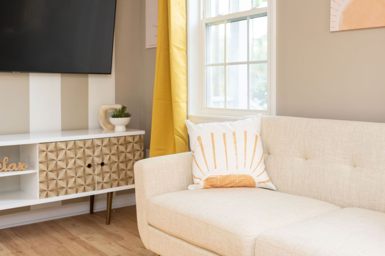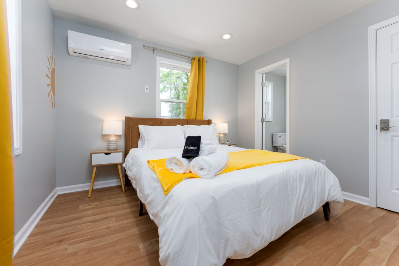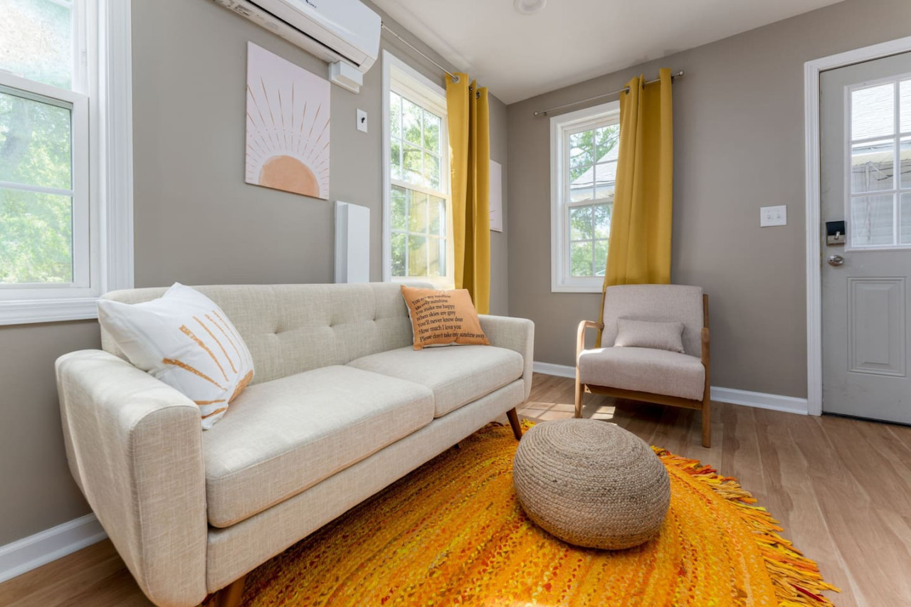 / night1 Bedroom Apartment Downtown! Welcome to your sunny stay! This charming first floor apartment is decorated with vibrant yellow hues, evoking feelings of warmth and happiness. Offering both comfort and personality, this home is perfect for your next getaway to Downtown Wilmington! -TV w/ Streaming Services -Free on-site parking -High Speed Wi-Fi -5 min to Live Oak Bank Pavilion -3 min to Central Downtown ILM -16 min to Wrightsville Beach -7 min to ILM Airport The space This home is 1 of 4 connected units in a quadruplex. This is not a shared space, and you will have access to the entire 1 bedroom, 1 bathroom unit during your stay. The entrance to the home is clearly labeled with unit number for convenience. Once entering the door you are welcomed into the colorful space! The living room has a 65" TV with streaming services for your convenience. The bar top is perfect for your morning bowl of cereal or dinner before heading to the concert downtown! The kitchen is fully stocked with all essentials you may need to cook or prepare a meal, as well as has stainless steel appliances readily available including stove/oven, microwave, refrigerator/freezer, washer and dryer. Through to the bedroom, you will find a comfortable queen size bed and attached bathroom with walk-in shower. Towels, linens, and complimentary shower/bathroom essentials are provided for your convenience. Guest access Keyless Entry- Guests will be provided a unique door code for entry. This code will be used on the keypad providing access to the front door. Parking- Parking for the home is a designated gravel parking lot behind the home, which can be found by driving around the corner to Grace St. and pulling into the alley way that leads to the rear of the home. Parking in front of the home is also available on a first come, first serve basis. We ask that you park mindfully and follow guidelines of any signage or marked spaces. Other things to note We ask that you take care of the home as if it were your own. We hope to provide a great space for all guests to unwind and relax during their time here! Pet friendly! This unit is dog friendly with payment of $75 pet fee. Check in is at 4 PM and Check out is at 10 AM. We do not offer early check ins or late check outs during the high season. You will be staying in Unit D, "The Sunny Stay". Parking- Parking for the home is a designated gravel parking lot behind the home, which can be found by driving around the corner to Grace St. and pulling into the alley way that leads to the rear of the home. Parking in front of the home is also available at a first come first serve basis. We ask that you park mindfully and follow guidelines of any signage or marked spaces. Send a message if you need anything during your stay. With quick response time and being local to the area, we hope to provide you with a seamless and enjoyable stay! While not located in a neighborhood, this home is very nearby to local dining, entertainment, and shops! If you have a specific event coming up and would like to know the distance, send us a message and we will be happy to help with providing this information. We recommend a car to be able to easily explore all Wilmington, NC has to offer. We ask that you take care of the home as if it were your own. We hope to provide a great space for all guests to unwind and relax during their time here!