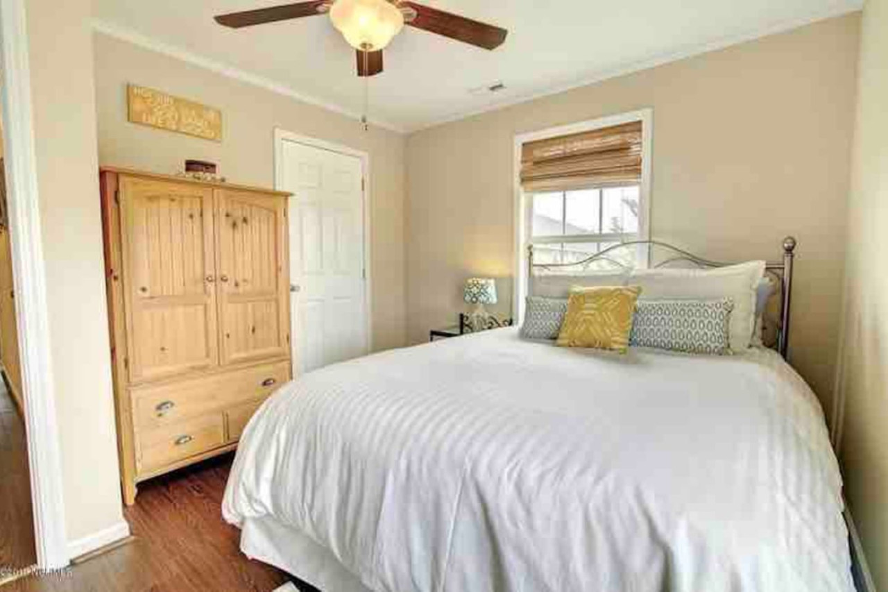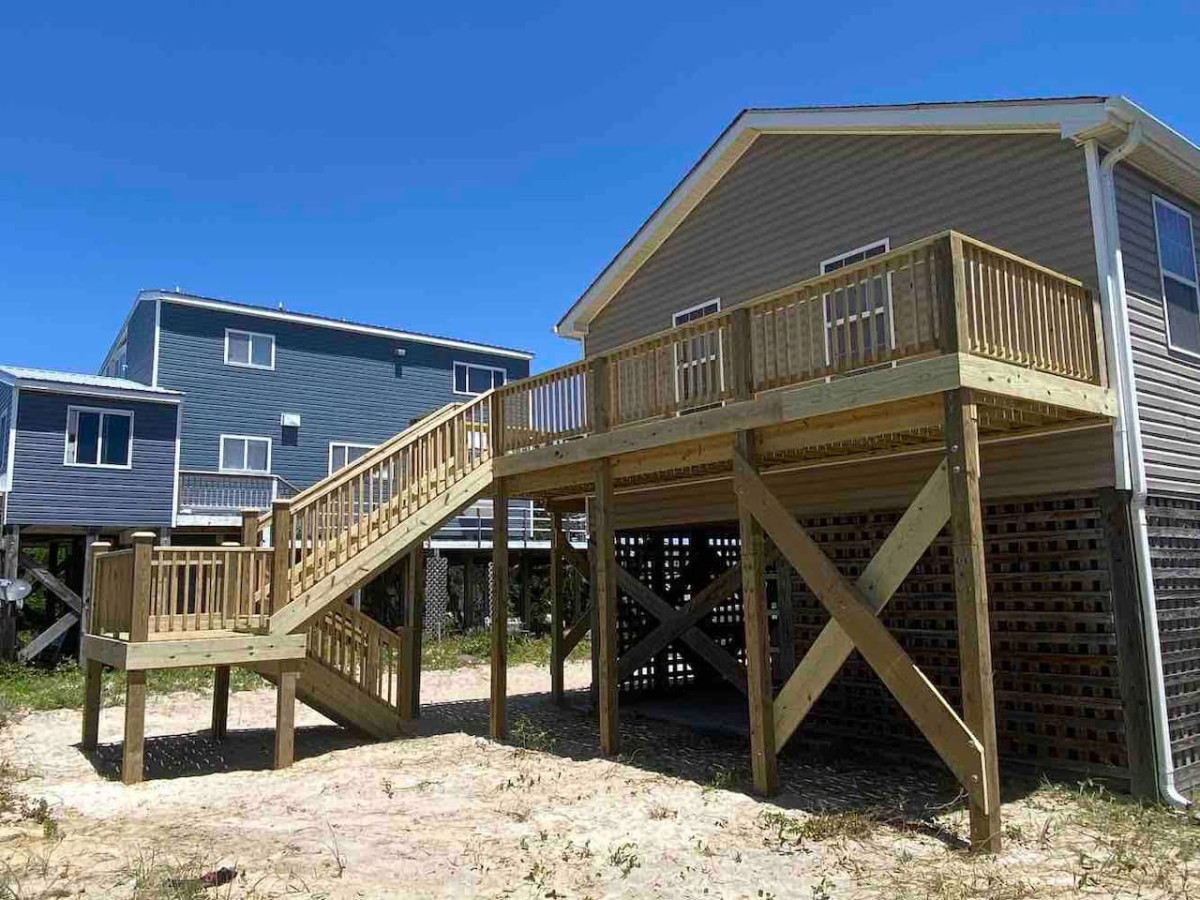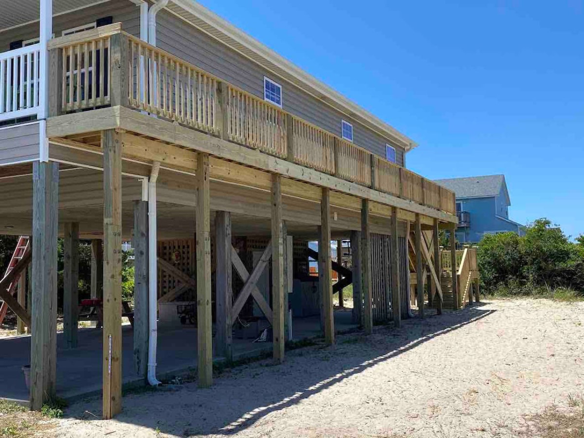 / nightEscape to tranquility at our charming beach house in North Topsail Beach! This spacious retreat features 3 cozy bedrooms and 2 bathrooms, perfect for families or friends seeking a seaside getaway. Enjoy the soothing sounds of the ocean just steps away, and relish the privacy of being at the end of the island, away from the hustle and bustle. Unwind on the deck with stunning views, explore nearby restaurants and shops, or soak up the sun on pristine sands. Your serene coastal escape awaits! KEY FEATURES: ➝ Open kitchen, living, and dining room ➝ 3 comfortable bedrooms; 2 Queen Beds, 2 Twin Beds ➝ 2 bathrooms; 1 walk-in shower and 1 shower/tub combo ➝ Full Kitchen stocked for Beach House meals ➝ High-speed wifi + tv in every bedroom ➝ Washer and dryer ➝ Free parking ☆☆BEDROOMS☆☆ Each bedroom is tastefully decorated with timeless furnishings, complete set of linens and pillows, walk-in closet, and TV. ➝ Bedroom 1: 2 Twin Beds ➝ Bedroom 2: 1 Queen Bed ➝ Bedroom 3: 1 Queen Bed (Private Bathroom) ☆☆BATHROOMS☆☆ The 2 bathrooms are perfect for freshening up after a day in the North Caorlina sun. Each bathroom is equipped with shampoo, conditioner, and body wash so you don't have to worry about bringing your own. ☆☆KITCHEN & LIVING ROOM☆☆ The kitchen is stocked with appliances and cooking essentials, perfect for your next home cooked meal at the beach with friends and family. This friendly beach bungalow features a calming living are with clean decor and natural light. You'll love the open floor plan, making it easy to entertain your group while making delicious appetizers. The 55" HDTV in the living room makes the perfect spot to gather with your group and enjoy some quality time together. You can also enjoy high-speed WiFi, making it easy to plan your next adventure or get some work done during your stay. ☆☆OUTSIDE SPACE☆☆ The bungalow offers a wrap around porch with plenty of seating, making this the perfect home to catch the next sunrise with your morning coffee or soak in the sunset after your fun beach day. The private carport below provides enough space to gather, for kids to enjoy, and for the sand to be washed off before heading back inside. HOME DISTANCE IN MILES FROM: ➝ North Topsail Beach: 0 miles (steps from your door) ➝ Kiwanis Park: 12 miles ➝ Karen Beasley Sea Turtle Rescue and Rehabilitation Center: 10 miles ➝ North Topsail Surf & Paddle: 7 miles ➝ Surf City Ocean Pier: 14 miles ➝ Shipwreck Point Golf: 15 miles ➝ Wilmington International Airport (ILM): 49 miles ➝ Sandy Shores Medical Center & Urgent Care: 19 miles ➝ Camp Lejeune Marine Corps Base: 32 miles Guests will have access to the entire home during your stay, minus 2 locked Owner's closets. Guests will also have access to all amenities listed for use. Send a message if you need anything during your stay! With quick response time, we are here to make your stay seamless and enjoyable! Upon your arrival, we offer essential items like hand soap, dish soap, toilet paper, paper towels, and trash bags to start you off. For longer stays, kindly prepare to replenish these supplies according to your personal requirements. We ask that you take care of the home as if it were your own. We hope to provide a great space for all guests to unwind and relax during their time here!